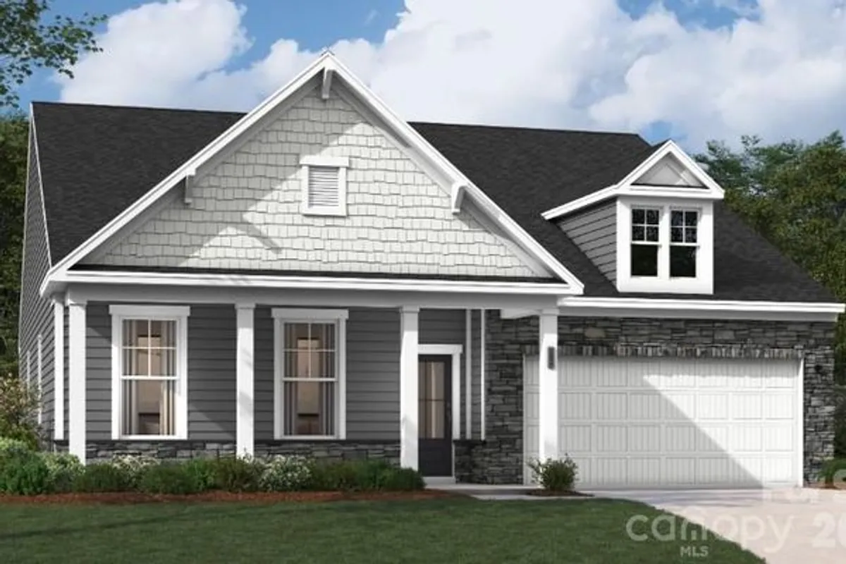 Thoughtfully designed home offering comfort, flexibility, and easy living in a 55+ active adult community. Situated on a desirable interior homesite, this inviting residence features a charming covered front porch—perfect for morning coffee or casual neighbor connections. Offering the ease of main-level living, the home includes a spacious primary suite with a luxurious en-suite bath and walk-in closet, two additional bedrooms, and a full bath. A tucked-away pocket office provides a quiet space for work or hobbies. The kitchen boasts upgraded finishes with a large center island, quartz countertops, and stainless steel appliances, opening to a welcoming living area with a gas fireplace and access to a screened-in back porch overlooking a serene, wooded backdrop for seamless indoor-outdoor living. Combining modern comfort, smart design, and timeless appeal, this home is a standout opportunity—schedule your showing today