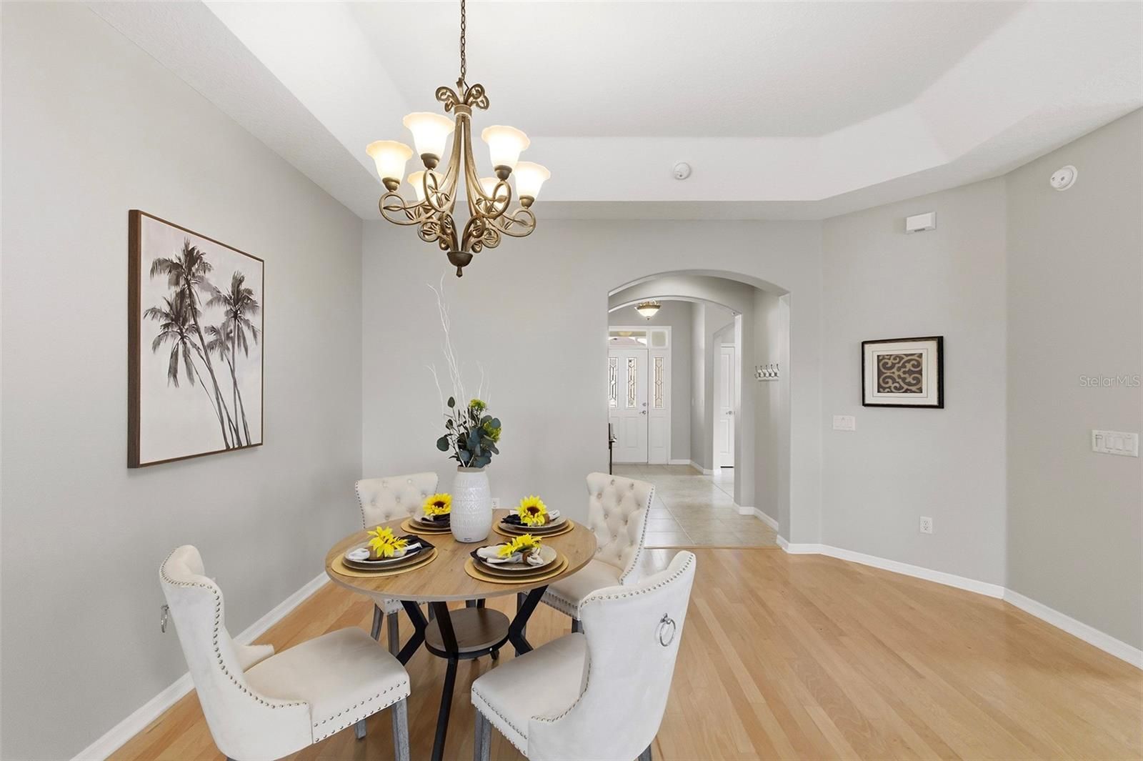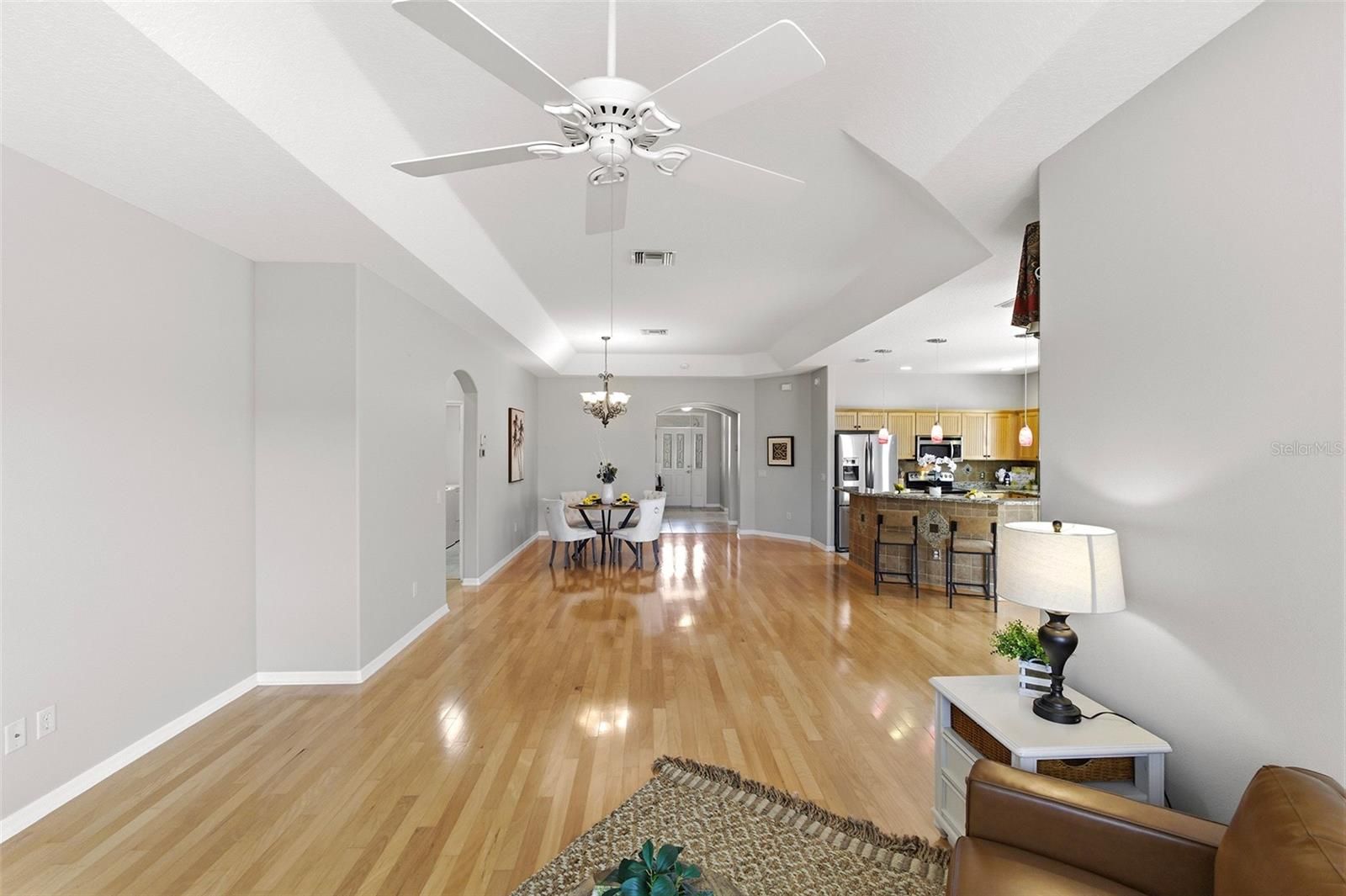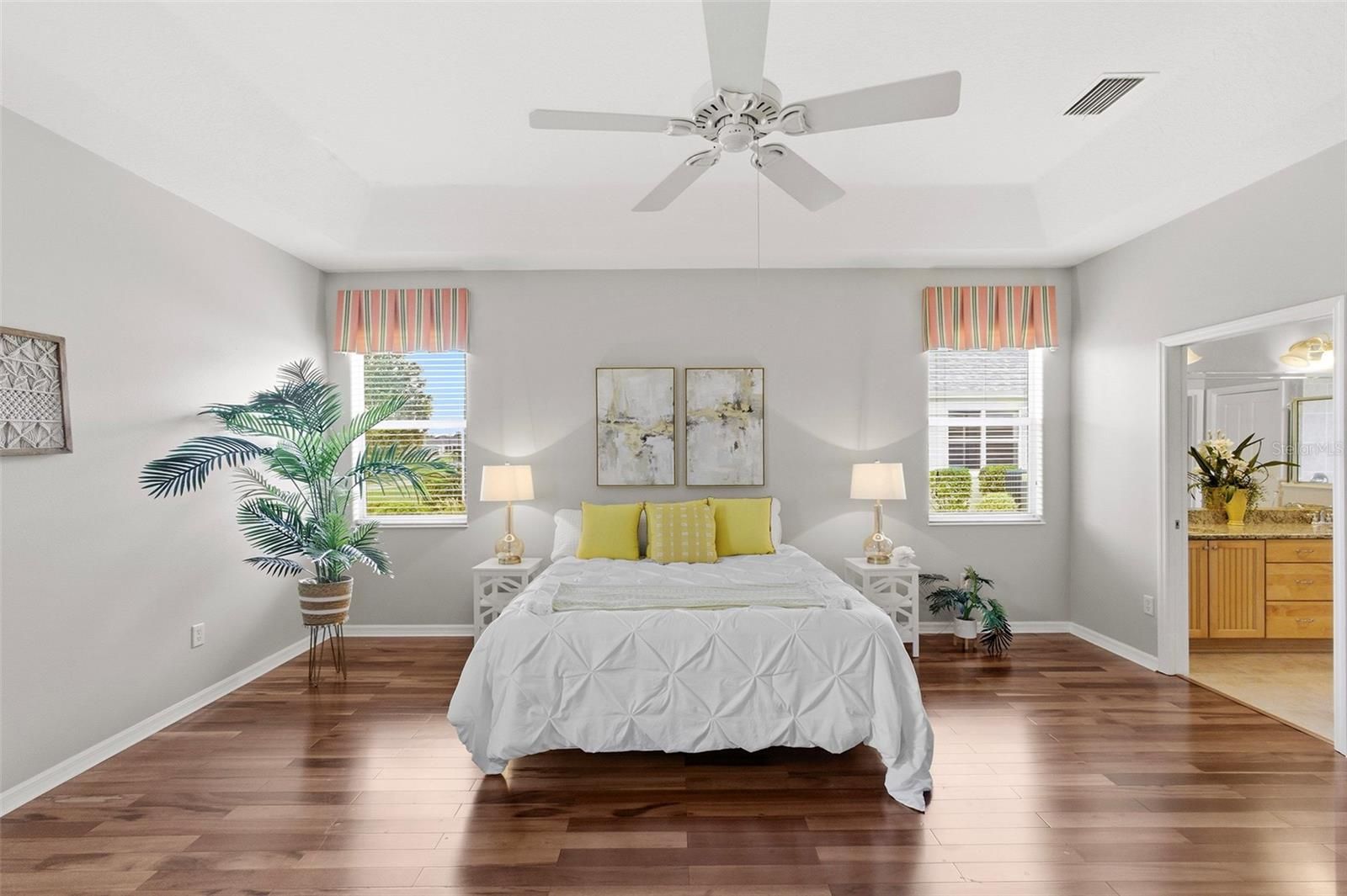 - High Ceilings, Living/Dining Room, Open Floorplan, Main Level Primary, Solid-Wood Cabinets, Stone Counters, Tray Ceiling(s), Vaulted Ceiling(s), Walk-In Closet(s), Window Treatments