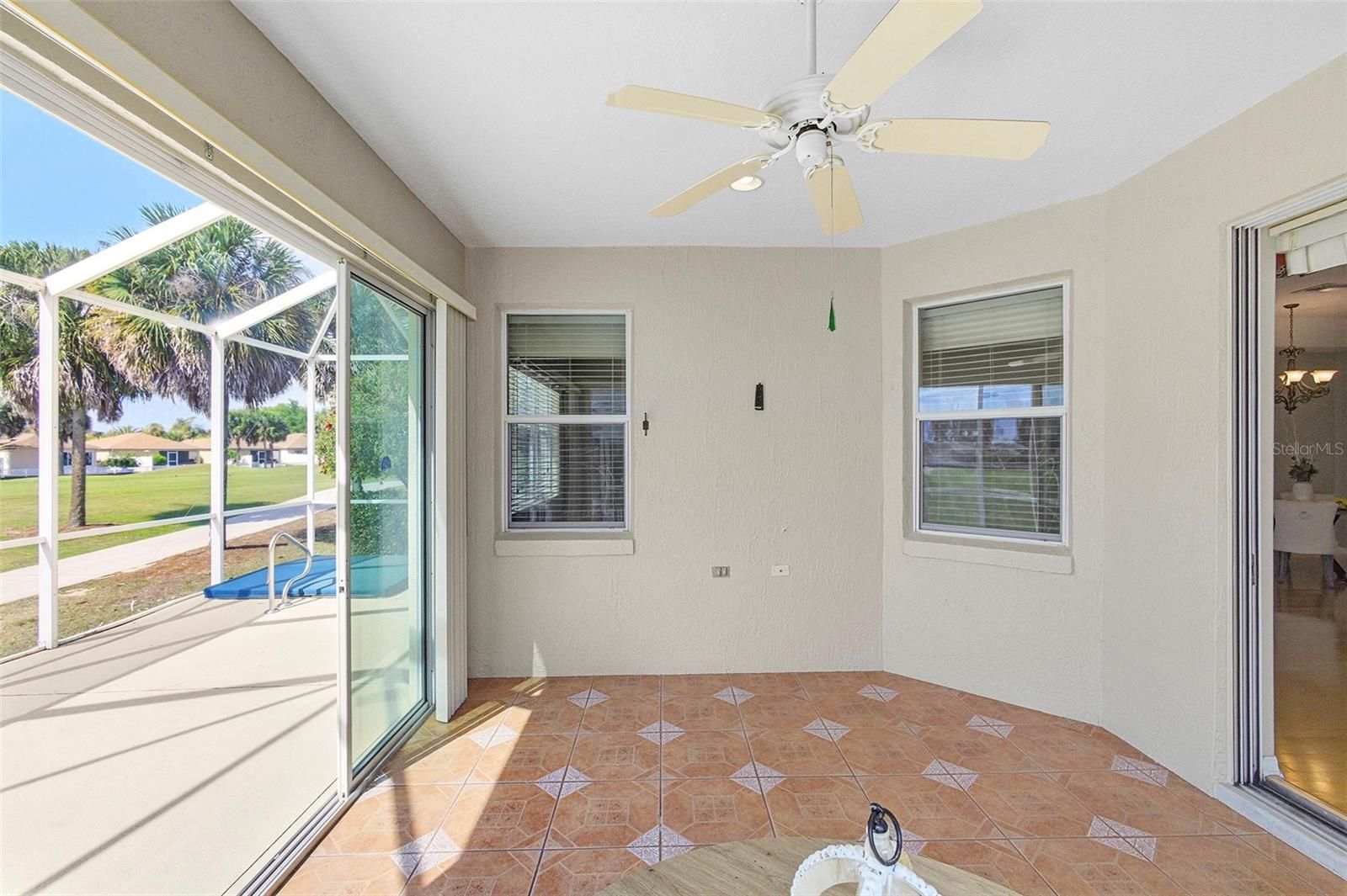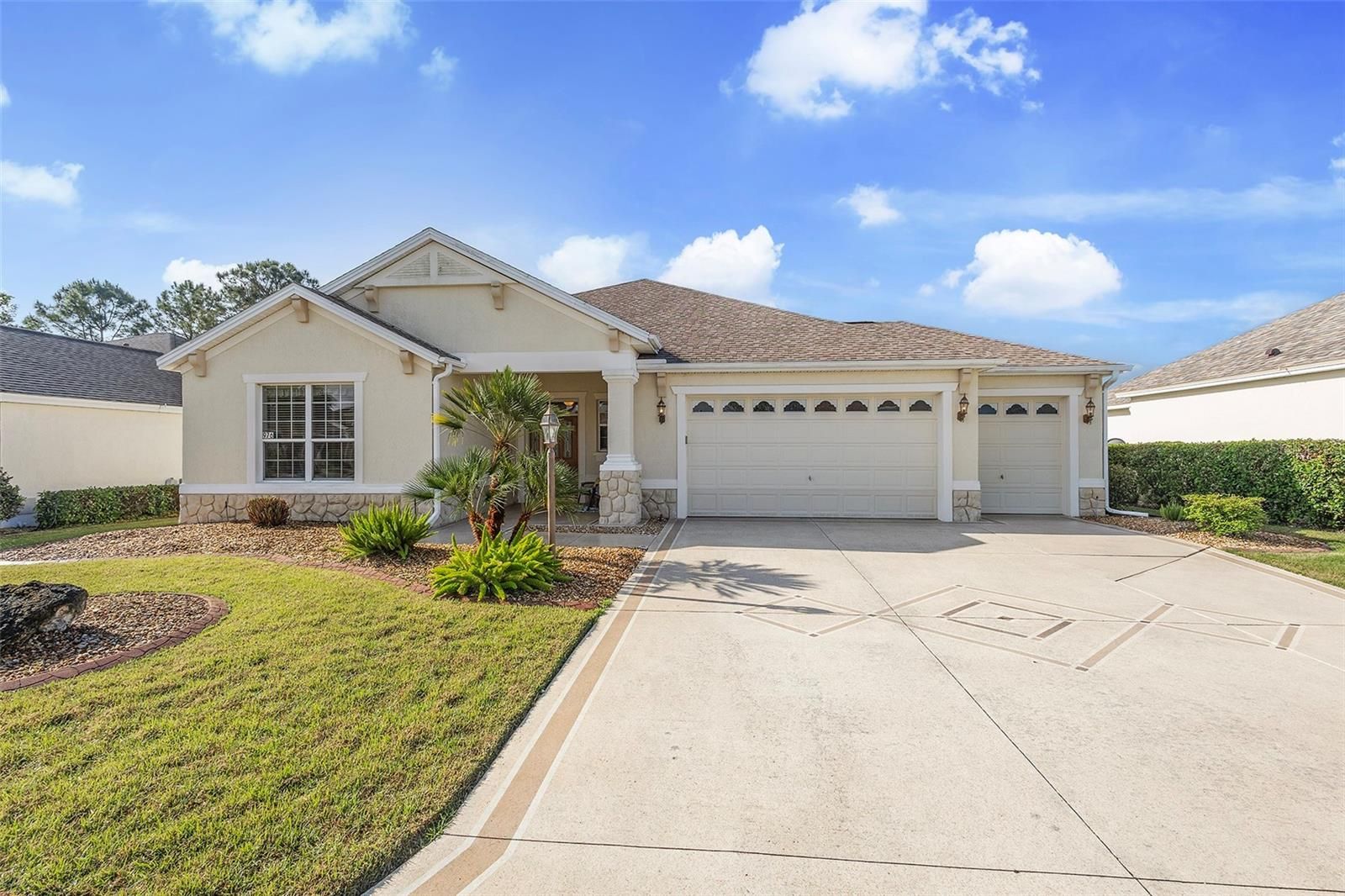 • GOLF FRONT ON BOGART #6 • EXPANDED SOMERSET • 3/2 + OVERSIZED 2-CAR & GOLF CART GARAGE (˜764 SF) ROOF 2023 • NO BOND * WATER TREATMENT 2023 (TRANSFERABLE WARRANTY) • SECO SURGE PROTECTION 2022 • GAS UTILITIES• MINUTES TO LAKE SUMTER LANDING. Check out the walk-through video by clicking on the Tour Link above. Welcome to this beautifully expanded Somerset model perfectly positioned on the 6th hole of the Bogart Championship Golf Course in the highly sought-after Village of Sabal Chase. From the moment you arrive, the home’s clean lines, mature landscaping, and north-facing orientation set the stage for comfortable Florida living, while the rear southern exposure captures year-round sunshine and breathtaking panoramic golf views. Step through the separate entry hall into an open, light-filled living space designed for both everyday comfort and effortless entertaining. The main living and dining areas showcase rich hardwood flooring, tray ceilings, and seamless sightlines that draw your eye straight out to the golf course beyond. This is the kind of home that immediately feels expansive, inviting, and connected to its surroundings. The kitchen is thoughtfully updated with granite countertops, stainless steel appliances, a stylish tile backsplash, and a pantry outfitted with pull-outs for maximum convenience. Pendant lighting highlights the breakfast bar, creating a natural gathering space that opens beautifully into the dining and living areas—ideal for hosting or simply enjoying the view while you cook. The spacious primary suite is a true retreat, featuring tray ceilings, hardwood flooring, and tranquil golf course views. Spacious walk-in closets with custom built-ins provide exceptional storage, while the ensuite bathroom offers double vanities with granite countertops, a large tiled walk-in shower, and a linen closet for added functionality. On the guest side, Bedroom 2 is generously sized with high ceilings and double closets, providing comfort and privacy for visitors. Bedroom 3, with double door entry and elevated ceilings, functions perfectly as a den, office, or flex space. The guest bathroom is well-appointed with a granite vanity and a custom tiled tub/shower combination. One of the standout features of this home is the glass-enclosed lanai, finished with tile flooring and designed to maximize the sweeping golf views in every season. Step outside to the attached birdcage where you’ll find an in-ground spa—your private oasis for relaxation or entertaining under the Florida sky. Additional highlights include a whole-house water treatment system installed in 2023 with transferable warranty, SECO whole-house surge protection (2022), gas utilities, a 3-year-old water heater, and a 2017 HVAC system. The oversized garage offers space for two cars plus 2 golf carts, high ceilings, and additional attic storage, making it as functional as it is spacious. Ideally located just minutes from Lake Sumter Landing and centrally positioned between Spanish Springs and Brownwood, this home offers easy access to championship golf, Mallory Hill Country Club, Lake Miona Regional Recreation Center, Sabal Chase and Bacall Recreation Centers, as well as abundant shopping, dining, and nightly entertainment. This is more than a home—it’s a front-row seat to one of The Villages’ most desirable golf course lifestyles.