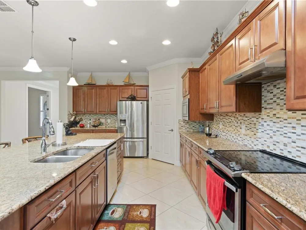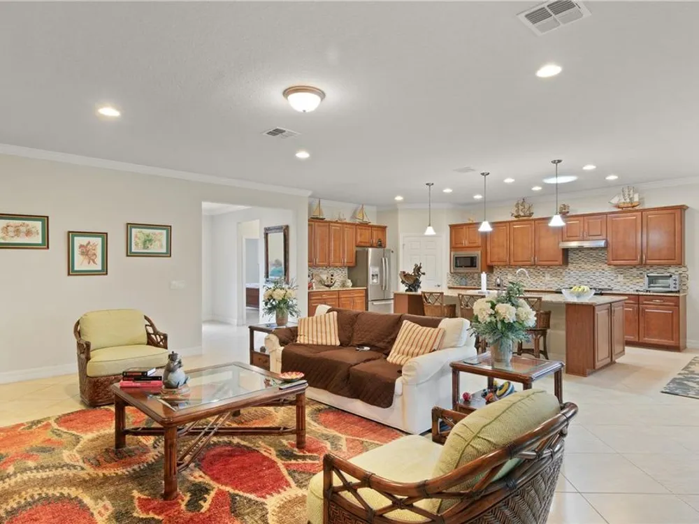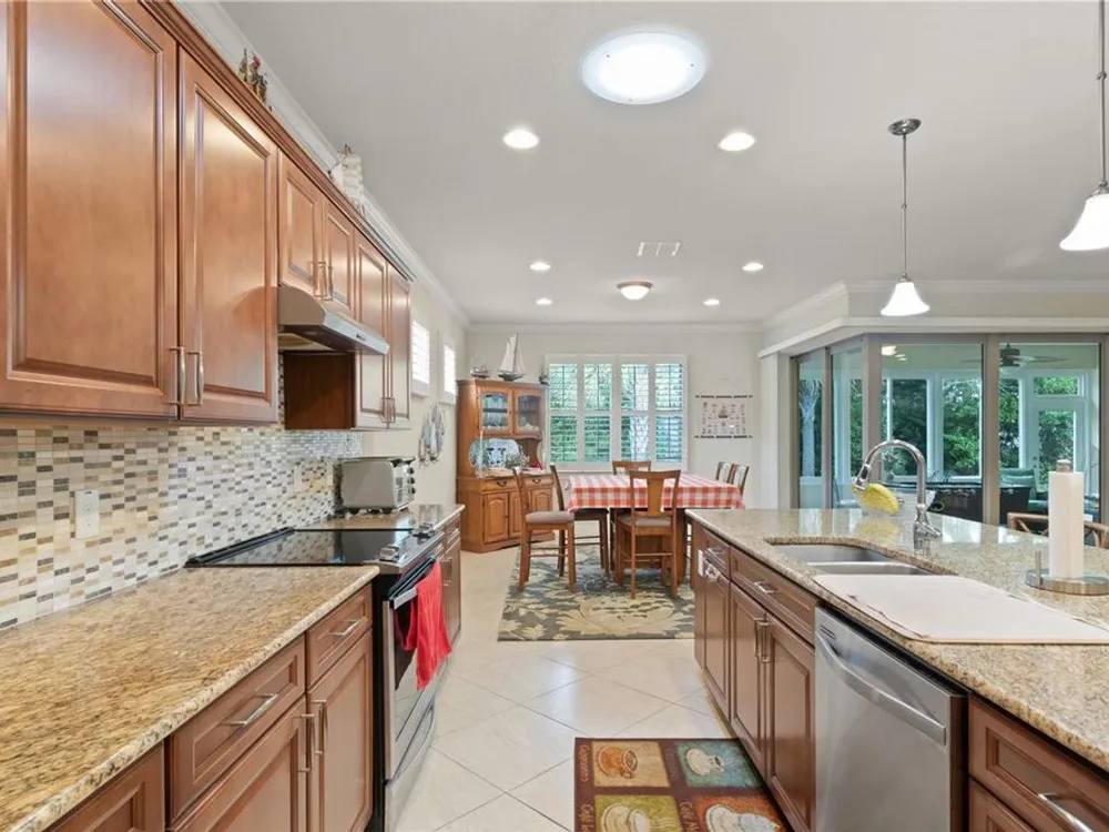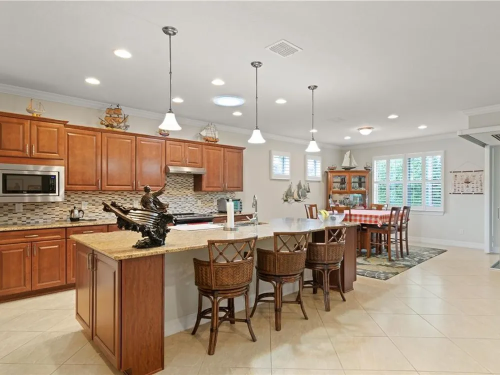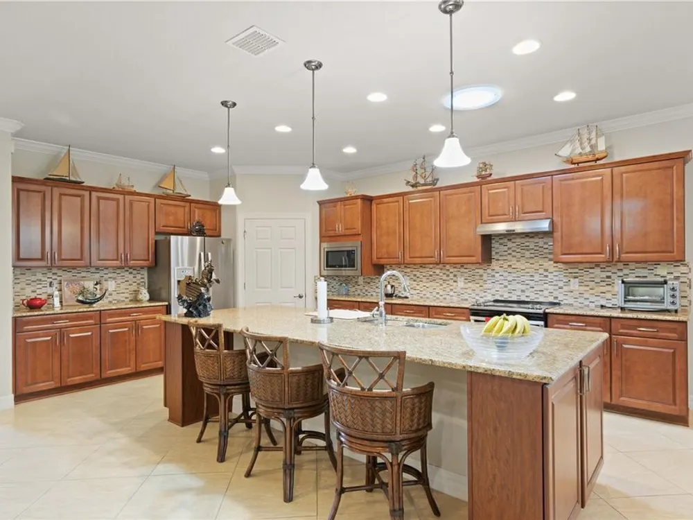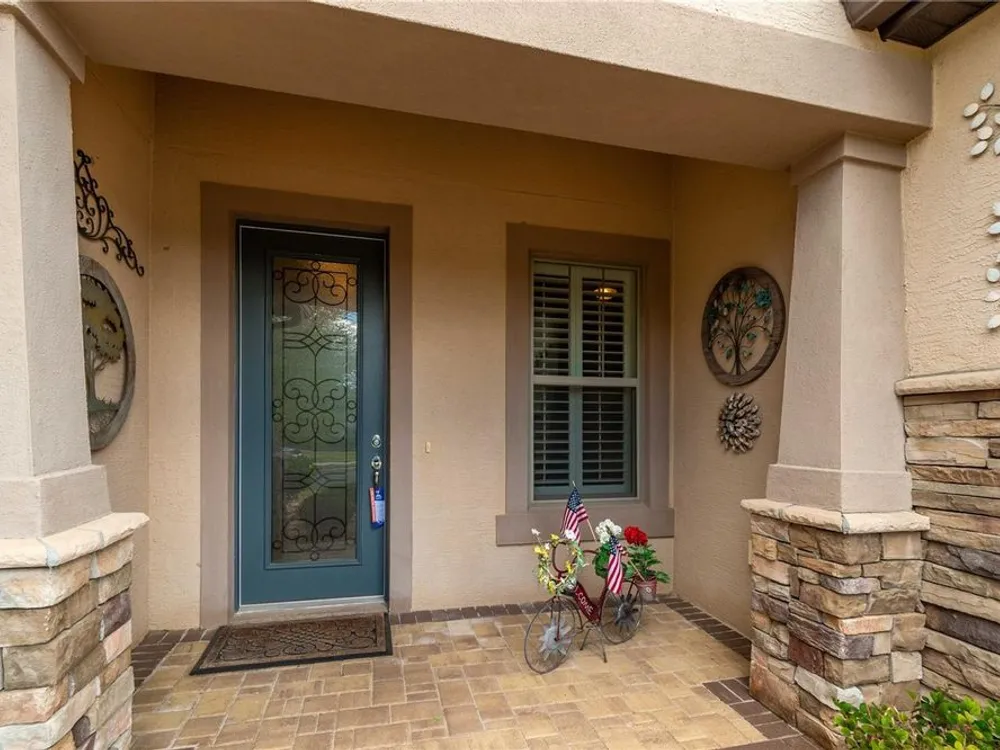 Experience the Florida lifestyle you've been dreaming of with this stunning, meticulously maintained home! Don't MISS OUT – Price has just been REDUCED! This turnkey, fully furnished residence is perfect for effortless move-in and enjoyment. Situated in the desirable Pinnacle model at Stone Creek by DEL WEBB, this spacious 3-bedroom, 3-bath home features a versatile room ideal as a home office or guest space, along with an extended 3-car garage for ample storage. The gourmet kitchen is a chef's paradise, boasting a built-in oven, a freestanding cooktop, an expansive island, upgraded cabinetry, eye-catching backsplash, granite countertops, stainless steel appliances, a generous walk-in pantry, and stylish pendant lighting. Beautiful ceramic tile flooring flows seamlessly throughout the home, complemented by elegant plantation shutters that add a touch of sophistication. Natural light bathes the interior through four skylights strategically placed in the kitchen and bathrooms, creating a bright and inviting atmosphere. Step outside to your custom brick-paved lanai, enclosed with anti-hurricane glass, providing the perfect outdoor living space year-round. The inviting brick driveway enhances curb appeal, while recent updates—including a brand new front door—add to the home's charm. Delight in the luxurious amenities and vibrant community activities that make this community so special. Enjoy access to a top-rated golf course, resort-style pools, a full-service health spa, engaging trips, entertainment, and more. This exceptional home offers the perfect blend of comfort, elegance, and an active lifestyle. Make your move today and start living the Florida dream!