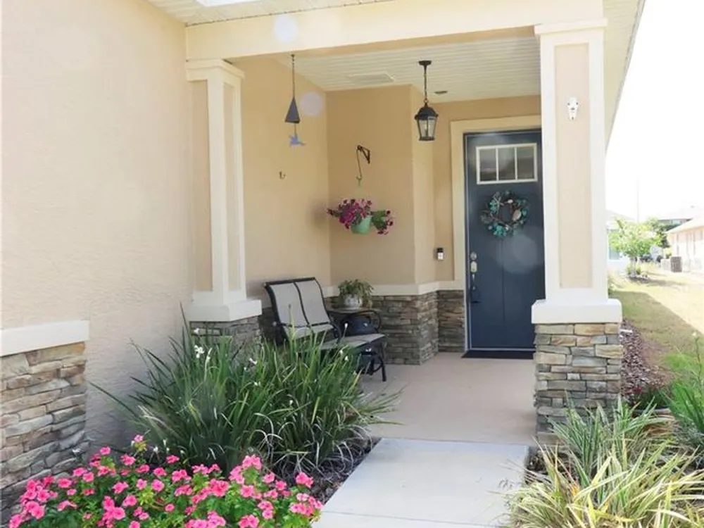 NEW PRICE ADJUSTMENT / Let's talk style...Stunning Rimon model with upgraded elevation and elegant Chardonnay ledge stone front, located in the sought-after 55+ community of On Top of the World! This beautifully designed 2-bedroom, 2-bath ranch features a private den/study or loft above the 2-car garage. Inside, you’ll love the luxury vinyl plank flooring throughout, crown molding, under/over cabinet lighting, Delta premium faucets, and a Lennox AC with UV pure air filter. Thoughtful upgrades include GFCI outlets on the front porch and lanai, a whole-house surge protector, and a garage plumbing loop ready for a future water softener. Step out to your spacious screened lanai with premium pavers and enjoy the beautifully landscaped, fenced backyard for added privacy. Experience resort-style living with pickleball, tennis, golf, softball, two large dog parks and so much more. Close to hospitals, shopping, resturants and the Florida beaches. The ultimate active adult lifestyle awaits!