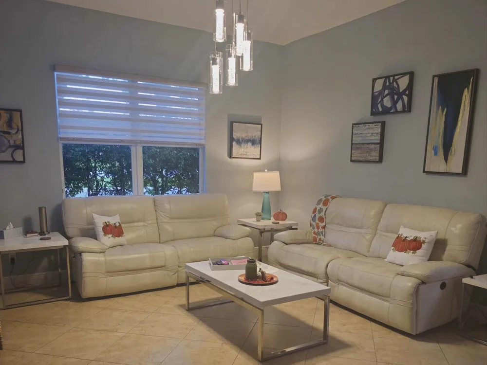 - Entry Level Living Area, Entrance Foyer, Pantry, Split Bedrooms, High Ceilings, Walk-In Closet(s), Family Room, Storage, Family/Dining Room, Living/Dining Room, Separate/Formal Dining Room, Blinds, Storm Window(s), Impact Glass, Dual Sinks, Primary Downstairs, Separate Shower