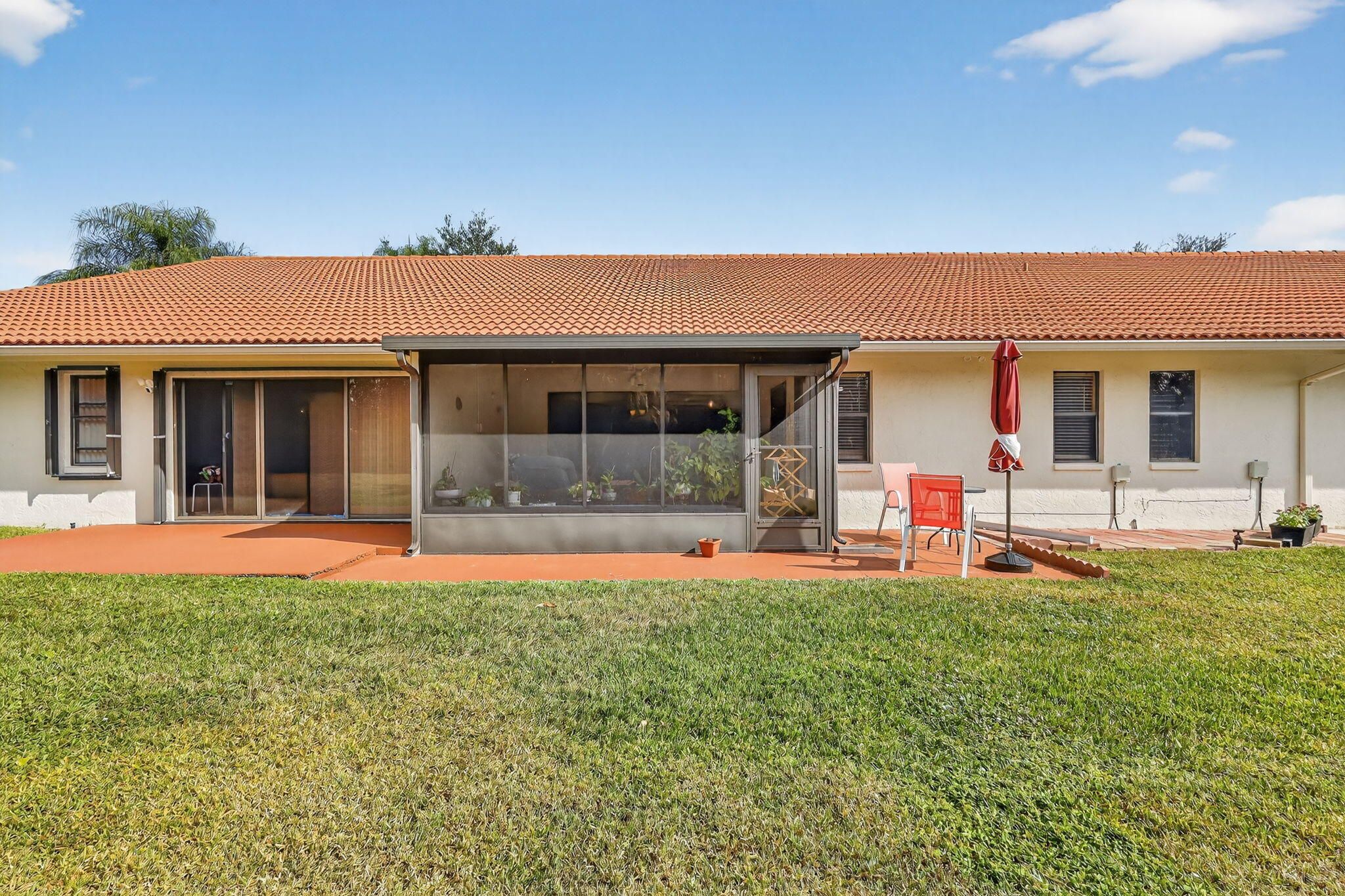 Beautiful 2 bedroom/2 bath villa in the heart of Boynton beach with the highly desirable Sun Valley East 55+ community offers various amenities and clubs to enjoy such as tennis, pickle ball, reading clubs, big size pools, etc. This unit is very spacious with a breakfast nook, dining room, and Living room adjoining by an enclosed screened patio which can be used as the family gathering room. Both bedrooms have walk-in closets and the utility room equipped with washer and dryer offers ample shelves storage as well.