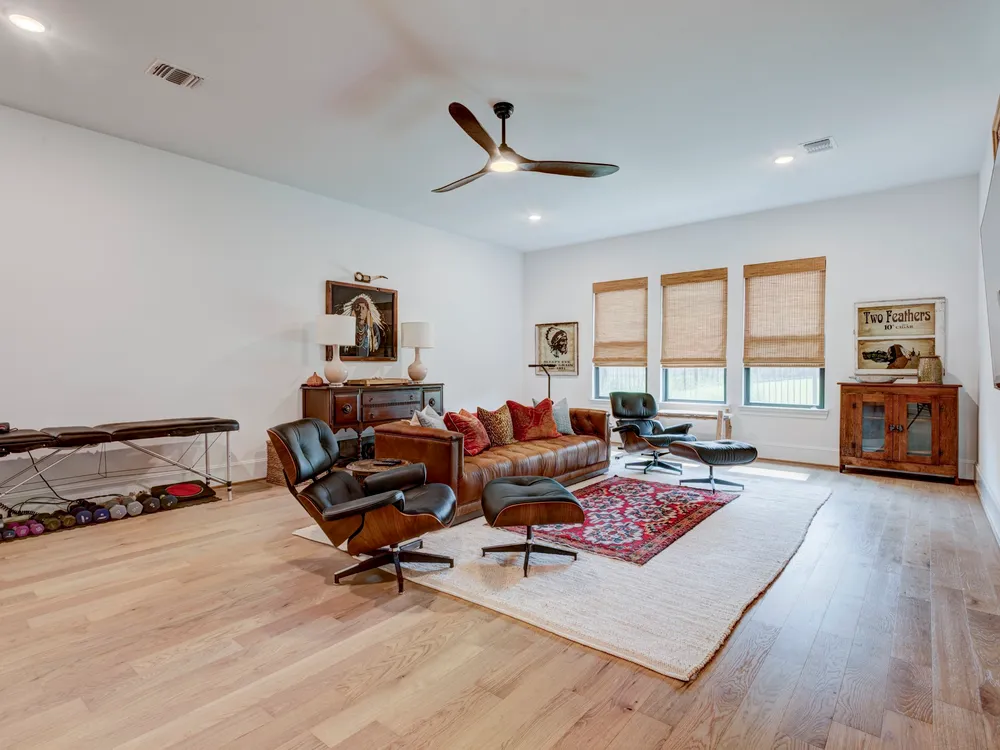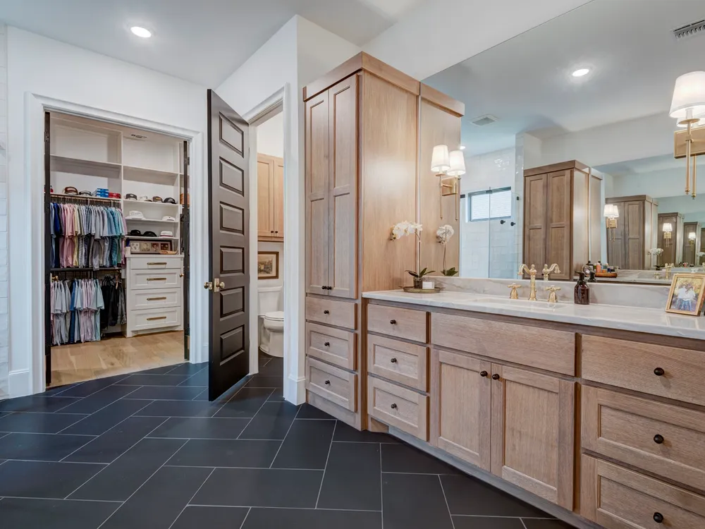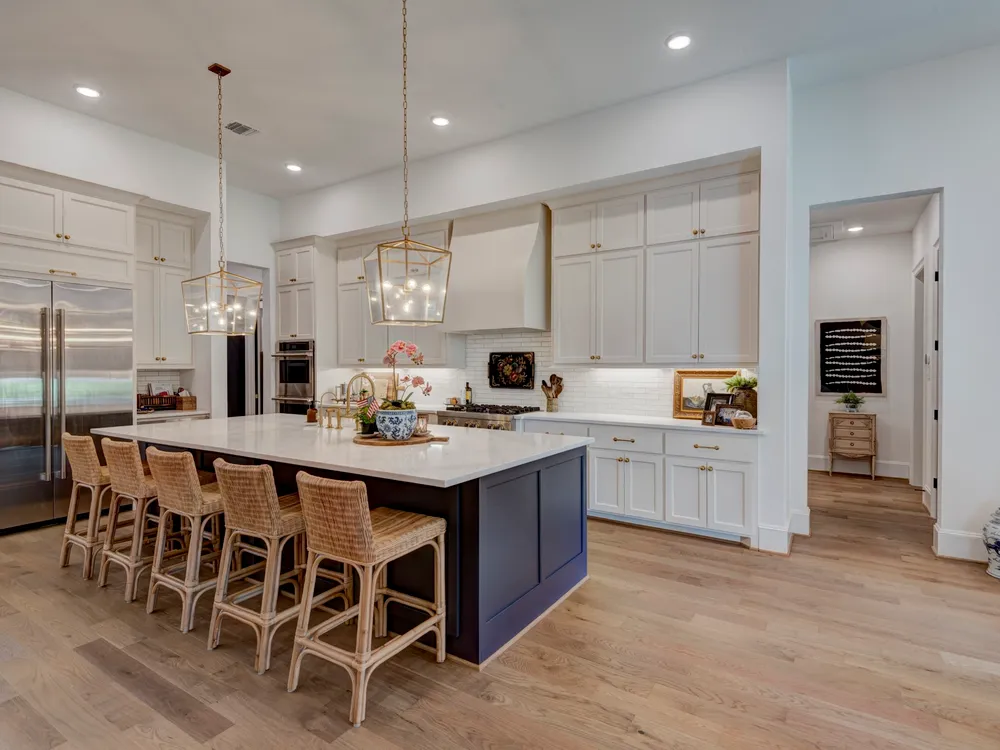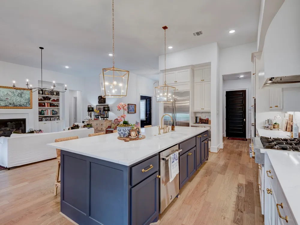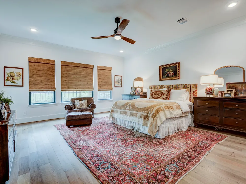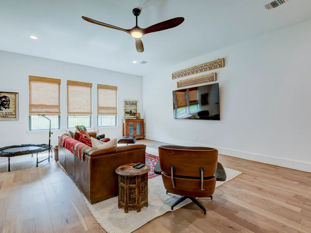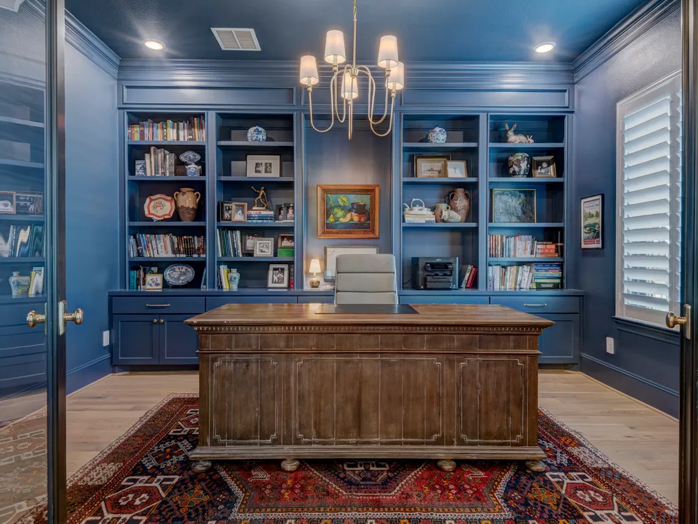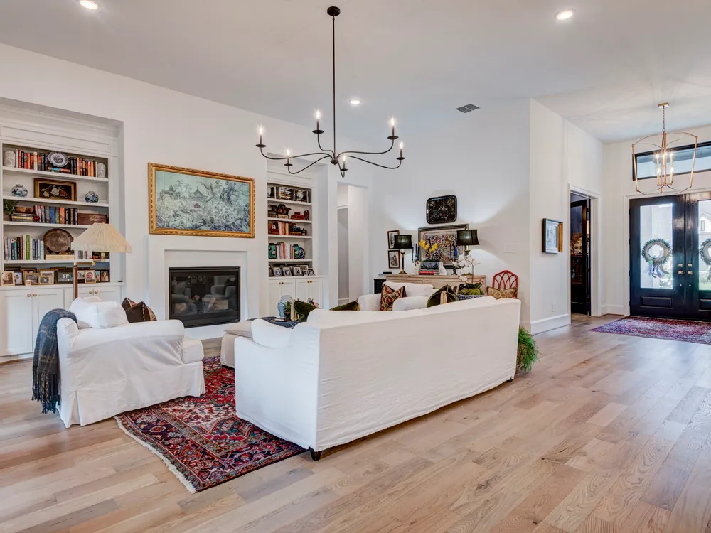 Beautiful Custom Home by Partners In Building – 55+ Chambers Creek Community*1-story home on an 80’ lot* Features 3 bedrooms, 3.1 baths, a large game room, home office with built-ins, and a craft room*Enjoy soaring 12’ ceilings in the foyer, living, and kitchen. The chef’s kitchen includes custom cabinetry, JennAir appliances, quartzite counters, double ovens, and an 11’ island with seating. French oak floors, new shutters, and upgraded lighting throughout*Spacious primary suite with dual vanities, large shower, and walk-in closet with built-ins. All secondary bedrooms have ensuite baths and walk-in closets with Carrara marble vanities*Epoxy-coated 2-car garage plus golf cart garage. Includes Generac whole-home generator. Move-in ready!