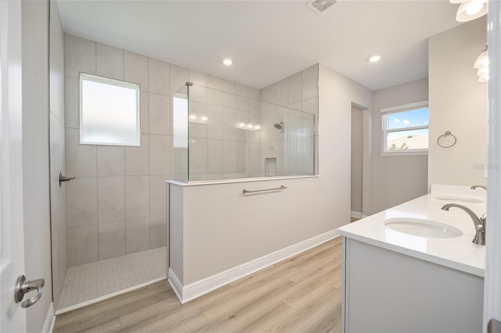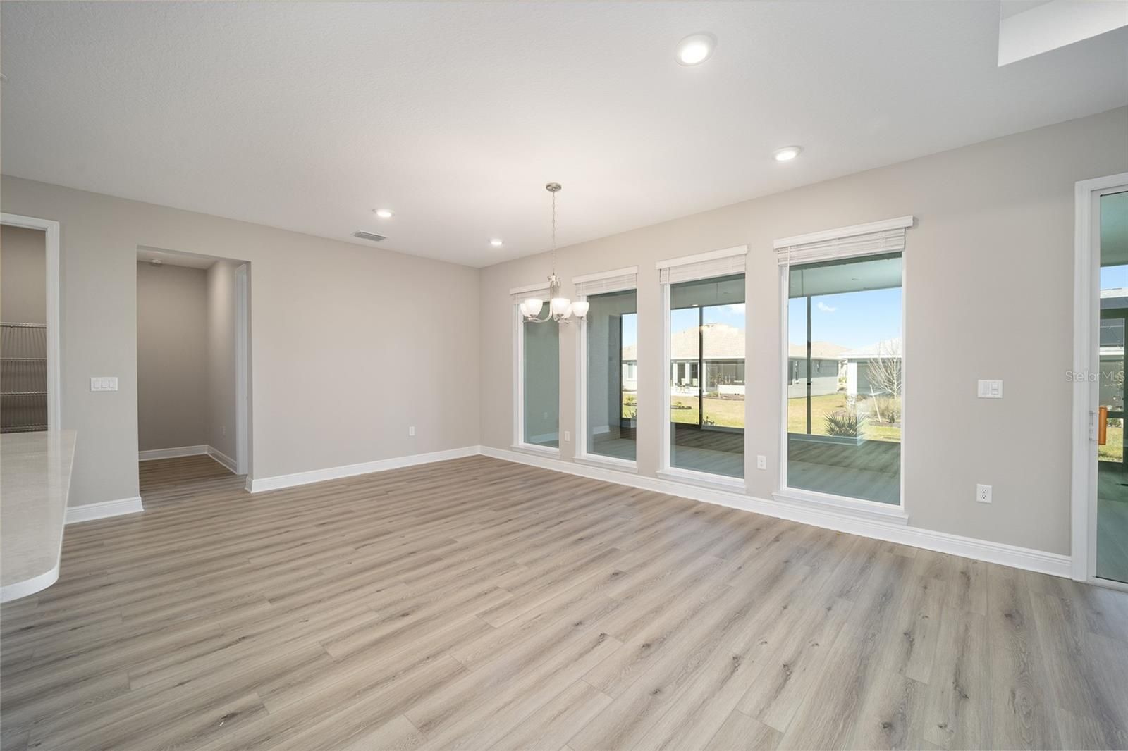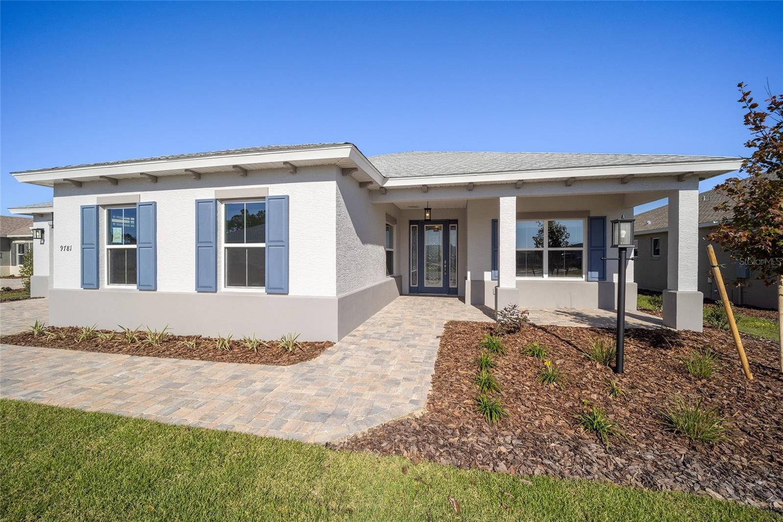You do not want to miss out on this BRAND-NEW CONSTRUCTION Montgomery! It is everything you’ve been looking for and more, located in the highly sought-after Ashford community at Candler Hills in On Top of the World. With 2 bedrooms, 2 and half bathrooms, a split 3 car garage, a flex room, and a bonus room, this home has space for everything! This home boasts natural lighting, luxury vinyl flooring, and tray ceilings throughout. The gourmet kitchen is absolutely stunning with stainless steel appliances, staggered cabinetry with crown molding, quartz counters with a L-shaped island, and a pantry. The sliding glass doors lead to the screened lanai, perfect for relaxing and enjoying the outdoors. The main bedroom suite has a beautiful tray ceiling and features an en suite equipped with a zero-entry tile shower with a bench and dual vanity sinks with quartz counters and spacious walk-in closet. The split plan positions the guest room on the other side of the home for additional privacy for guests. This home truly has space for all of your needs! Located in Ocala's premier, gated, active 55+ community, loaded with amenities, including golf cart access to 2 shopping centers. Don't wait to schedule your showing because this home will not last long!