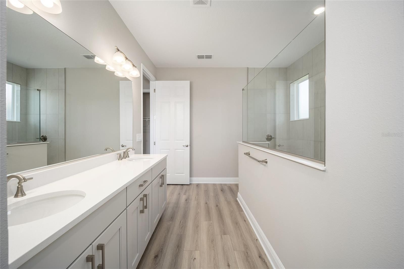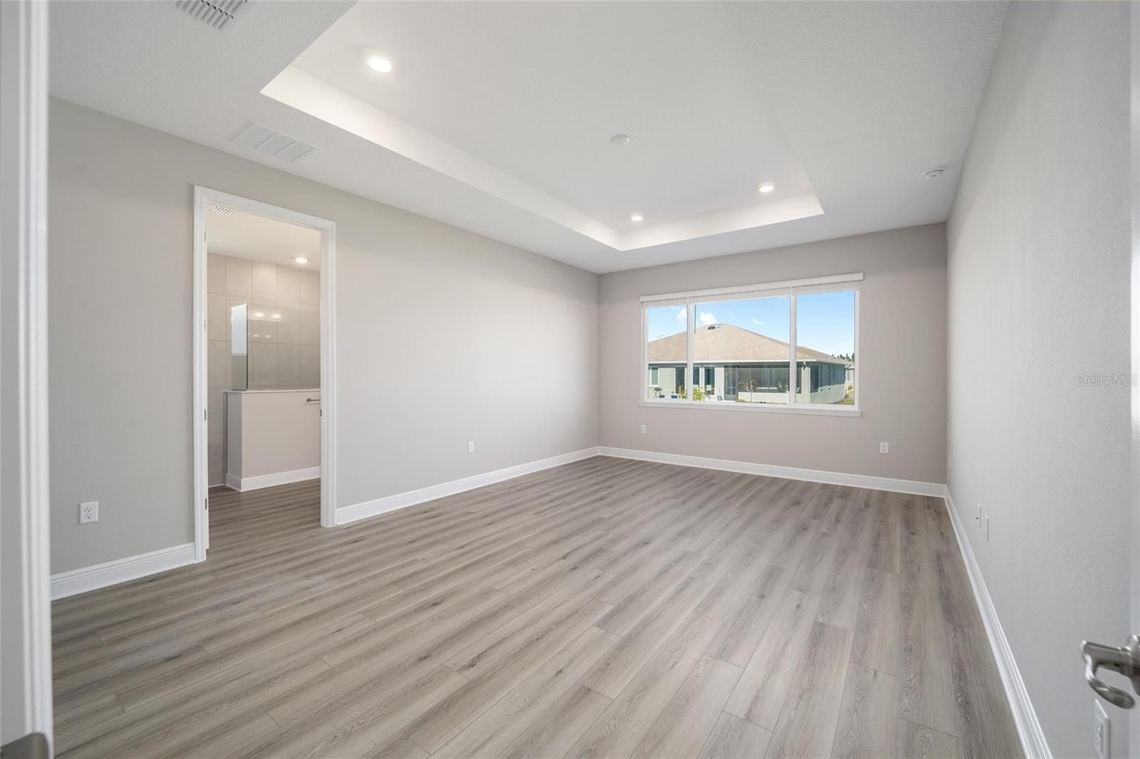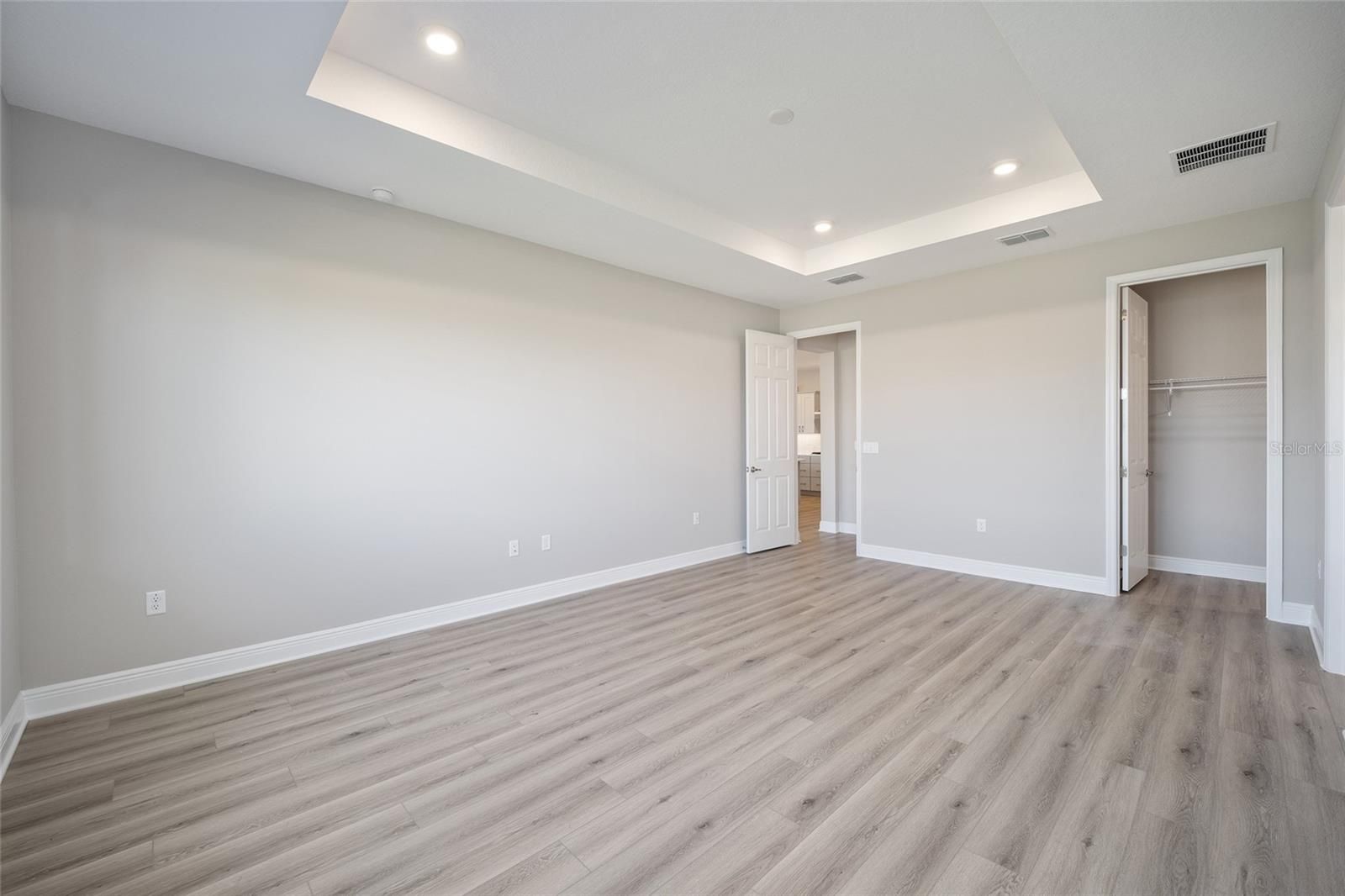 - Living/Dining Room, Stone Counters, Thermostat, Tray Ceiling(s), Walk-In Closet(s)