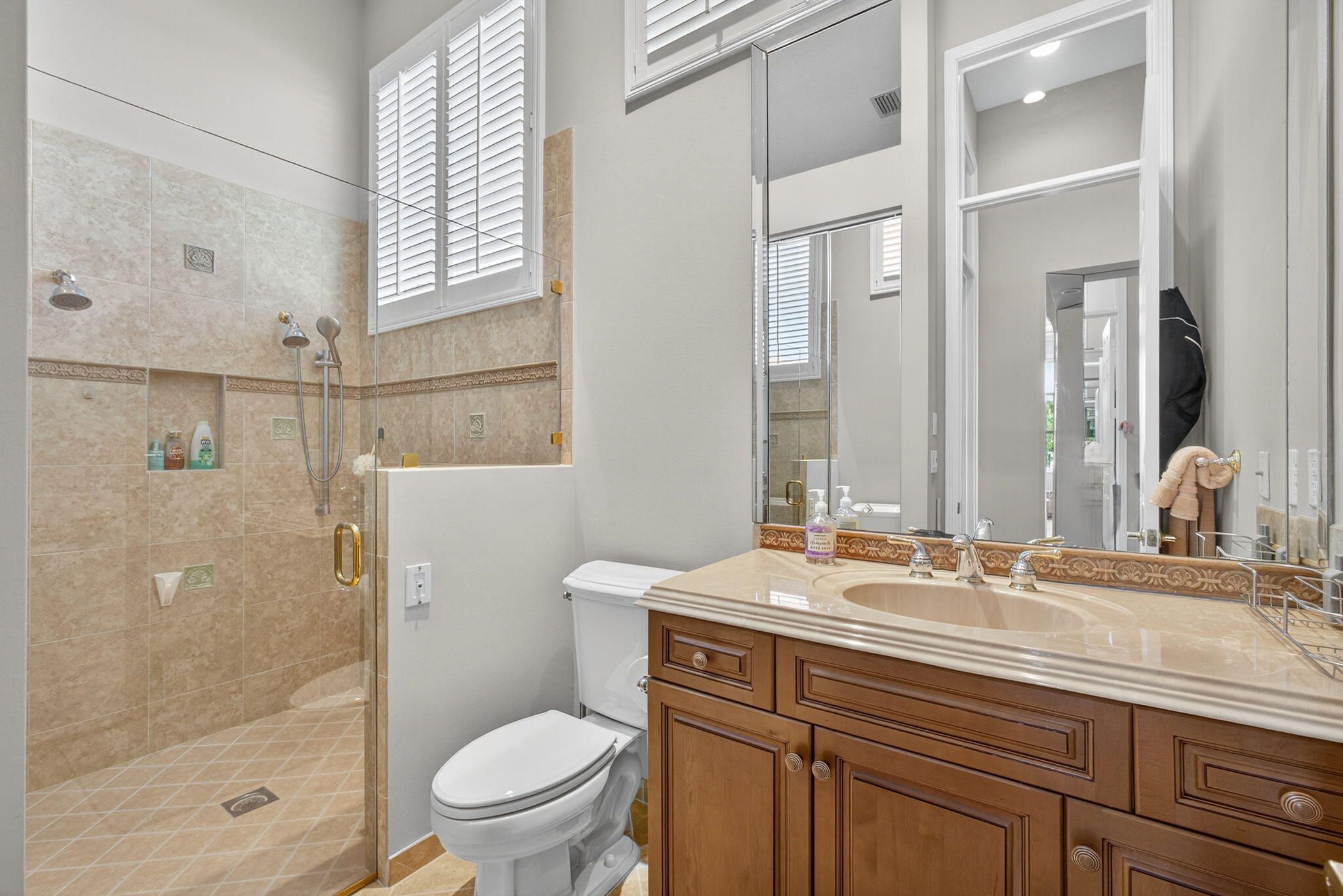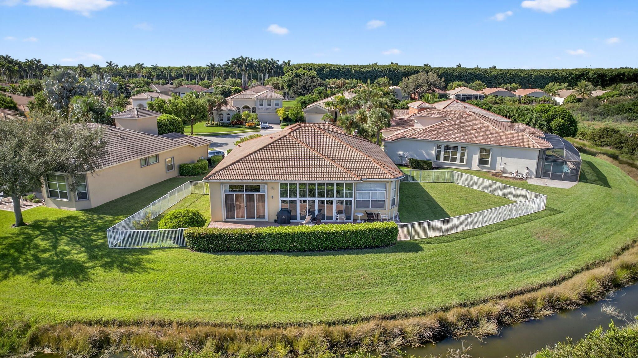 Larger Montego Model with views, 3 full Bedrooms, 2 Full baths and 2 (1/2 baths), Completely fenced in yard. This home has many upgraded options from the builder incl Gourmet kitchen with SS Appliances, Double wall ovens, Granite Counter tops W natural stone backsplash and more. FINSHED enclosed porch with A/C, 250 ft . Xtra paver outdoor patio Elegant light fixtures, blinds, Formal Dining rm, plus the main bath has 2 walk in closets, custom mirrors, glass shower connects the 2 toilet areas, transom windows allow lots of light. Buena Vida is a gated 55+ community with Fabulous amenities incl 2 pools, on site cafe, pickleball, tennis, gym, card rooms, more. Great location with so much nearby. Close to roads, shopping, airports : approx. 20 min to PBI,, 45 (FLL), & 75 minutes to (MIA). Minutes to Wellington Mall, right at SR7 with all its dining and shopping options like WHOLE FOODS and TRADER JOEs. Plenty of medical facilities nearby too! Gated! 55+ required Close to downtown West Palm Beach, Palm Beach, Lake Worth Beach and The Gardens & more. Several nearby beaches to chose from.