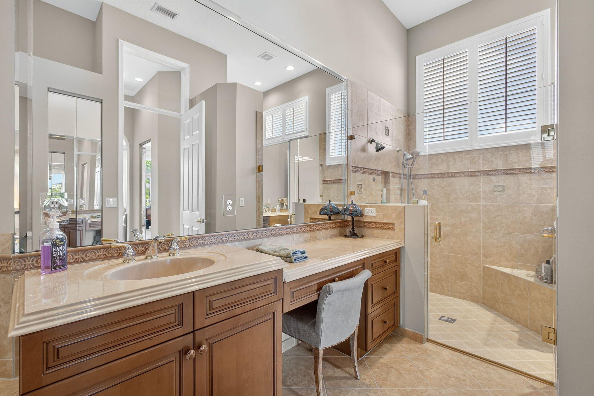 - Built-in Features, Entrance Foyer, High Ceilings, Pantry, Walk-In Closet(s), Split Bedrooms, Closet Cabinetry, Custom Mirrors, Garden Tub/Roman Tub, Breakfast Area, Eat-in Kitchen, Separate/Formal Dining Room, Multiple Primary Bathrooms, Dual Sinks, Main Level Primary, Separate Shower, Soaking Tub