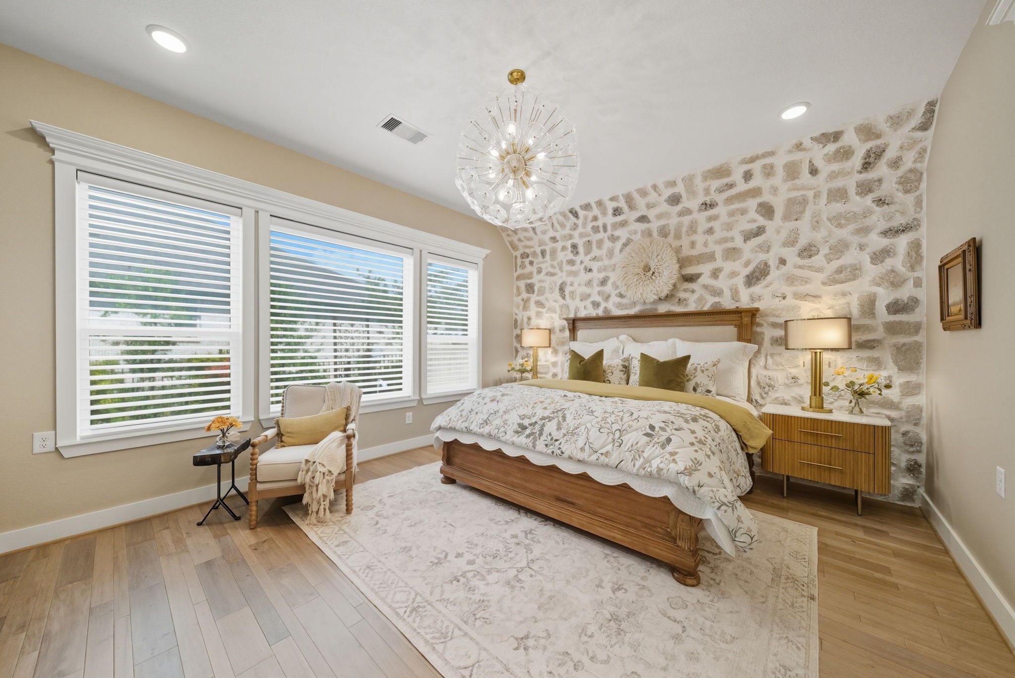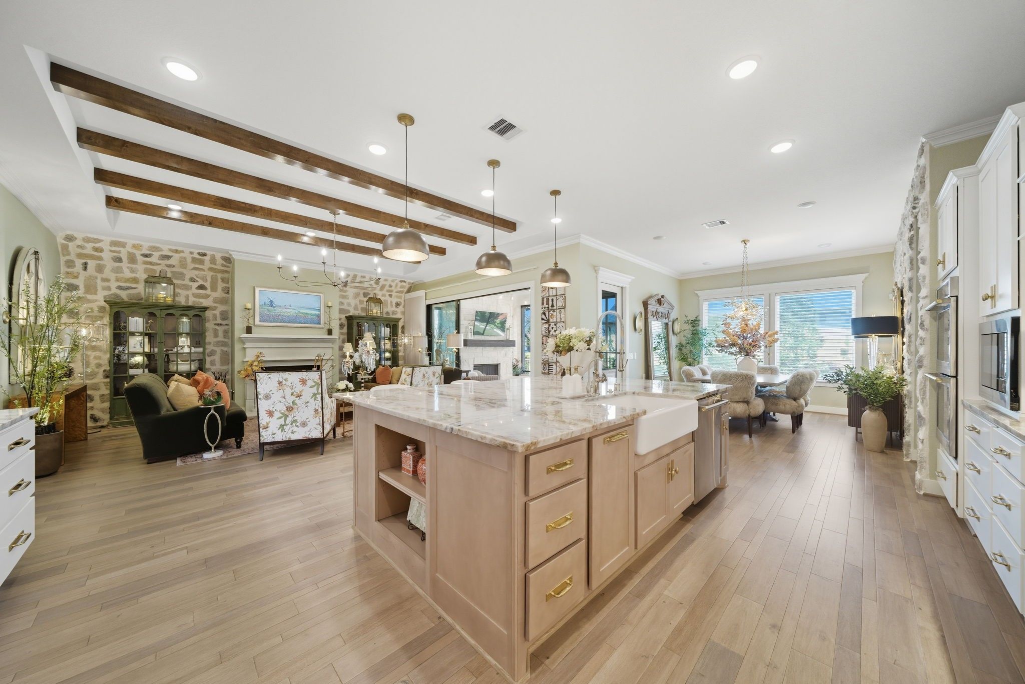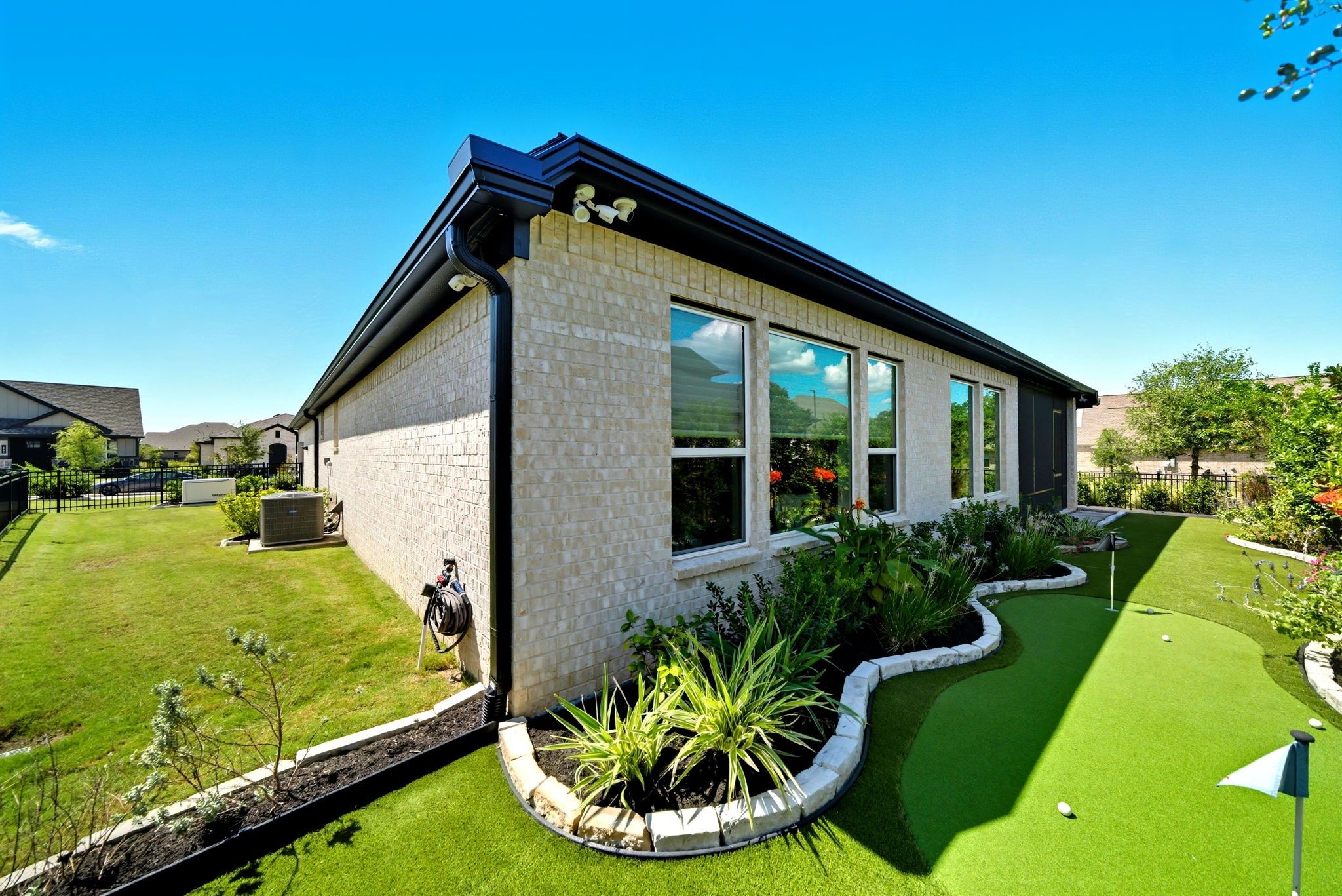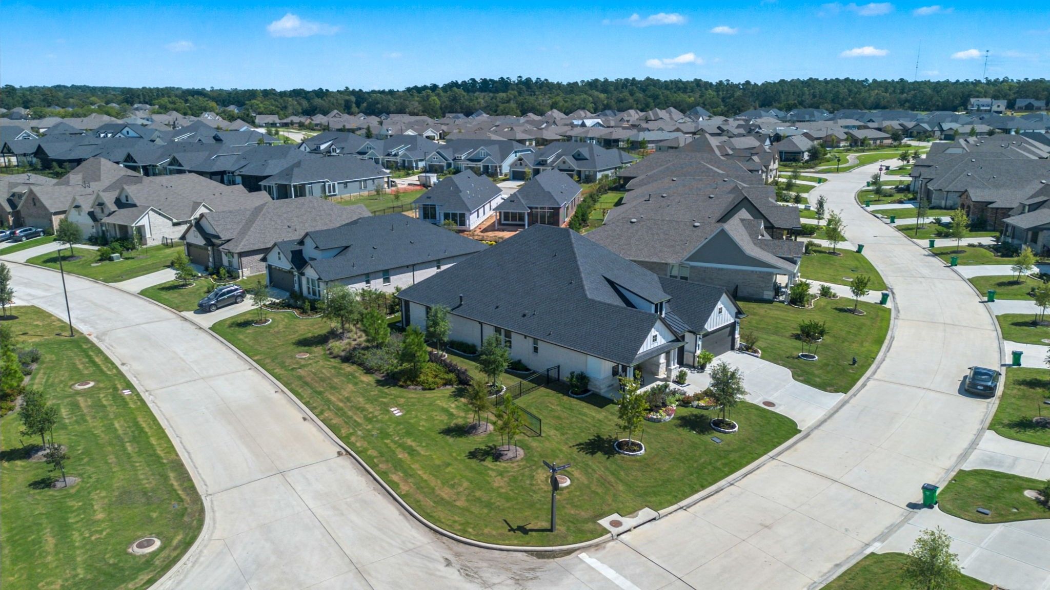Welcome to this stunning one-story showpiece in Chambers Creek, a gated 55+ community offering resort-style living in Houston’s Hill Country. Enjoy an on-site marina, the Lehman Golf Course, clubhouse with fitness center, chef-led café, resort-style pool, vineyard, community garden, chapel, & front/back yard maintenance for effortless living. This luxurious 3-bedroom, 3-bath corner-lot home is filled w/upgrades at every turn. Tray ceilings, real wood beams, wainscoting & stone accent walls create timeless elegance, while the open-concept design is bathed in natural light & rich wood flooring. The sophisticated kitchen features GE Monogram appliances, double ovens, & quartzite countertops. Sliding glass doors open to a screened patio with fireplace, overlooking lush landscaping & a private putting green. The serene owner’s suite boasts a spa-inspired oversized shower & generous walk-in closets. SEE ATTACHED FULL UPGRADE LIST! Includes an oversized 3-car garage & generator. A must see!