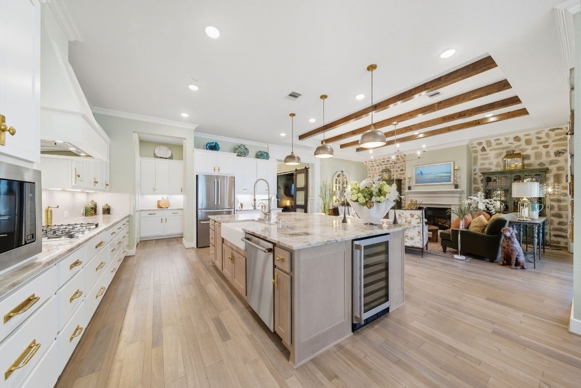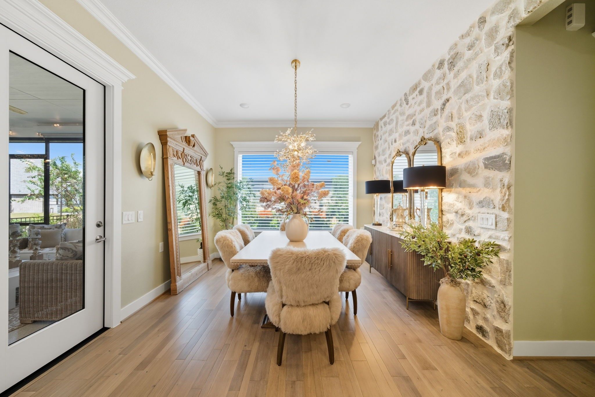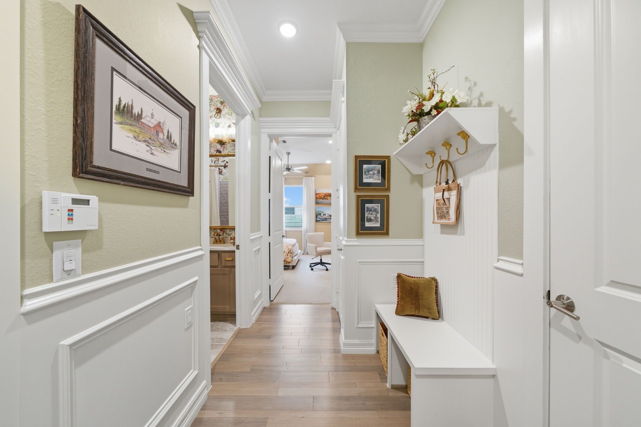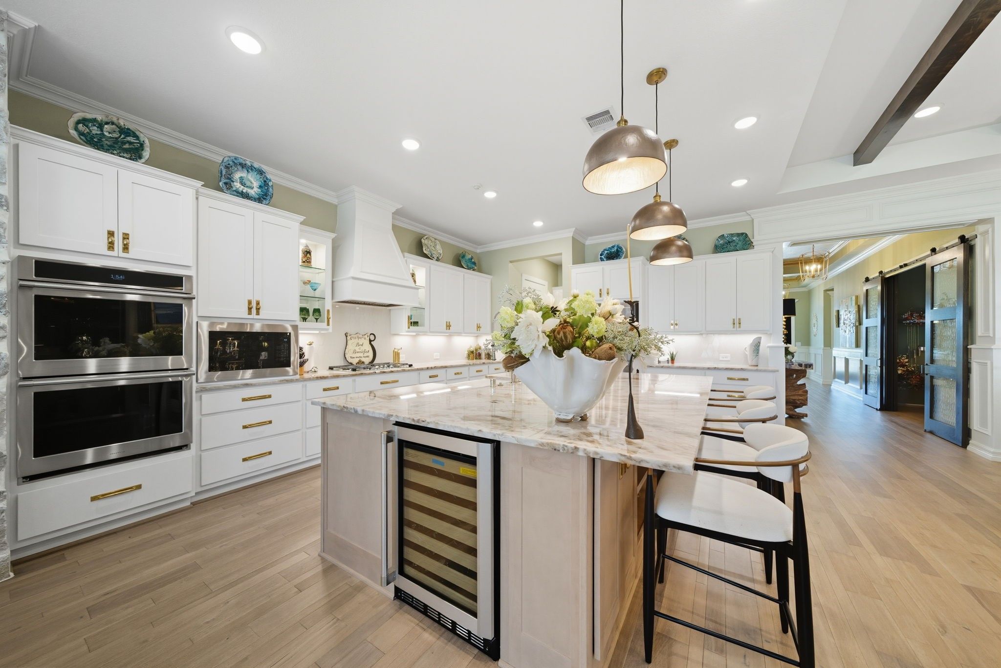 Welcome to this stunning one-story showpiece in Chambers Creek, a gated 55+ community offering resort-style living in Houston’s Hill Country. Enjoy an on-site marina, the Lehman Golf Course, clubhouse with fitness center, chef-led café, resort-style pool, vineyard, community garden, chapel, & front/back yard maintenance for effortless living. This luxurious 3-bedroom, 3-bath corner-lot home is filled w/upgrades at every turn. Tray ceilings, real wood beams, wainscoting & stone accent walls create timeless elegance, while the open-concept design is bathed in natural light & rich wood flooring. The sophisticated kitchen features GE Monogram appliances, double ovens, & quartzite countertops. Sliding glass doors open to a screened patio with fireplace, overlooking lush landscaping & a private putting green. The serene owner’s suite boasts a spa-inspired oversized shower & generous walk-in closets. SEE ATTACHED FULL UPGRADE LIST! Includes an oversized 3-car garage & generator. A must see!