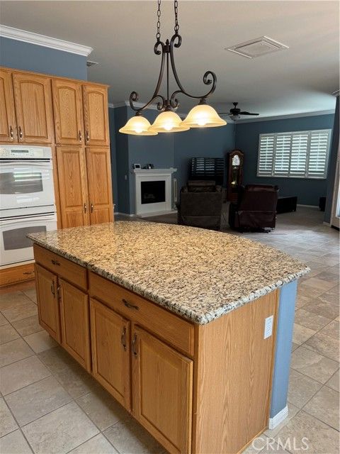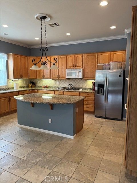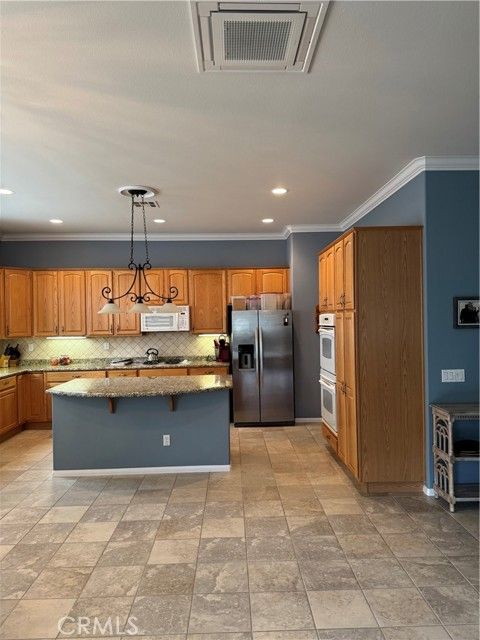 This is the favored Emerald floor plan in the gated community of Solara in the City of Beaumont. The floor plan is a single story with loads of space at 2127 Square Feet. This home has a fully paid Solar system here that is included in the home at no cost to the new buyer! The seller installed a separate A/C splitter for the main bedroom. The main bathroom has a large walk in closet and a Jacuzzi tub. Laundry room has a sink and is inside of the home, gas dryer hookup. There is a two car garage as well as a separate bay for a golf cart. Cathedral ceilings, blinds in the windows, two patios one being an Aluma Wood built. The Community has a golf course, Clubhouse, tennis, pool and spa, Bocce Ball Court and so much more! The home was built in 2004 according to Records. Kitchen has an island, granite counter tops, built in double oven, dishwasher and microwave. The living room, dining area and kitchen are open to each other. Fireplace has an electric starter.