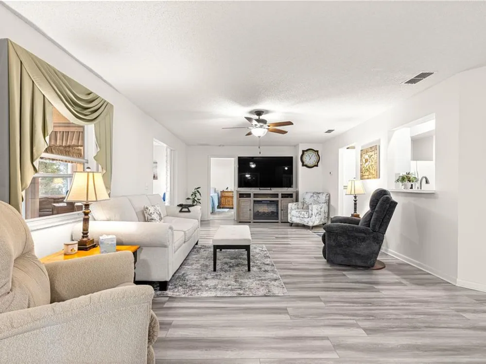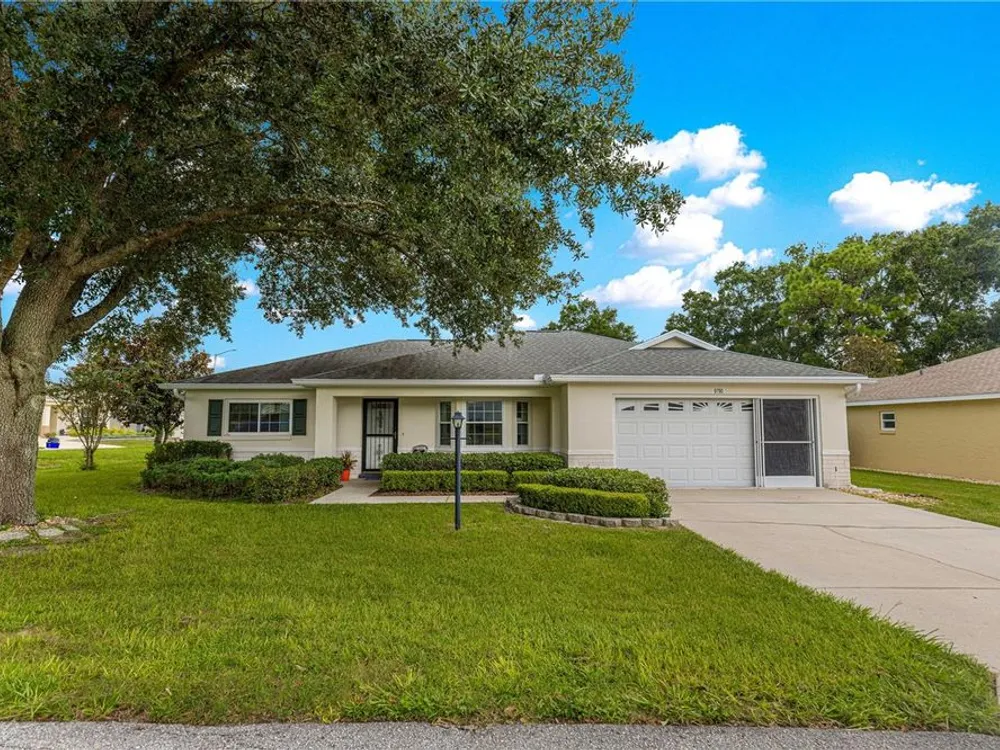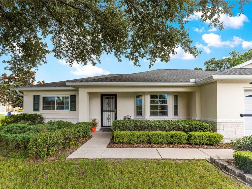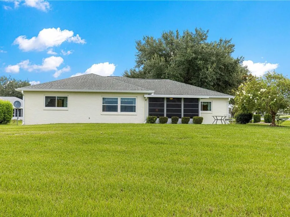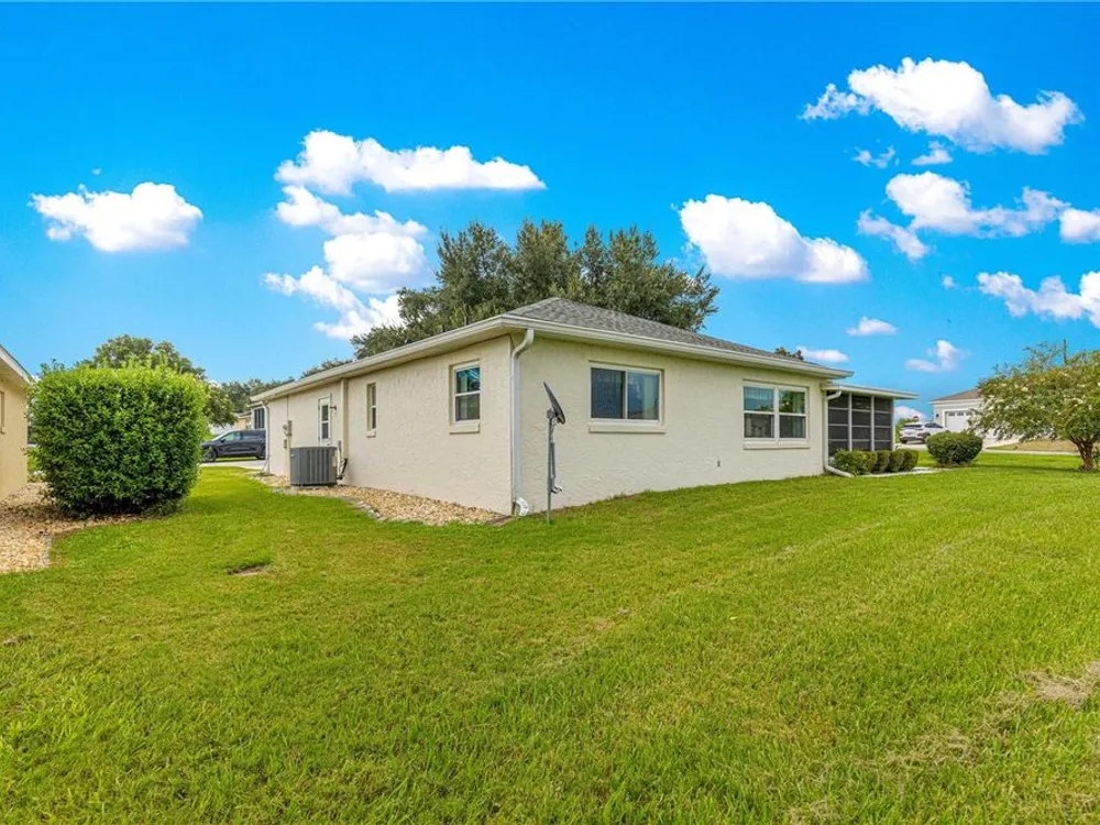 VERY POPULAR ANDALUS MODEL SINGLE-FAMILY HOME located in the Crescent Ridge 2 Neighborhood of On Top of the World, 55+ gated golf community in SW Ocala FL. This home is located on a PREMIUM corner lot with GREEN SPACE in back! Nice, wide driveway feeds into the 2+ car garage. 2 Bedrooms (Split Bedroom Plan), Flex Room, Great Room, Finished Lanai, Screened Porch, and MORE! Step inside the foyers and immediately notice the Luxury Vinyl Plank flooring THROUGHOUT (bedrooms & Flex floor just installed!). The kitchen w/electric range is in the front of the home with tile floor. With ample table space and tons of cabinets, this is an entertainer’s dream kitchen! The guest bedroom (split bedroom plan) is in the front left of the home, with guest/hall bath just steps away. The Flex Room is conveniently located off the Great Room with doors for complete privacy as extra sleeping space, and office, craft room, etc.! The spacious Great Room is light and bright. The Florida Room is finished and part of the conditioned living space! There is also a 3-season room – perfect for enjoying the stunning sunsets or just enjoying the Green Space privacy. Primary large bedroom in back right of home for privacy has a spacious walk-in closet, and en suite bath with step-in shower! The 2+ car garage has a 4 ft extension! The laundry is in the garage, with a side door to access the yard. ROOF 2017, HVAC 2013 (NEW CONDENSOR 2025) & DOUBLE PANE, ENERGY EFFICIENT WINDOWS 2012! The monthly HOA fee includes Basic Spectrum Cable, roof repair, exterior painting every seven years, exterior maintenance and insurance, landscaping, trash & recycling, 24/7 monitored gates and what seems like endless amenities; three pools (2 outside & 1 inside & another under construction), two state of the art fitness centers, pickleball (uncovered & covered), billiards, archery range, corn hole, bocce ball, tennis, shuffleboard, horse shoes, remote control flying field and race cars, 175+ clubs, woodworking shop (extra fee), library, and much, much more! A golf cart community with access to several shopping centers. Centrally located 20 minutes from the World Equestrian Center, easy drive to 4 cruise ports and/or airports, and within a close proximity to entertainment complexes in Orlando.