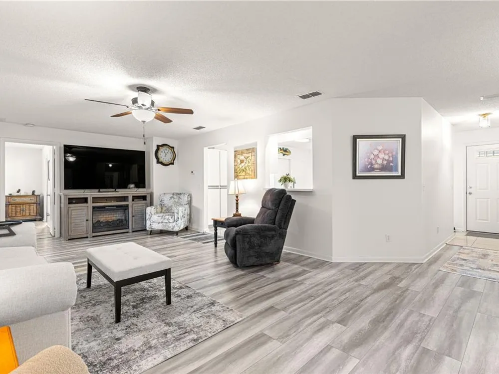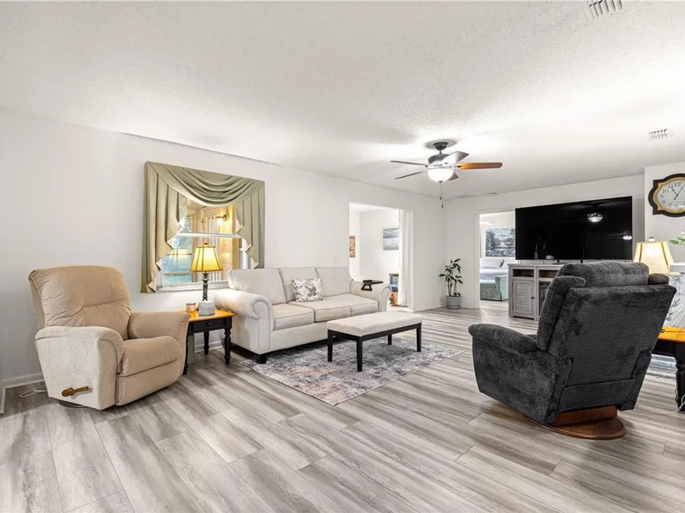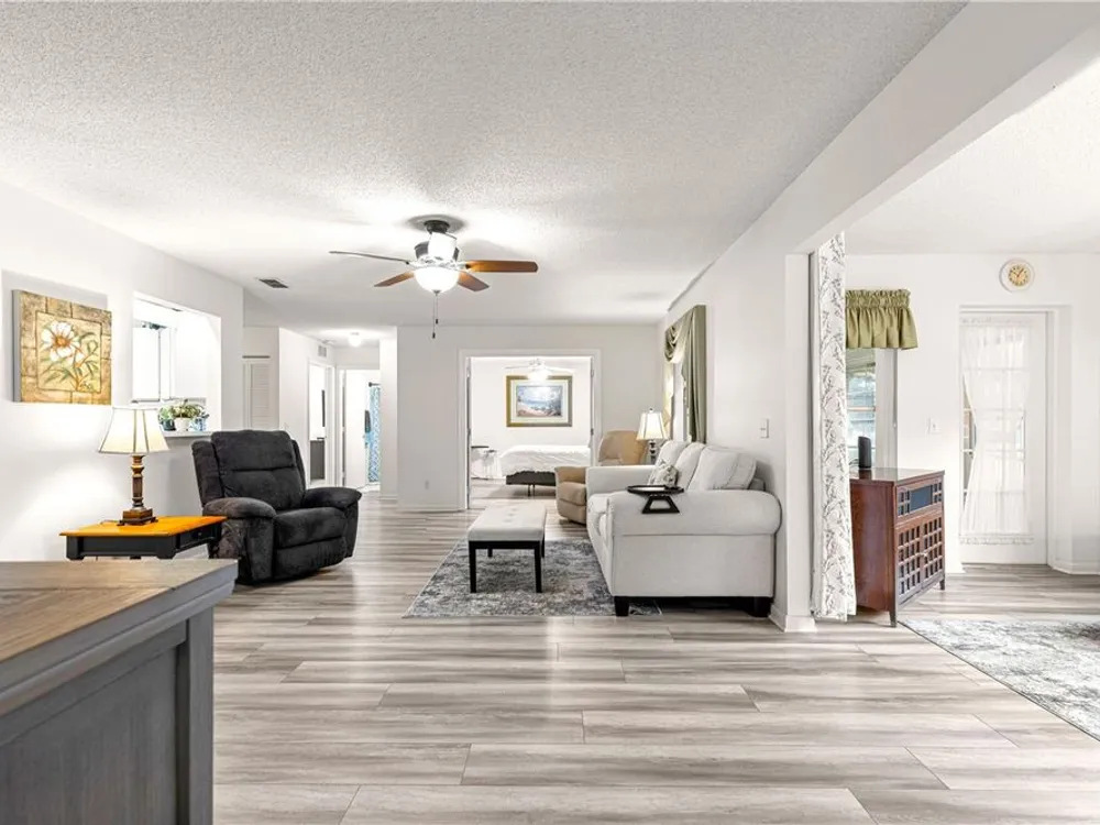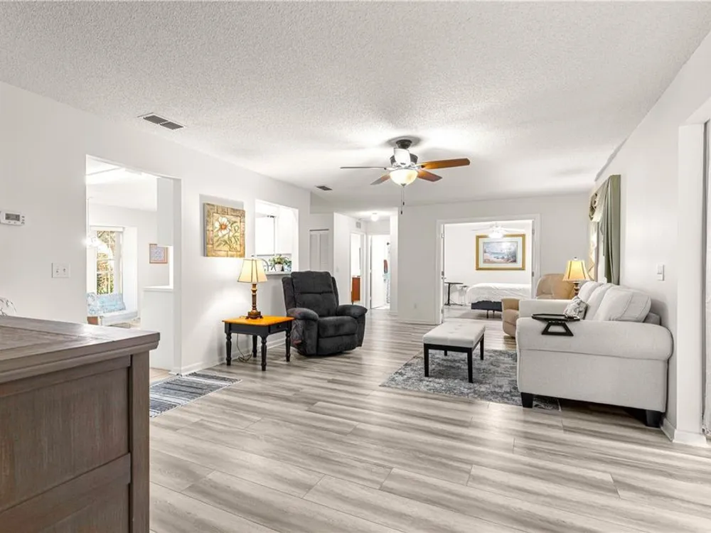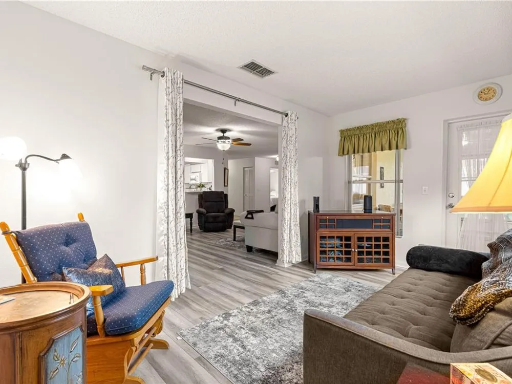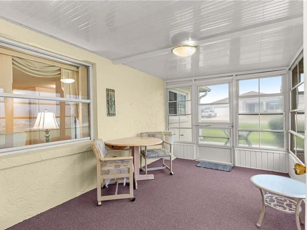VERY POPULAR ANDALUS MODEL SINGLE-FAMILY HOME located in the Crescent Ridge 2 Neighborhood of On Top of the World, 55+ gated golf community in SW Ocala FL. This home is located on a PREMIUM corner lot with GREEN SPACE in back! Nice, wide driveway feeds into the 2+ car garage. 2 Bedrooms (Split Bedroom Plan), Flex Room, Great Room, Finished Lanai, Screened Porch, and MORE! Step inside the foyers and immediately notice the Luxury Vinyl Plank flooring THROUGHOUT (bedrooms & Flex floor just installed!). The kitchen w/electric range is in the front of the home with tile floor. With ample table space and tons of cabinets, this is an entertainer’s dream kitchen! The guest bedroom (split bedroom plan) is in the front left of the home, with guest/hall bath just steps away. The Flex Room is conveniently located off the Great Room with doors for complete privacy as extra sleeping space, and office, craft room, etc.! The spacious Great Room is light and bright. The Florida Room is finished and part of the conditioned living space! There is also a 3-season room – perfect for enjoying the stunning sunsets or just enjoying the Green Space privacy. Primary large bedroom in back right of home for privacy has a spacious walk-in closet, and en suite bath with step-in shower! The 2+ car garage has a 4 ft extension! The laundry is in the garage, with a side door to access the yard. ROOF 2017, HVAC 2013 (NEW CONDENSOR 2025) & DOUBLE PANE, ENERGY EFFICIENT WINDOWS 2012! The monthly HOA fee includes Basic Spectrum Cable, roof repair, exterior painting every seven years, exterior maintenance and insurance, landscaping, trash & recycling, 24/7 monitored gates and what seems like endless amenities; three pools (2 outside & 1 inside & another under construction), two state of the art fitness centers, pickleball (uncovered & covered), billiards, archery range, corn hole, bocce ball, tennis, shuffleboard, horse shoes, remote control flying field and race cars, 175+ clubs, woodworking shop (extra fee), library, and much, much more! A golf cart community with access to several shopping centers. Centrally located 20 minutes from the World Equestrian Center, easy drive to 4 cruise ports and/or airports, and within a close proximity to entertainment complexes in Orlando.
