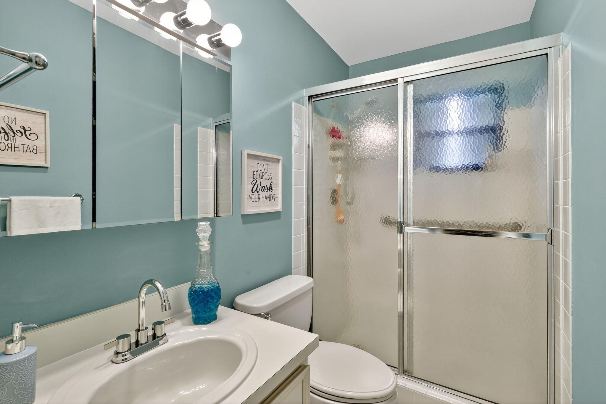 - Entry Level Living Area, Walk-In Closet(s), Florida Room, Living/Dining Room, Blinds, Primary Downstairs, Separate Shower, Storm Shutters