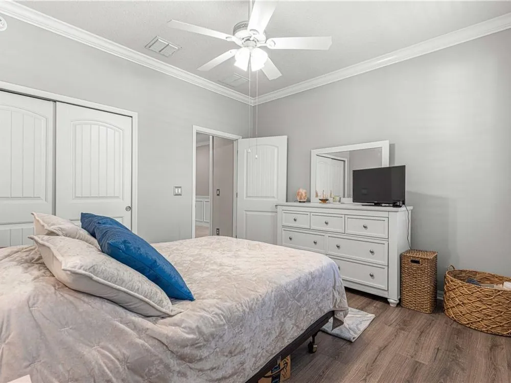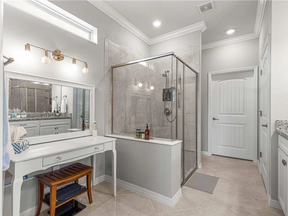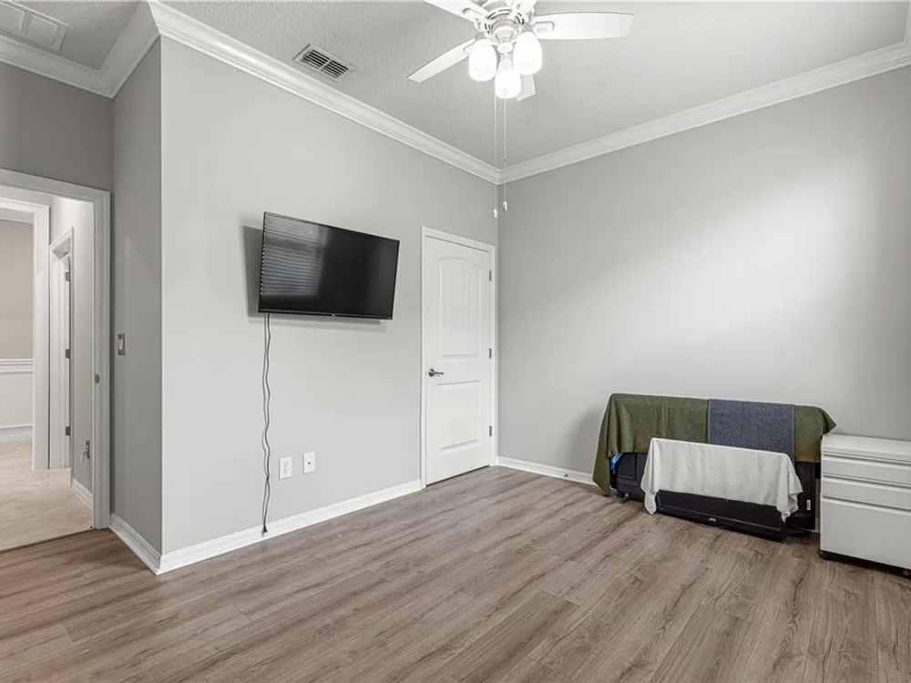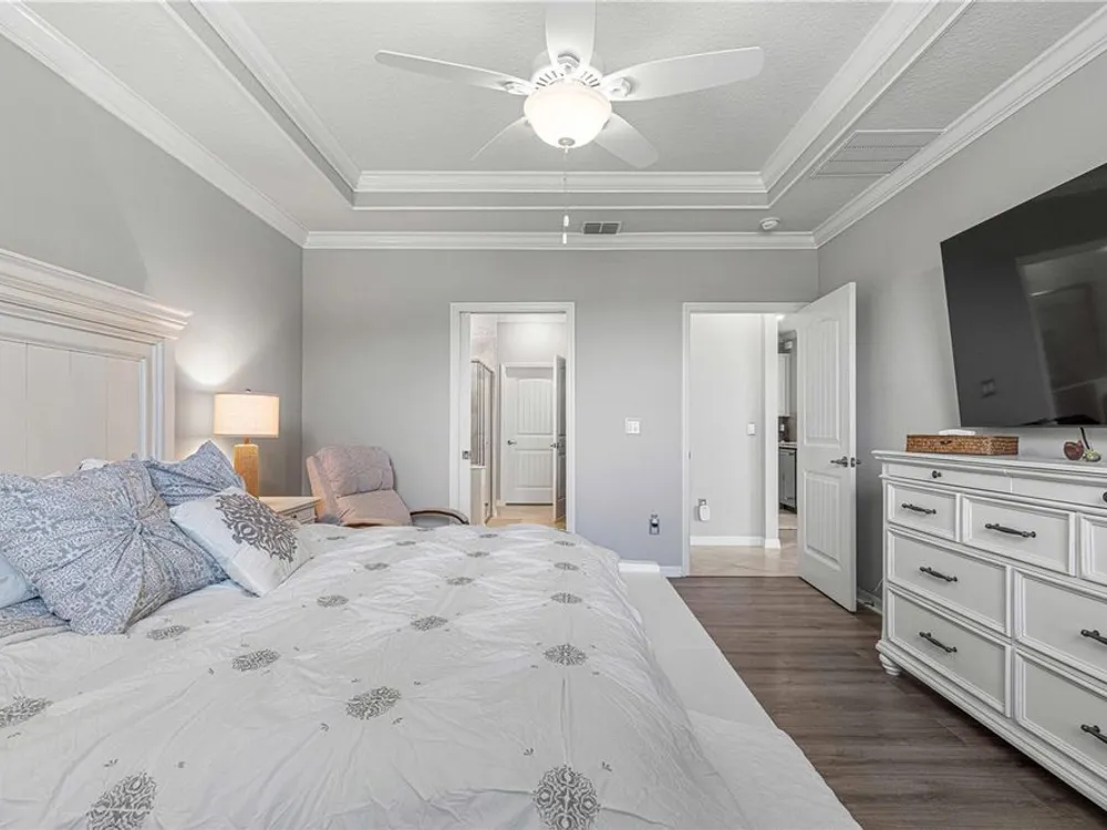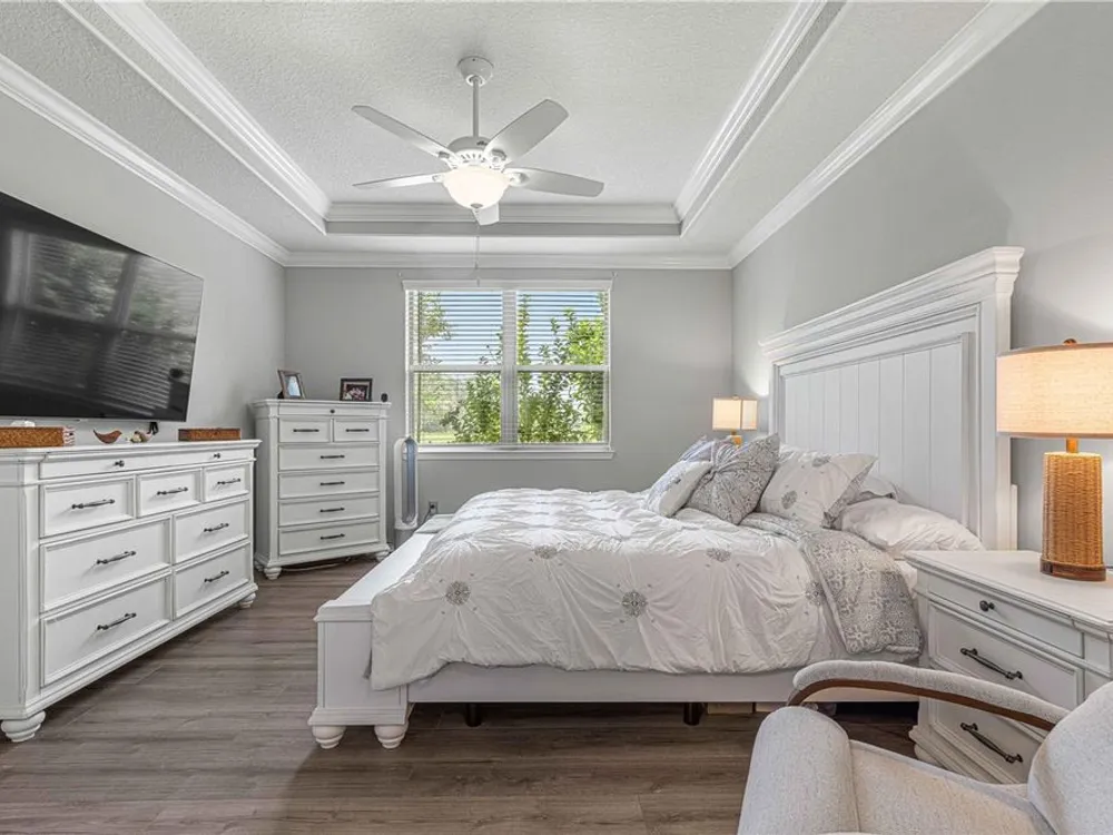 - Ceiling Fan(s), Chair Rail, Crown Molding, High Ceilings, Living/Dining Room, Open Floorplan, Solid-Wood Cabinets, Split Bedrooms, Stone Counters, Thermostat, Tray Ceiling(s), Walk-In Closet(s), Window Treatments