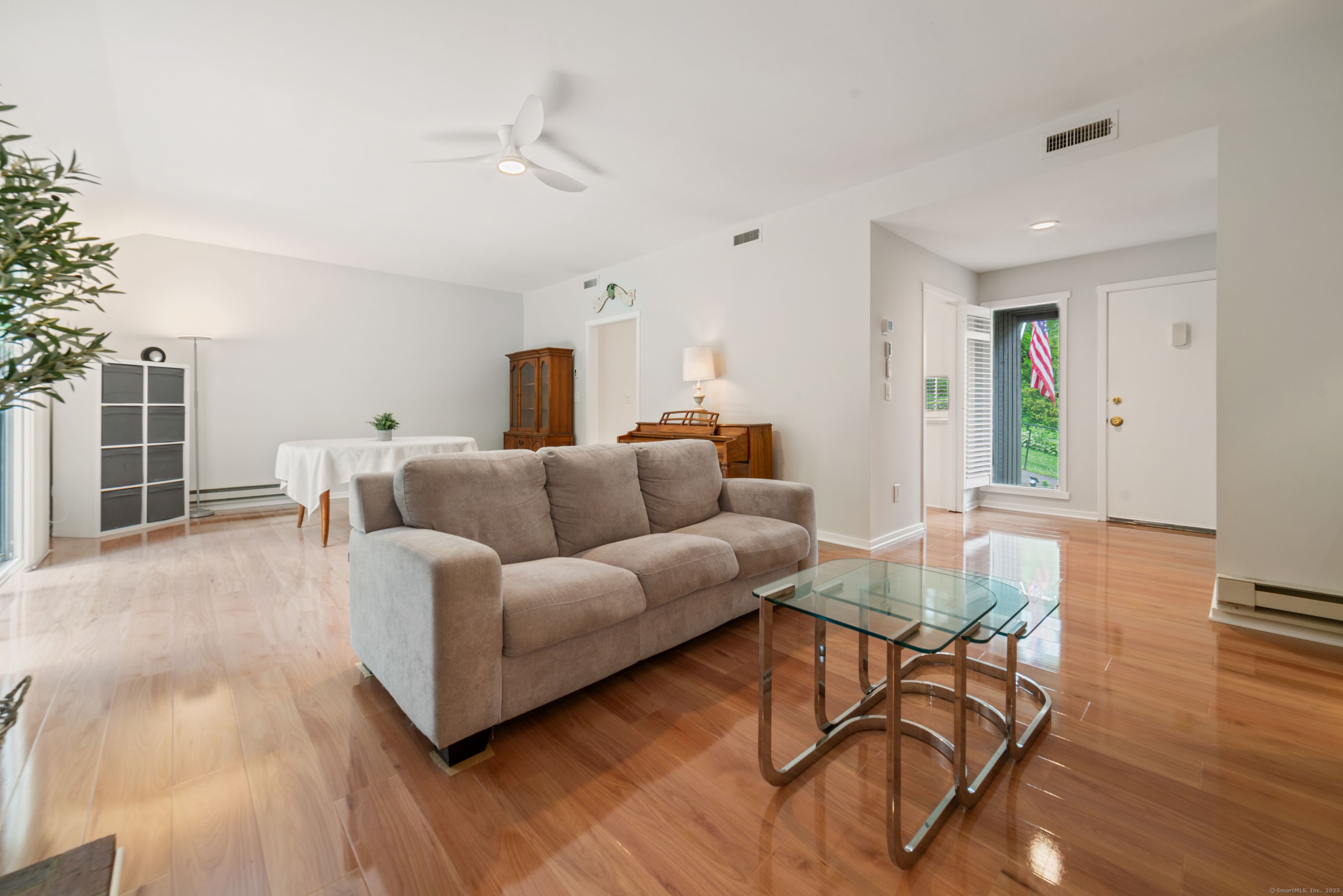 END UNIT Sherman 2 bed/ 2 bath at a spacious 1432 sq ft. NEW LVP flooring in the kitchen, living room, dining room and primary bedroom. NEW tile floor in primary bath & guest bath. NEW kitchen cabinets, NEW counter tops, NEW custom built in cabinet/coffee bar. Open concept Living room dining room combo. Slider off the dining area to a private slate patio and ready for you to enjoy this summer. The primary bedroom en suite has as slider to the patio, dressing area with a large bathroom with double closets and walk in shower. Second bedroom can be office or den. Guest bath has a tub shower. HOA fee includes Spectrum gold package cable and internet service. Heritage Village is an active 55+ vibrant community and of course pet friendly. Cool off in one of the 4 pools after playing pickleball, walking the ponds, bocce or just sit relax, read your book and make new friends. Enjoy the many clubs, garden club and grow your own produce this summer. Southbury has plenty of shopping, restaurants, farmers market, dog park and a movie theatre. Come see this unit it is ready for to make it your next home. NEW buyers have a $5000 equity fee to the Heritage Village Foundation due at closing.