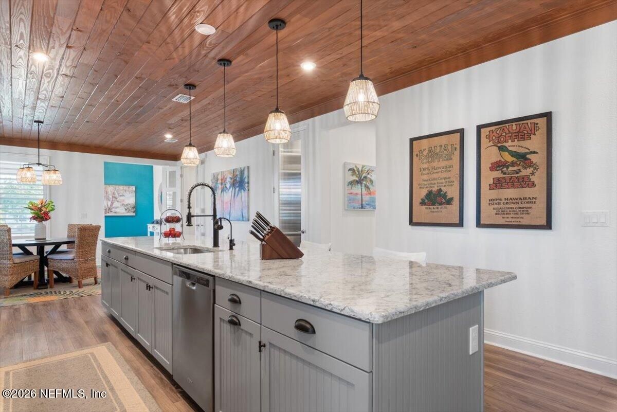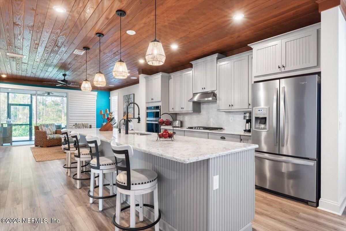 Don't miss this rare gem, in this gated community of Watersong at Rivertown. Perfectly positioned on a private corner lot, the property surrounded by lush, meticulously curated landscaping that creates a peaceful retreat you won't find in the other cookie cutter homes. From the moment you step inside, you can't help but notice the exceptional pride of ownership. The home has been immaculately maintained and thoughtfully upgraded featuringa stunning tonge-and groove ceiling that adds warmth and character, along with all new kitchen and bathroom fixtures including designer lighting, modern hardware and stylish mirrors. The interior is tastefully decorated to reflect the true Florida tropical style, offering a light airy feel that comlements the surrounding natural beauty. Step outside to your own private space - and extended paver patio and screened in lanai provide the ideal setting for morning coffee, evening relaxation, or entertaining guests year round. Located in the heart of St Johns County, this vibrant adult community offers convenient access to the charm and history of St Augustine, along with being close to shopping, restaurants and I95.