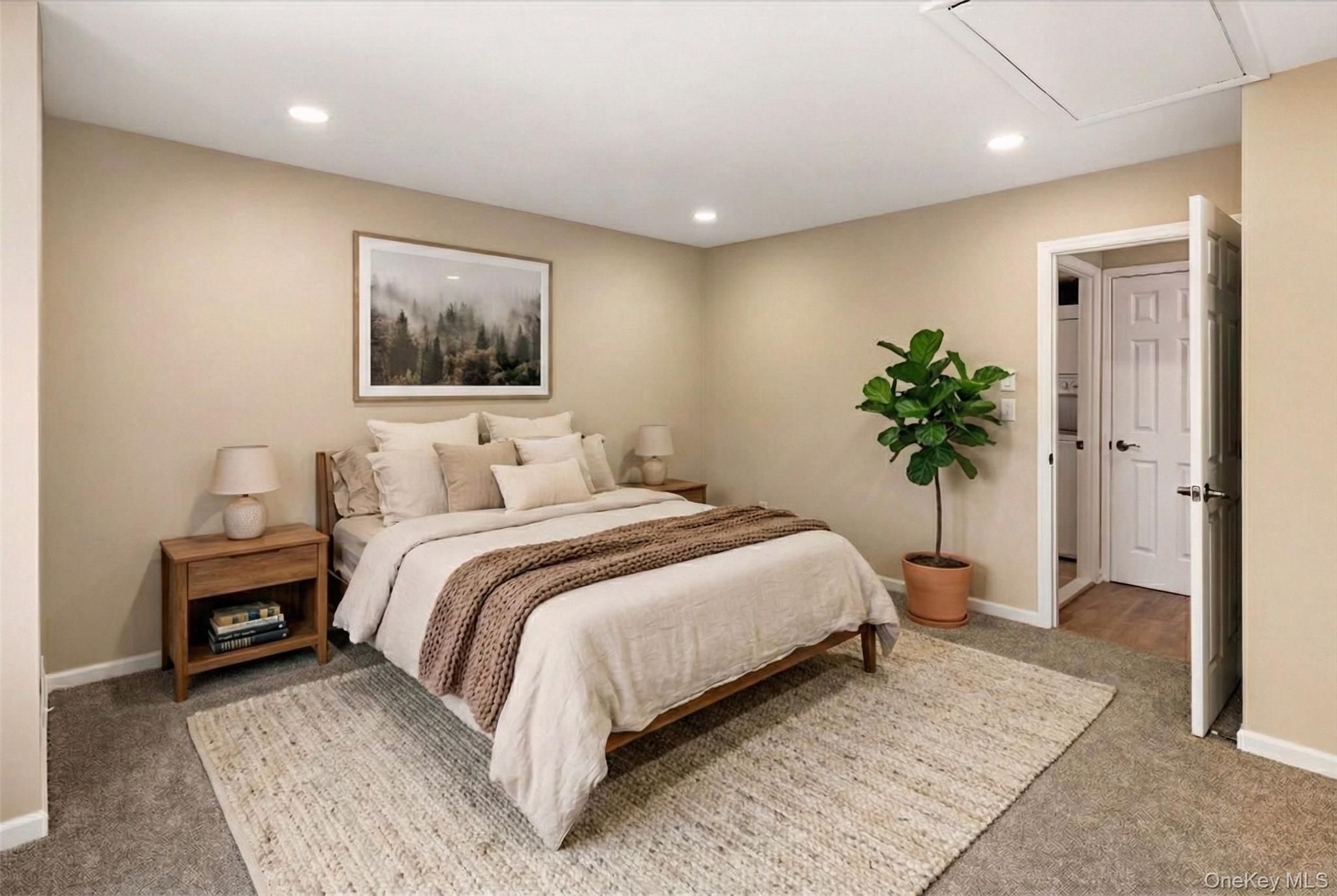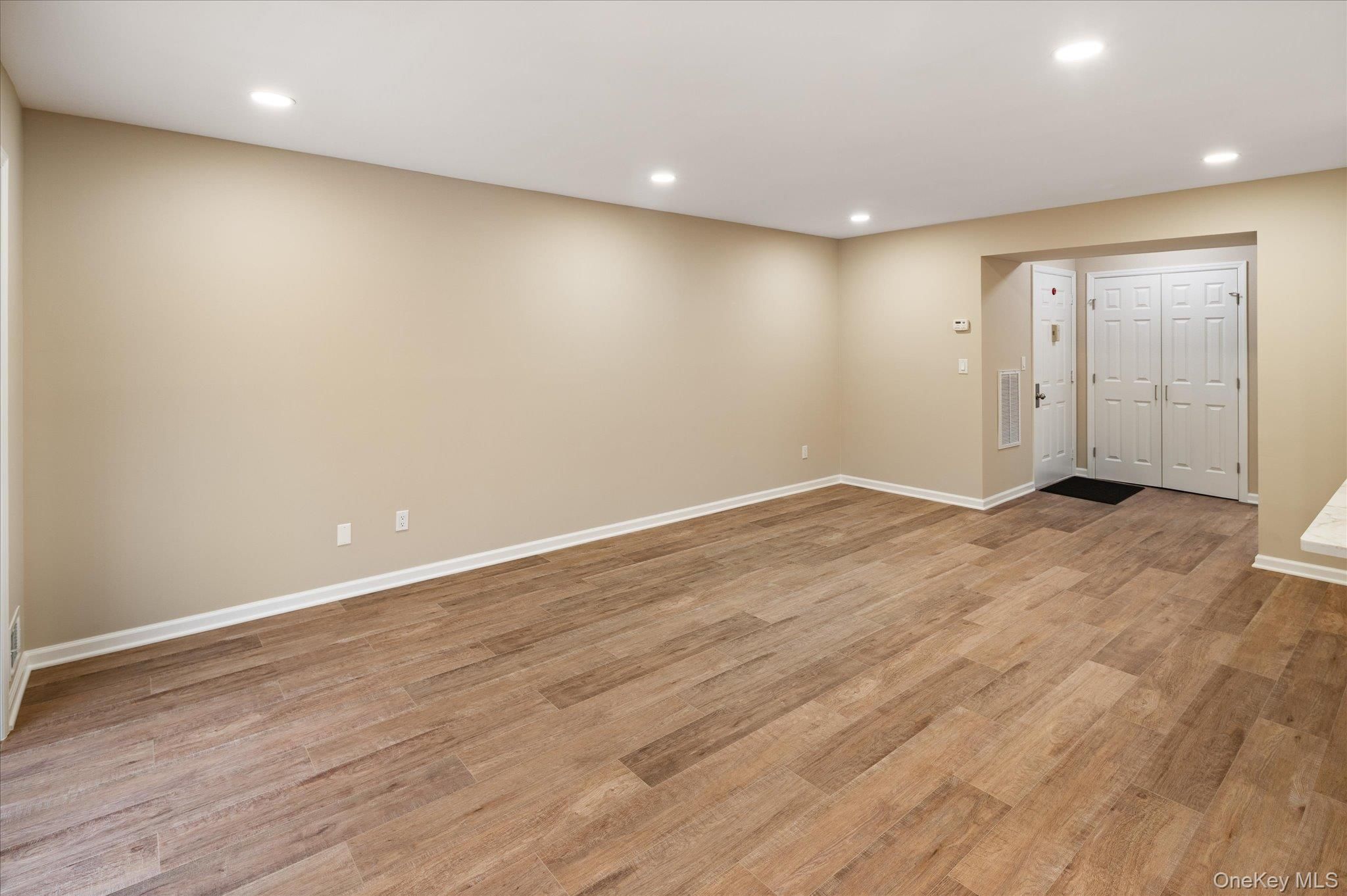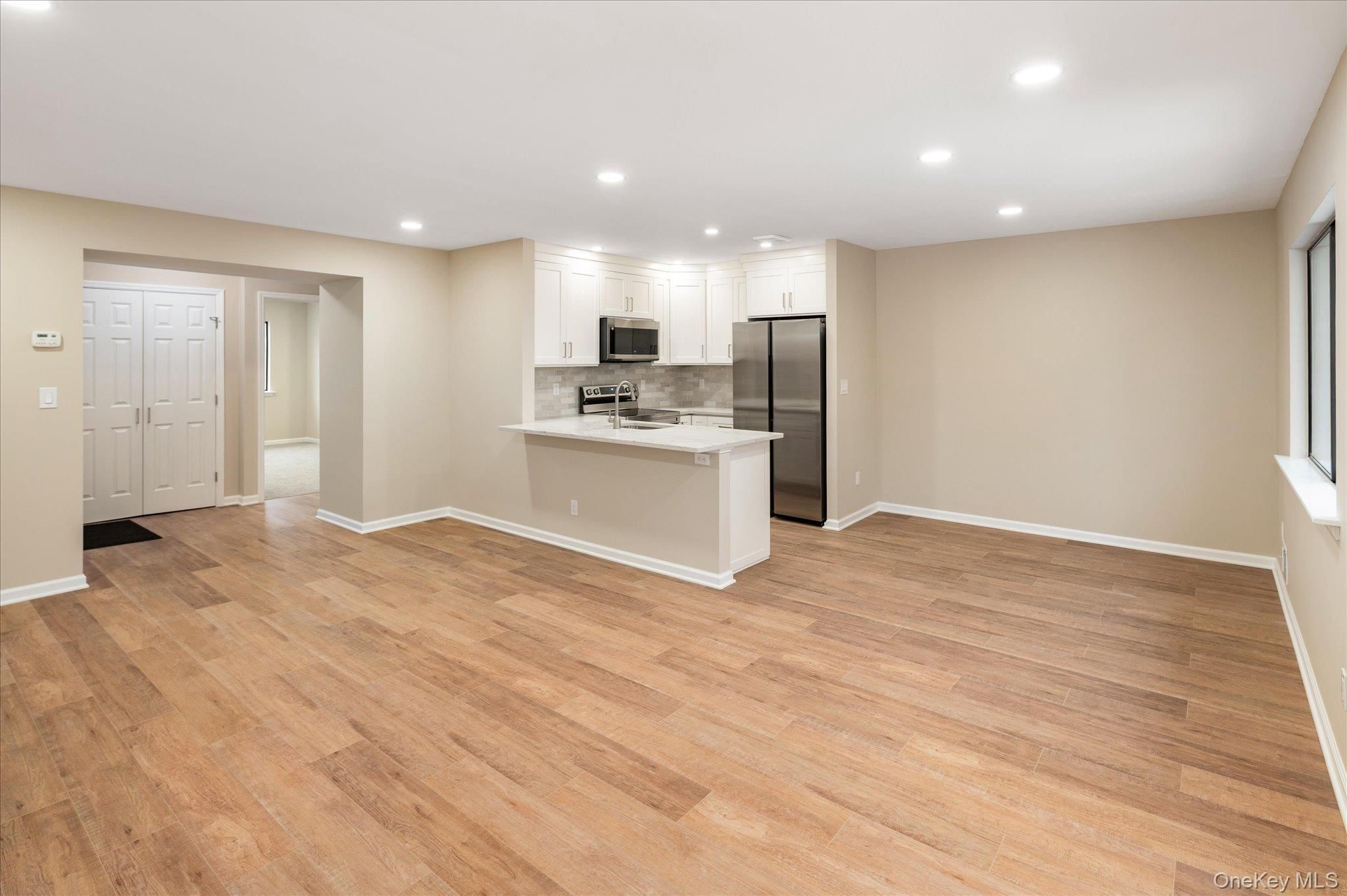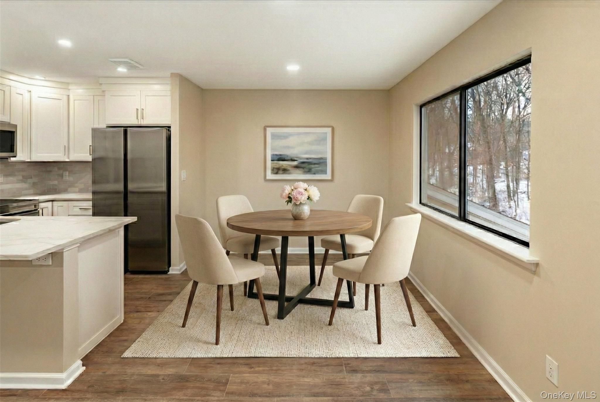 Welcome to Jefferson Village, one of Northern Westchester’s most sought after 55+ active adult communities, where maintenance free living and a vibrant lifestyle come together in an ideal Yorktown Heights location. Privately set along a peaceful, tree-lined cul-de-sac, this beautifully renovated 1 bedroom, 1 bathroom upper level home has been completely transformed with thoughtful design and modern finishes. Sunlight fills the home through oversized windows and a sliding glass door, creating a bright, airy atmosphere and serene views of mature trees and landscaped grounds. The redesigned open concept layout centers around a stunning new kitchen featuring quartz countertops, custom cabinetry, stainless steel appliances, and recessed lighting. Luxury vinyl flooring flows seamlessly into the living and dining areas, making the space feel stylish and effortless whether entertaining or enjoying a quiet evening at home. Step outside onto your private deck, the perfect setting for morning coffee or unwinding at the end of the day while overlooking peaceful wooded surroundings. Every detail inside has been refreshed, including new interior doors, updated lighting, plush carpeting, and a fully renovated bathroom highlighted by a spacious walk-in shower designed for comfort and ease. The generously sized bedroom offers abundant closet space and natural light, creating a comfortable retreat. A convenient in-unit washer and dryer are tucked away perfectly for everyday use. Jefferson Village residents enjoy a truly active lifestyle with exceptional amenities including a clubhouse with a fitness center and library, an outdoor pool with cabana areas, tennis and pickleball courts, bocce, gardening spaces, and organized events. Located within walking distance to shopping and dining at Jefferson Valley Mall, and just minutes from medical facilities and major parkways. Heat, hot water, and basic cable are included in the monthly common charges, allowing for simple, low-maintenance living. More than a renovation, this is an opportunity to step into a fresh chapter surrounded by comfort, convenience, and community.