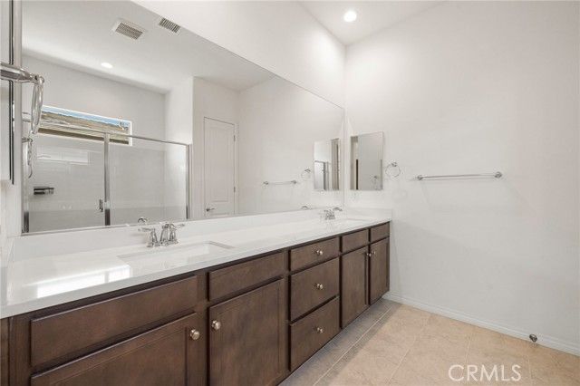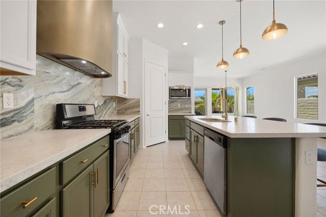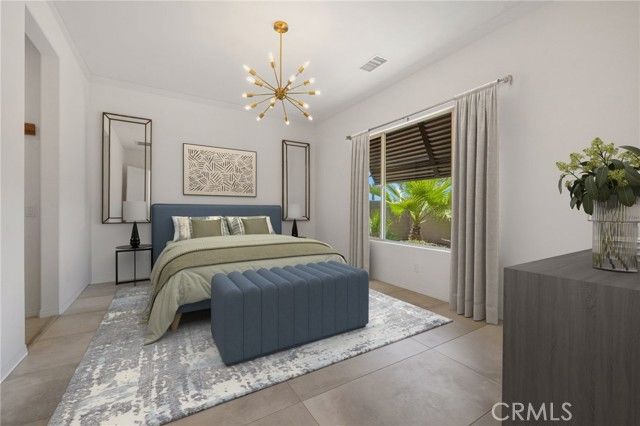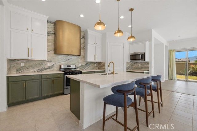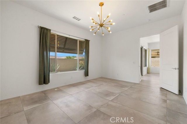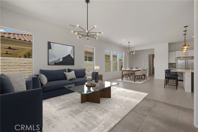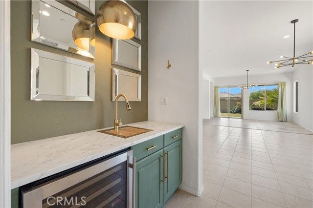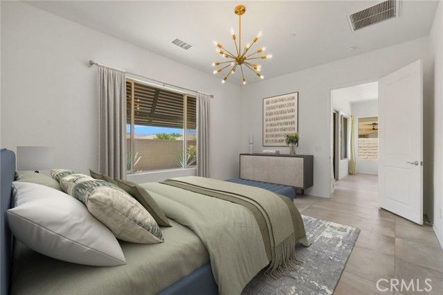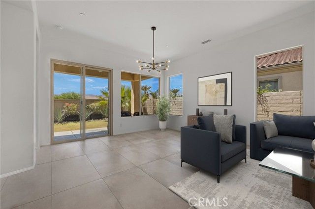 Welcome to one of the most highly upgraded “Expedition” models in Del Webb Rancho Mirage, featuring a rare 3-bedroom configuration—an uncommon find for this floor plan that adds valuable flexibility and appeal. Designed for both everyday living and effortless entertaining, this home showcases a custom wet bar with wine fridge, designer lighting, built-in cabinetry, and a brass-tone sink. The open-concept layout is bright and inviting, centered around a chef’s kitchen with quartz countertops, full-height porcelain backsplash, custom vent hood, premium appliances, and elegant double-stacked cabinetry. Two of the three bedrooms offer private en-suite baths, creating ideal separation for guests, while the spacious primary suite serves as a relaxing retreat, and customized walk-in closets and designer lighting elevate every space. Additional features include OWNED SOLAR, a tankless water heater, upgraded laundry room with sink and cabinetry, fire sprinkler system, and a large garage. Step outside to a beautifully landscaped natural grass yard with stunning mountain views—perfect for enjoying desert sunsets. Located in the guard-gated Del Webb 55+ community, residents enjoy resort-style amenities and a vibrant, active lifestyle, making this a rare opportunity to own a highly customized and versatile home in one of Rancho Mirage’s most desirable communities.