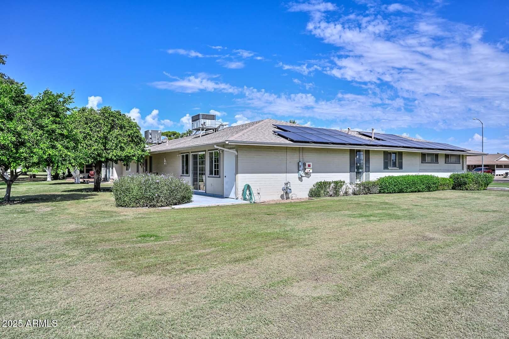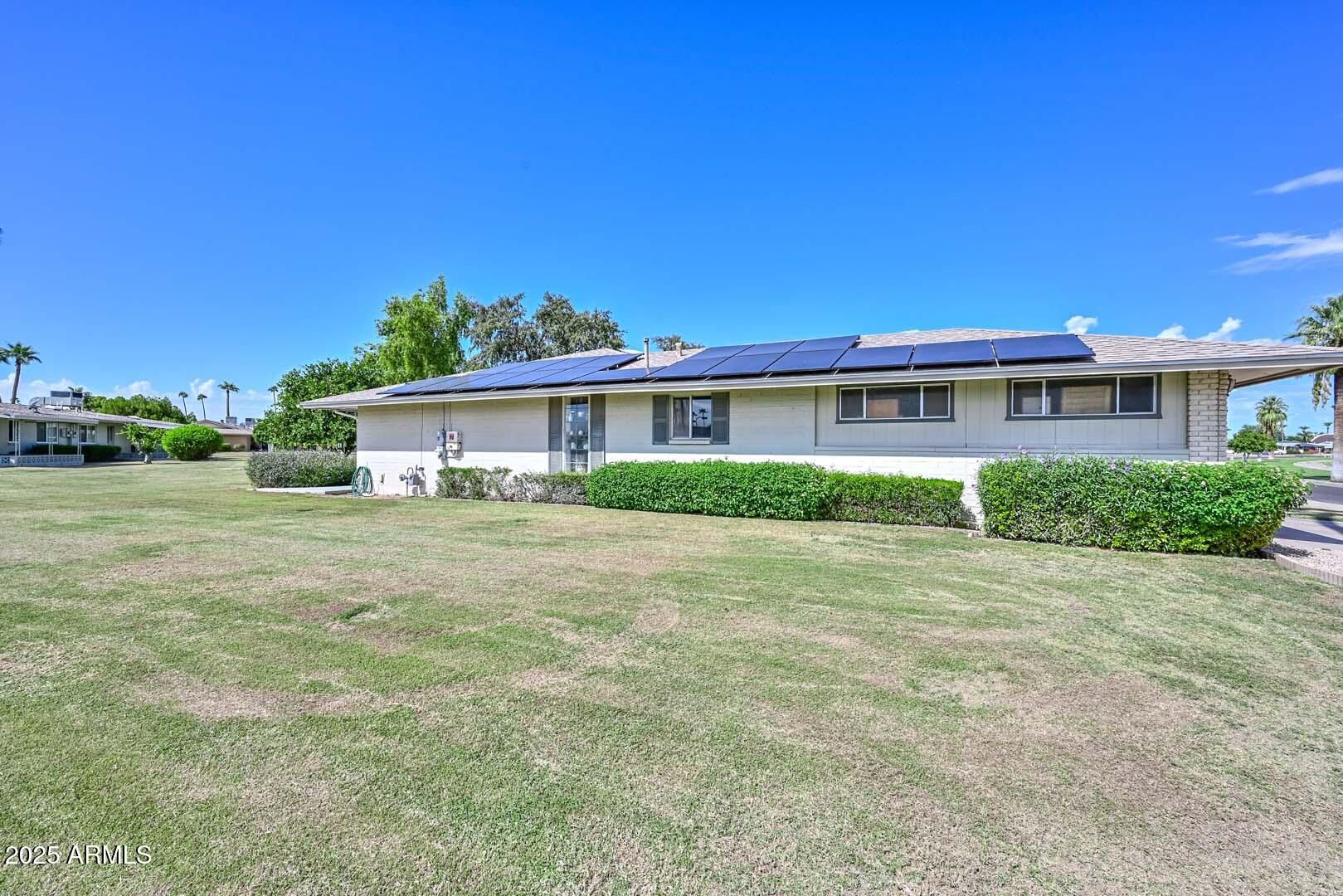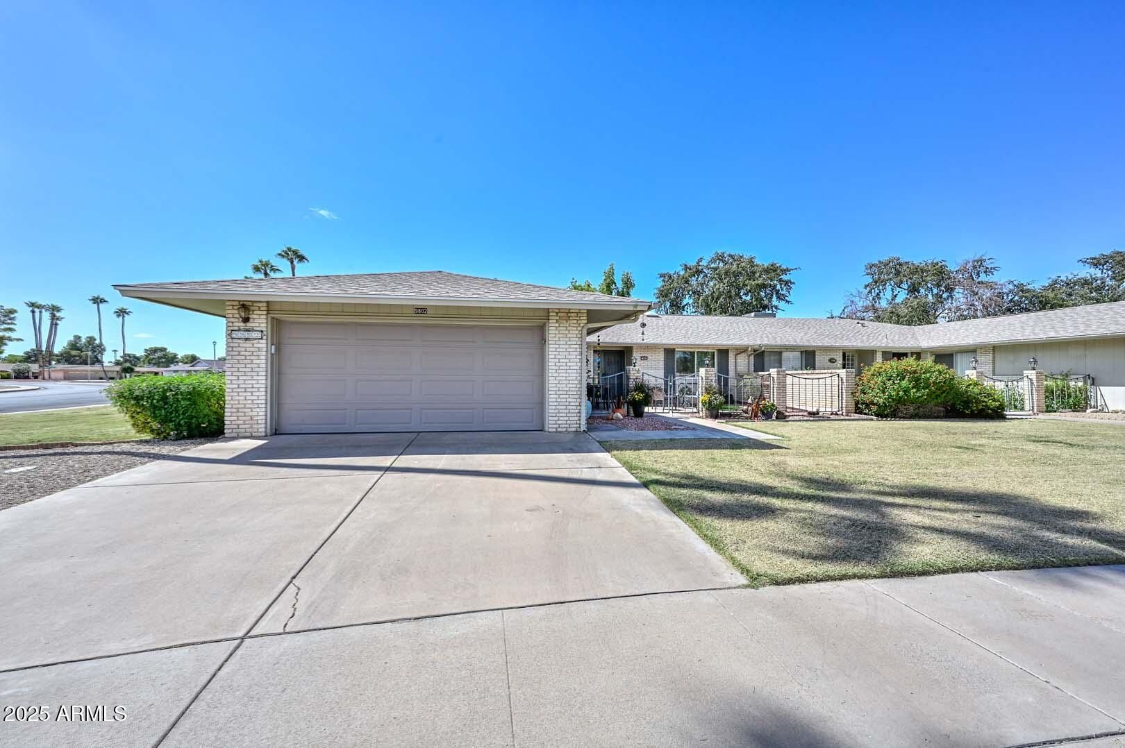 AZ Resort Style Living at its Best! Beautifully Remodeled Gemini home in Sun City! This 2 bedroom 2 bath home has new flooring throughout, a fully updated kitchen with new cabinets, Stainless Steel appliances and a quartz waterfall edge countertop. Bathrooms have been fully updated w/tiled shower, new tub surround & modern finishes. New Water Heater Inside Laundry room w/ New Washer/Gas Dryer & New Water Softener & lot's of Storage!. OWNED SOLAR! Spacious 2 car garage.New IPT sewer lining system with 20 yeqr warranty.Enjoy the proximity to Mountain View Rec Center, Amphitheater, Golf Club,Shopping Restaurants, & More! Such a Great Lifestyle!