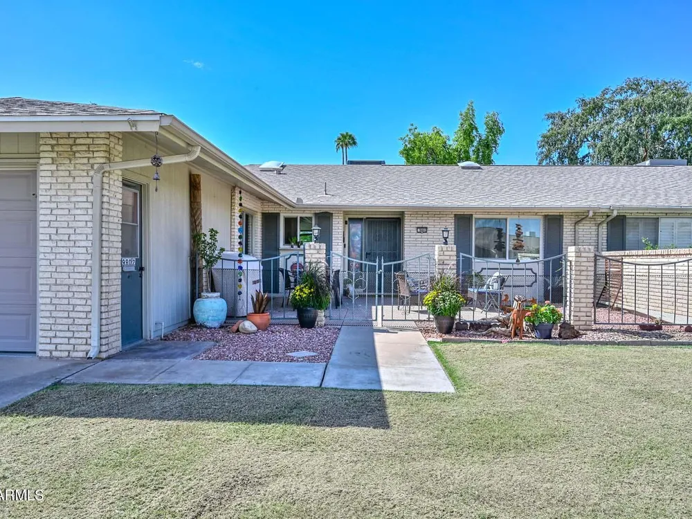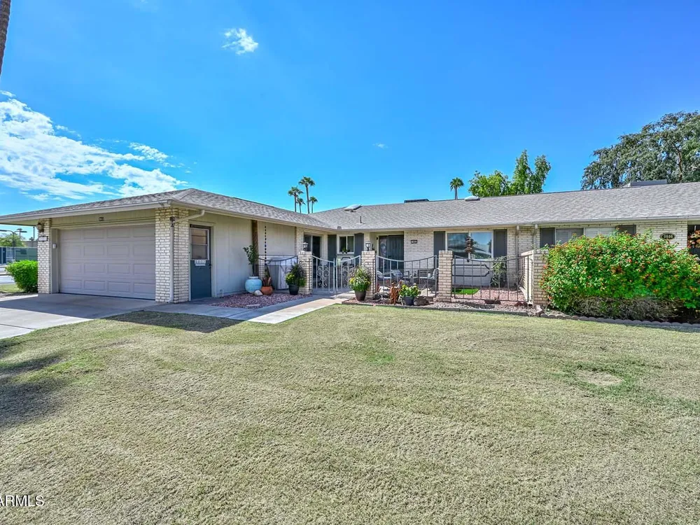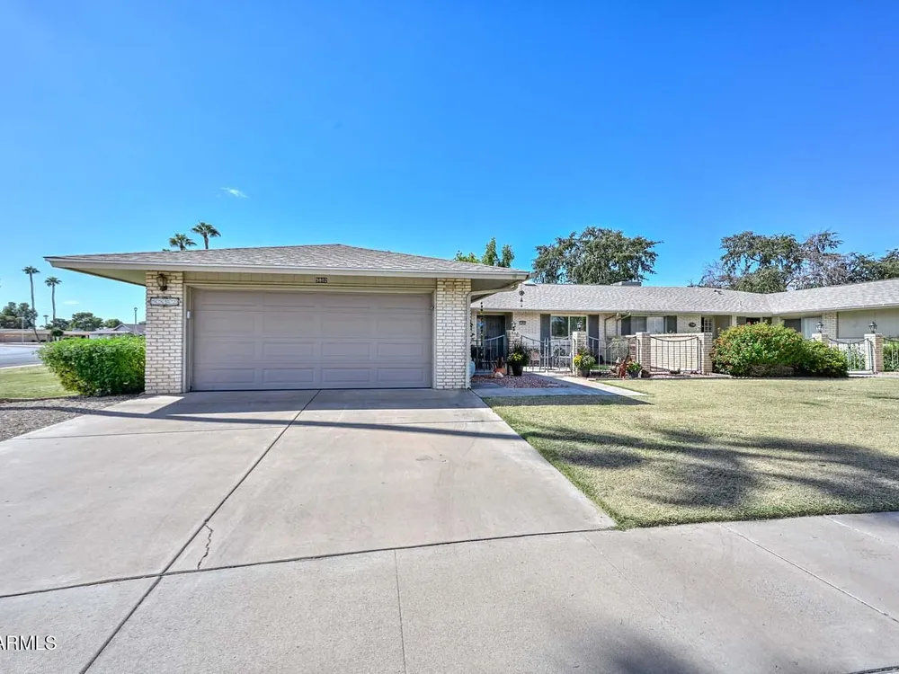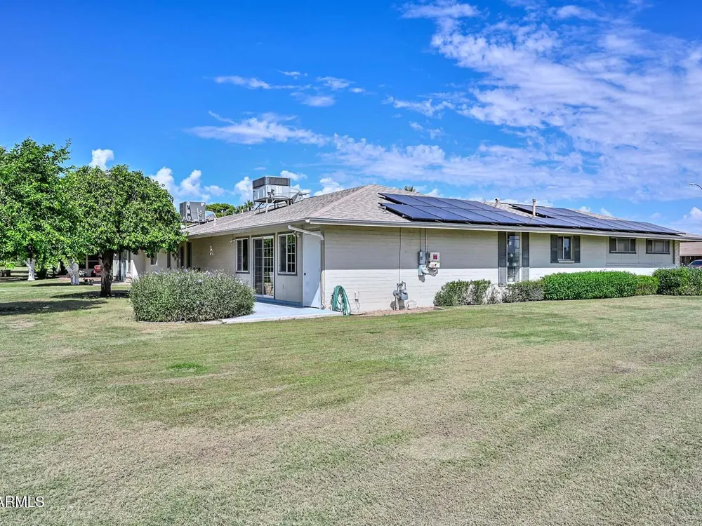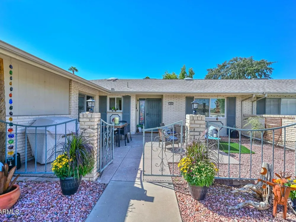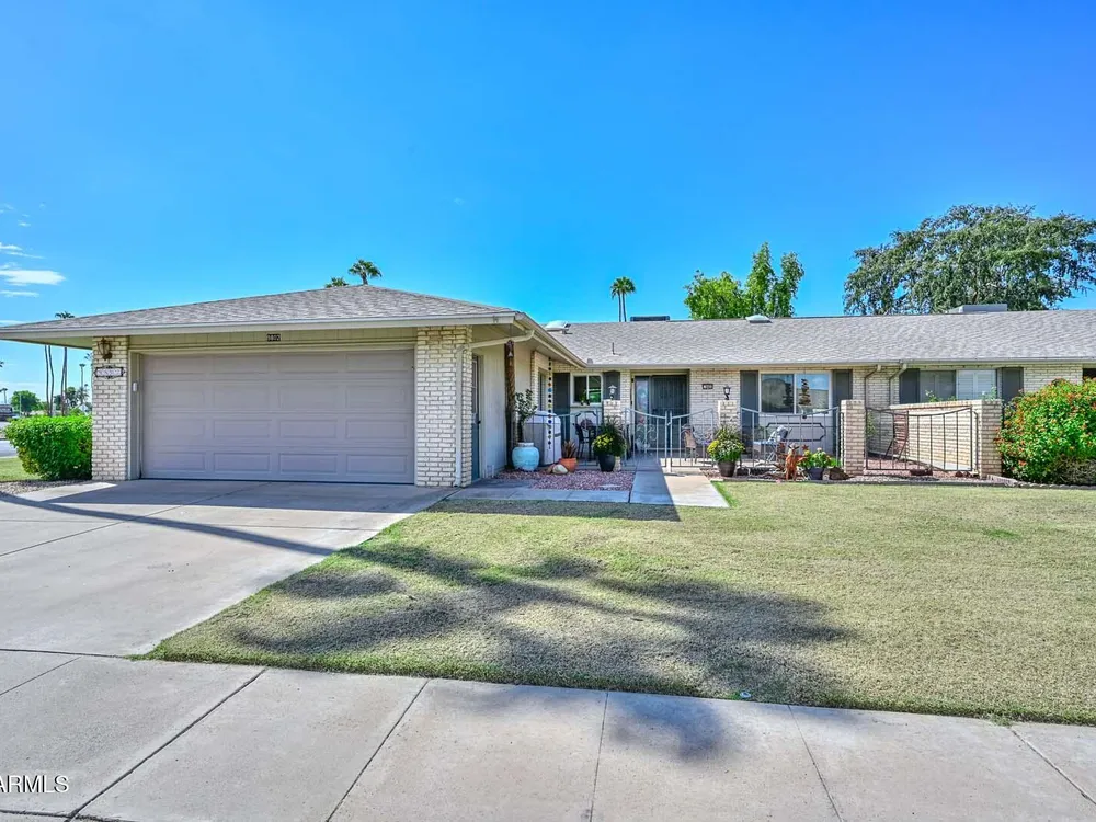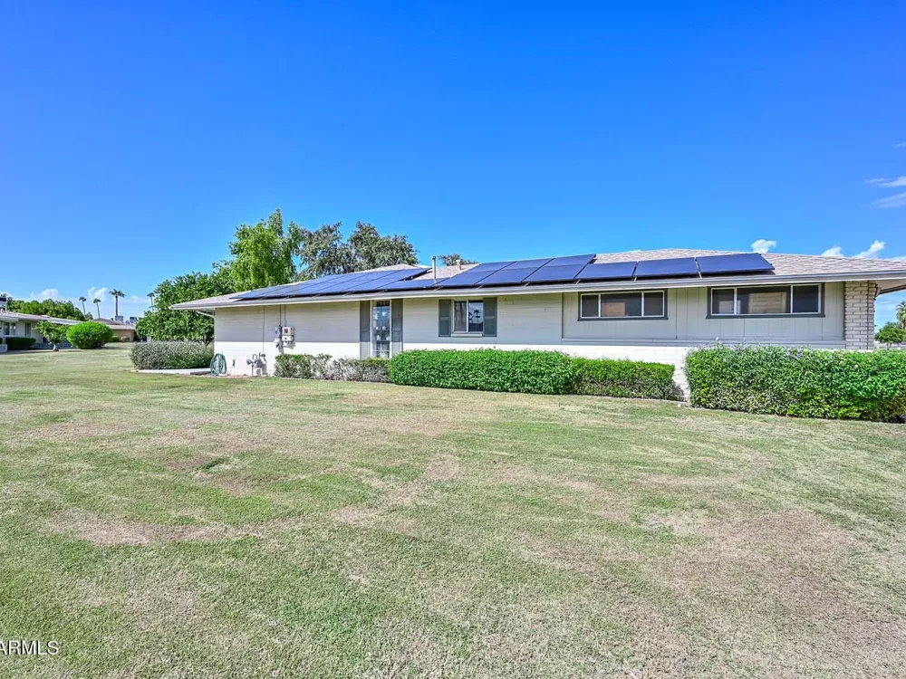 AZ Resort Style Living at its Best! Beautifully Updated Gemini home in Sun City w/OWNED SOLAR. This 2 bedroom 2 bath home has new flooring throughout, a fully updated kitchen with new cabinets, Stainless Steel appliances and a quartz waterfall edge countertop. Bathrooms have been fully updated w/tiled shower, new tub surround & modern finishes. New water Heater and New Washer/Gas Dryer, New Water Heater & Water SoftenerSpacious 2 car garage & inside laundry room w/additional storage. New IPT sewer lining system with 20 yeqr warranty.Enjoy the proximity to Mountain View Rec Center, Amphitheater, Golf Club& More!.