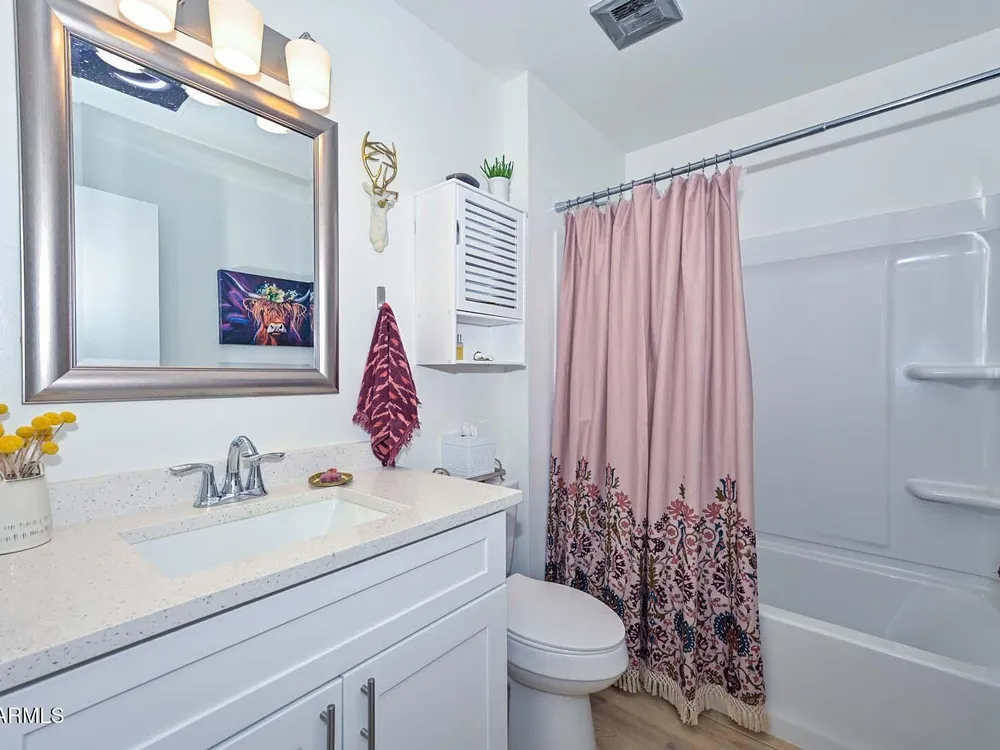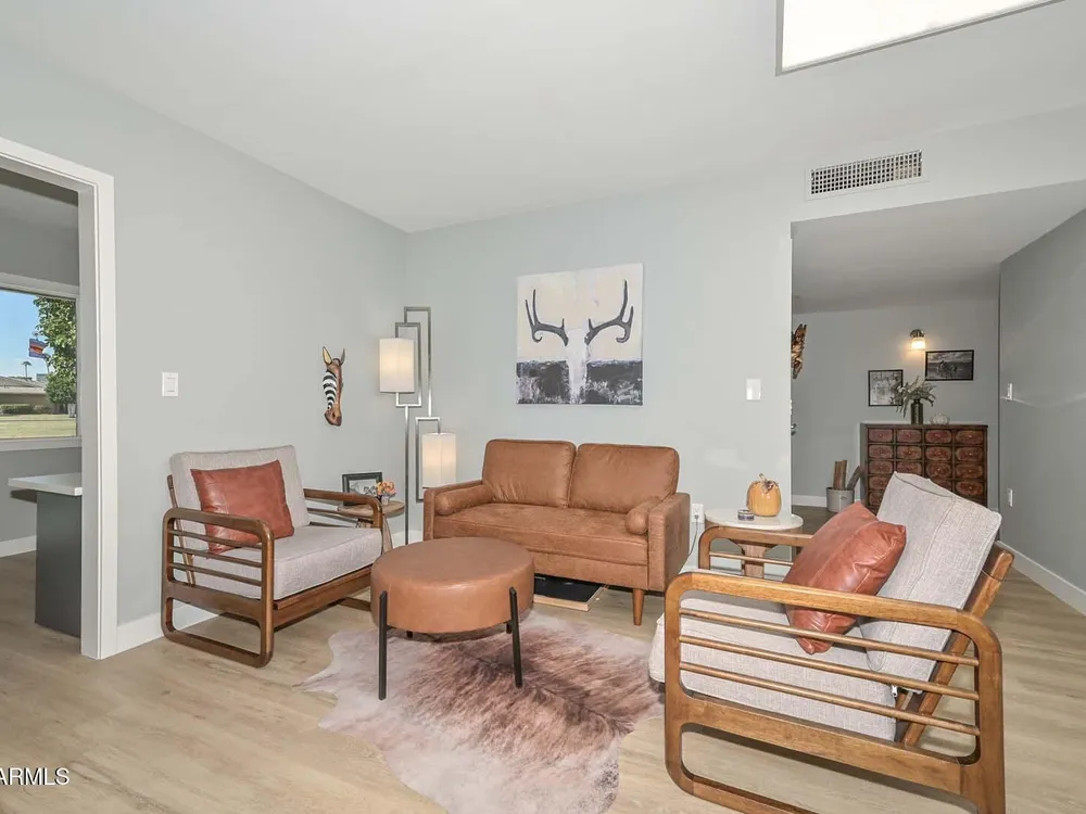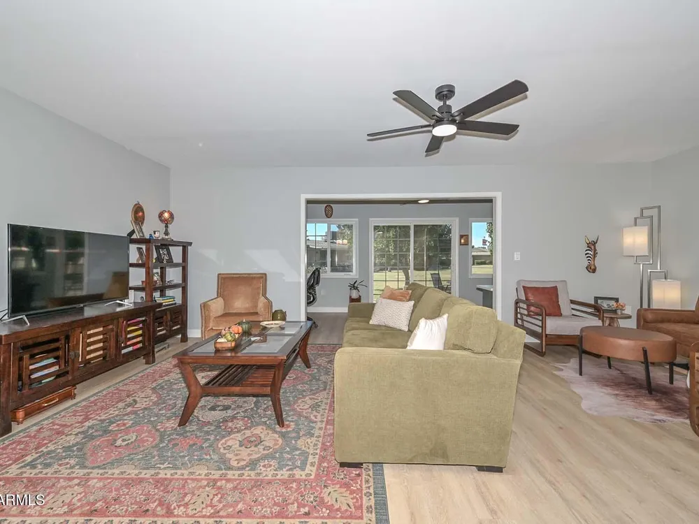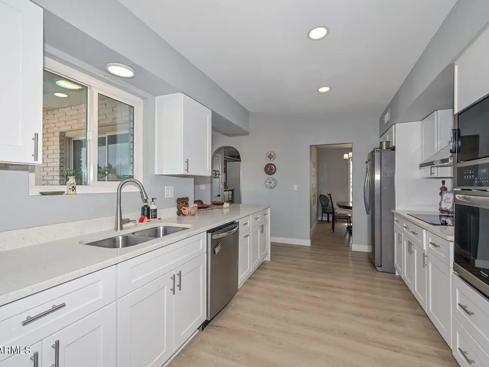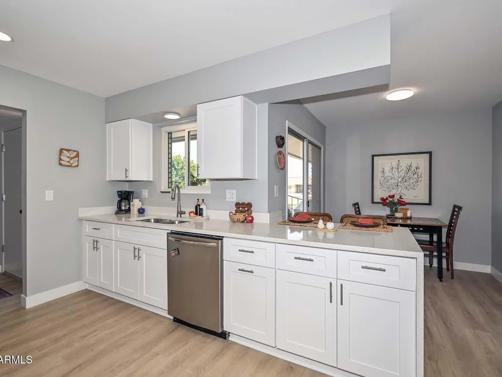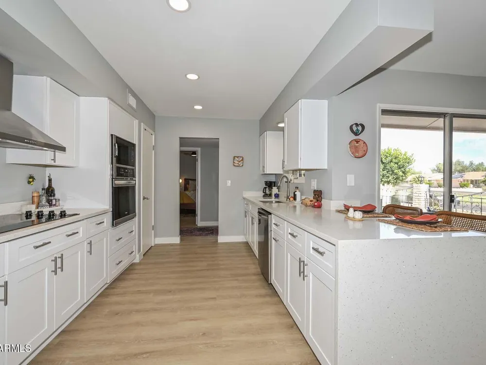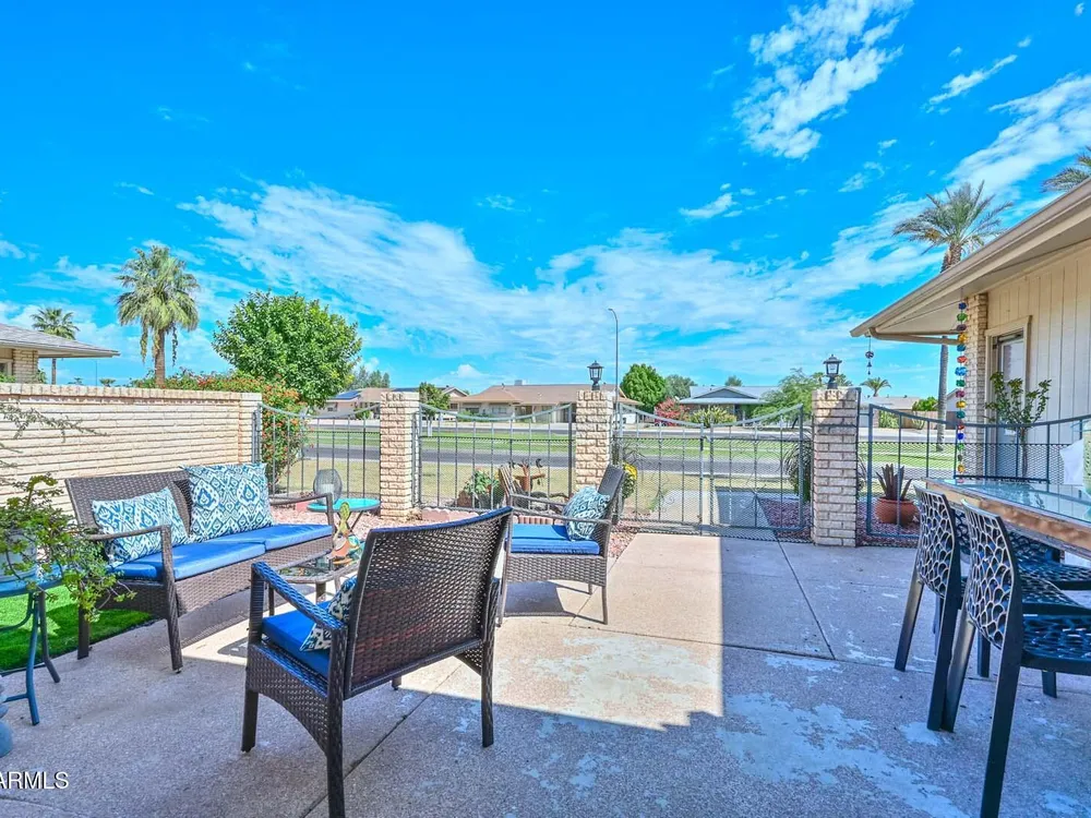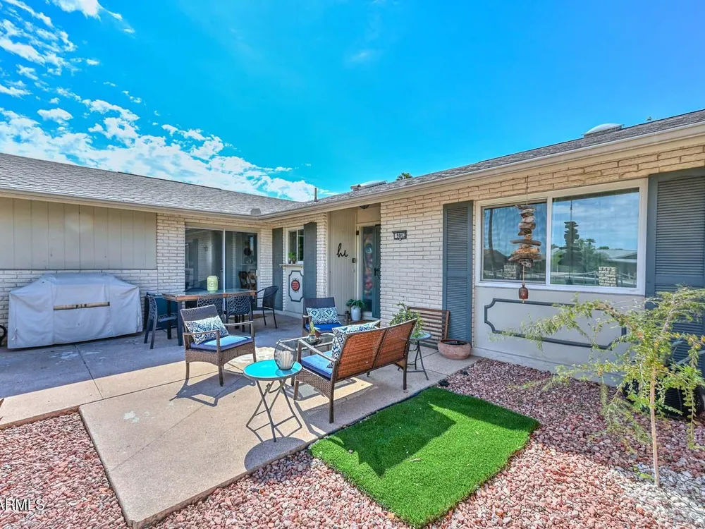 AZ Resort Style Living at its Best! Beautifully Updated Gemini home in Sun City w/OWNED SOLAR. This 2 bedroom 2 bath home has new flooring throughout, a fully updated kitchen with new cabinets, Stainless Steel appliances and a quartz waterfall edge countertop. Bathrooms have been fully updated w/tiled shower, new tub surround & modern finishes. New water Heater and New Washer/Gas Dryer, New Water Heater & Water SoftenerSpacious 2 car garage & inside laundry room w/additional storage. New IPT sewer lining system with 20 yeqr warranty.Enjoy the proximity to Mountain View Rec Center, Amphitheater, Golf Club& More!.
