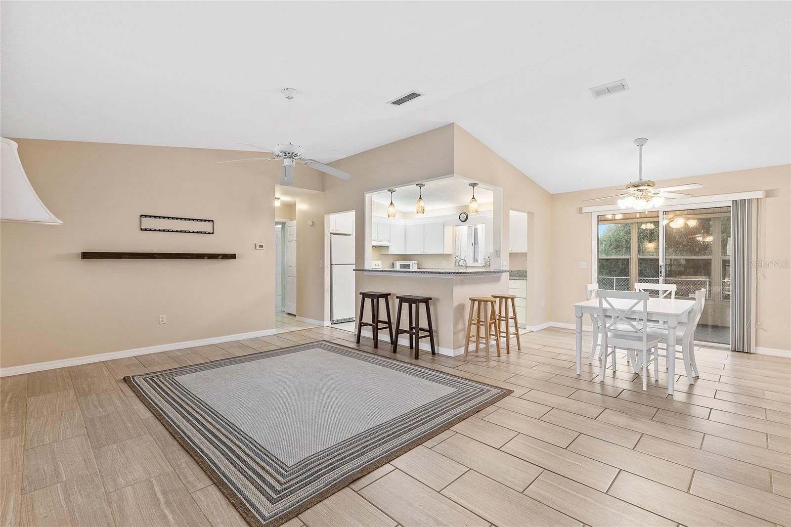 NEW ROOF (2023), NEW HVAC (2016)! YOUR LUCKY DAY!! The beauty is back on the market due to contingency. Located in the Desirable 55+ Gated Golf Community of SPRUCE CREEK SOUTH, this 3 Bedroom, 2 Bath HOLLY floor plan offers a comfortable and low-maintenance lifestyle, just minutes from THE VILLAGES, Florida. With convenient access to shopping, dining, medical facilities, and all the community amenities, this property has everything you need for easy living. Inside, the home features HIGH Ceilings and a practical layout. The kitchen is updated with GRANITE countertops, while TILE PLANK Flooring in the Living and Dining areas provides durability and style. All wet areas are TILED, and the Carpeted bedrooms add a cozy touch. The Florida room, equipped with a floor cooling unit, extends your living space, making it a great spot to relax year round. The BACKYARD is FENCED, perfect for pets, and includes a patio slab ready for grilling or outdoor seating. A decorative painted driveway adds charm, and the inside laundry room makes daily chores simple and convenient. Recent updates, including NEW ROOF 2023 and HVAC SYSTEM 2016, ensure peace of mind and energy efficiency. This home is located in a golf cart-friendly community, making it easy to access all nearby amenities. Whether you’re looking for an active lifestyle or a quiet retreat, this property is a great choice. Don’t wait, schedule your showing today and start your Florida retirement the right way!