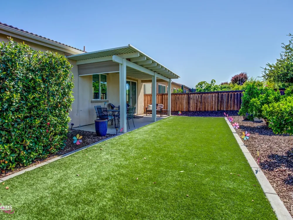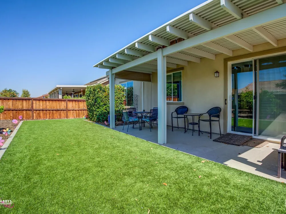 Resort-Style Living in a Premier 55+ Community. Welcome to Four Seasons where luxury, comfort, and vibrant community living come together. The Clubhouse features an array of top-tier amenities including a fitness center, sparkling pool, spa, salon, library, coffee shop, movie theater, on-site restaurant, and a calendar full of activities to enjoy year-round. The home has a spacious and functional layout with two bedrooms plus a dedicated office perfect for remote work or hobbies. The split-wing floor plan ensures privacy, while the extra-large laundry room adds convenience and storage space. The master suite has two walk-in closets and a spa-like bath with temperature-controlled features, creating a private retreat within your home. Throughout the living areas, plantation shutters provide elegance and energy efficiency. Step outside to a low-maintenance backyard designed for relaxation, including artificial turf and fruit trees for enjoying sunny days without the upkeep. Don't miss out