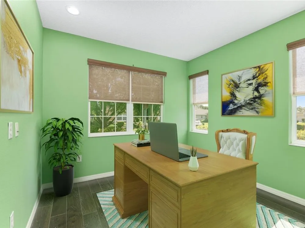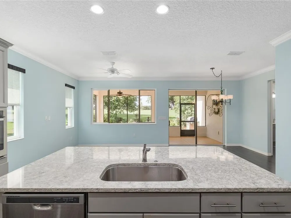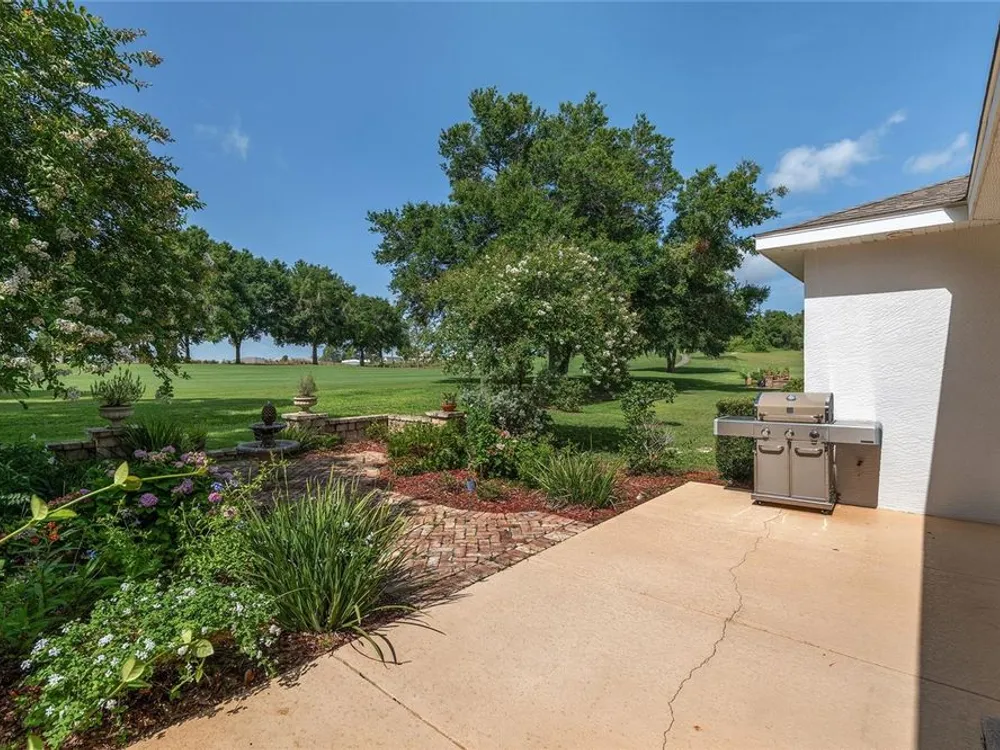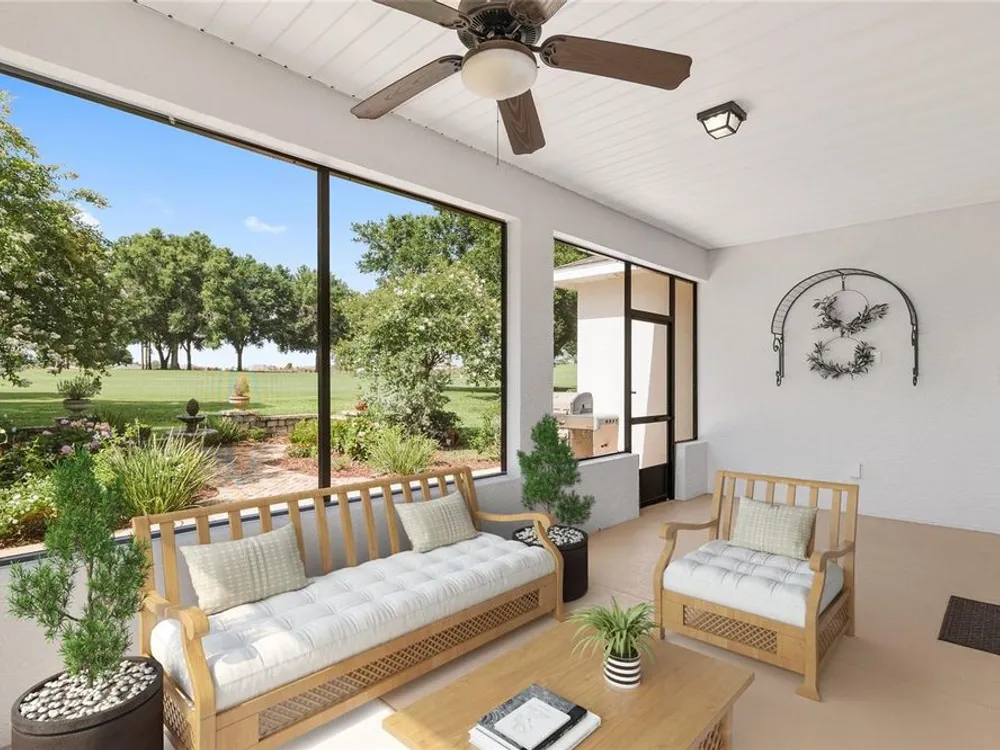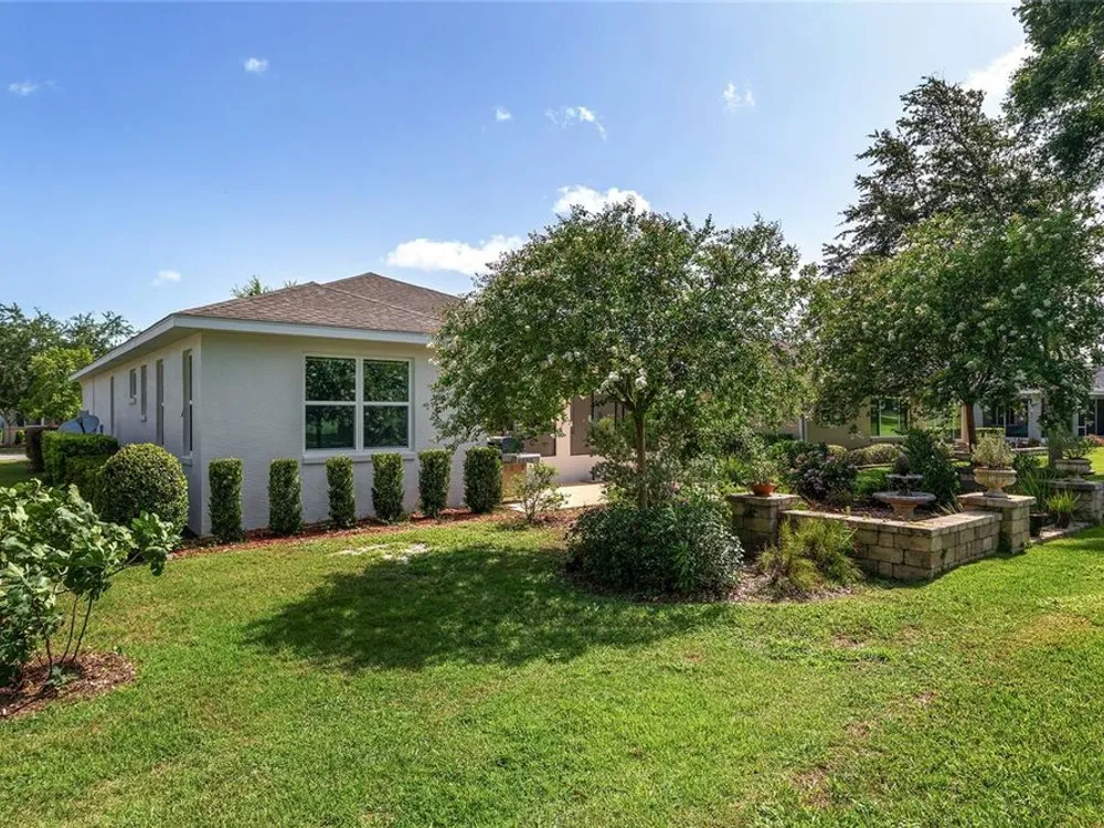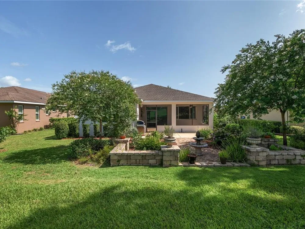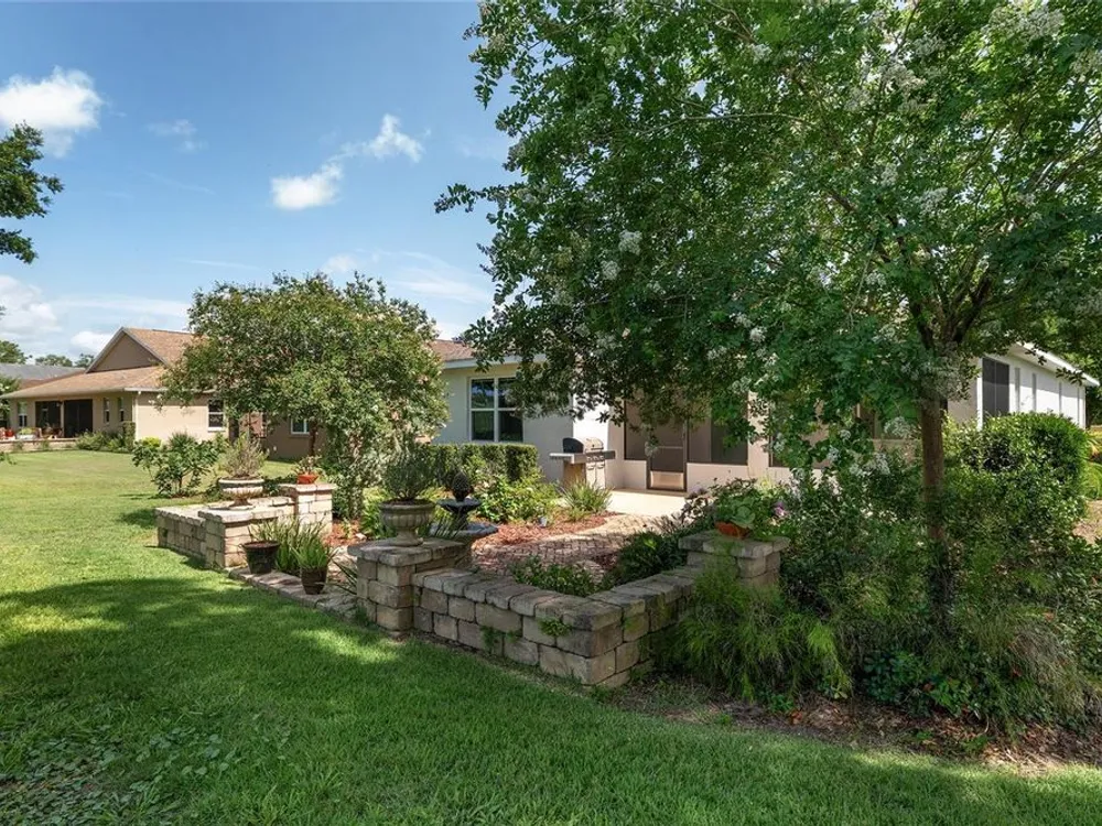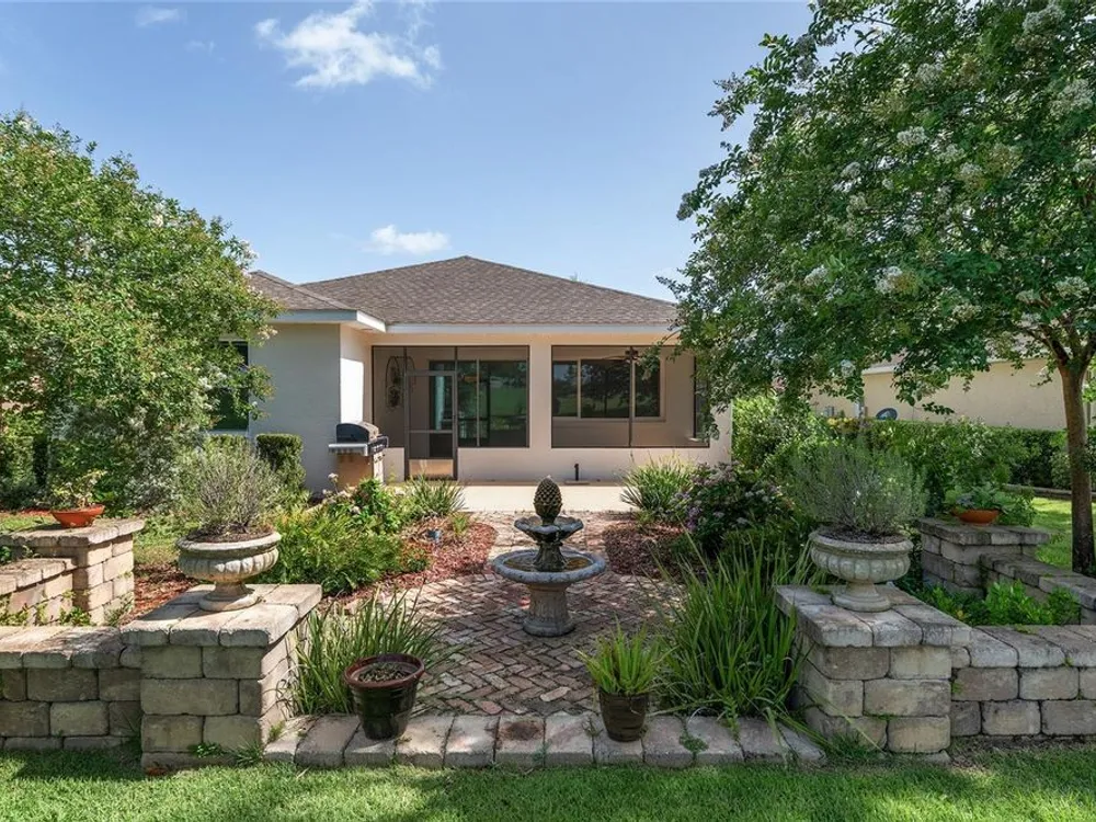 Life's too short for yard work - unless it's efforts to enhance your own beautiful garden! Welcome to this delightful 2 bedroom, 2 bath home in the community of On Top of the World. Your lawn will be maintained by the community - opening up time for you to pursue your interests and goals. Bonus: there's an actual bonus room, perfect for tackling hobbies, running a home office, or finally writing that novel. Sip something cold on the screen lanai, soak up the sunshine on the patio, and enjoy front-row views of the golf course - without ever having to chase a golf ball. The star of this backyard is a lovely garden surrounding a herringbone patterned, Chicago brick patio with a fountain - a setting that practically begs for Instagram photos. This is Florida living with style (and fun). The only thing missing is you! This home has lots of upgrades from the standard Marina Model - an expanded floor plan with 3 extra feet in the garage in depth, plus the bonus room; engineered hardwood floors throughout the home; quartz countertops and tile backsplash in the kitchen; 5 burner, gas cooktop; soft close built-in linen and closet organizers in the primary suite; 'drop zone' built-ins components as you enter the home from the garage; custom light fixtures; water softener; and so much more that you need to see in person! Exterior Paint 2024. Tankless Gas Rinnai Hot Water Heater 2025.