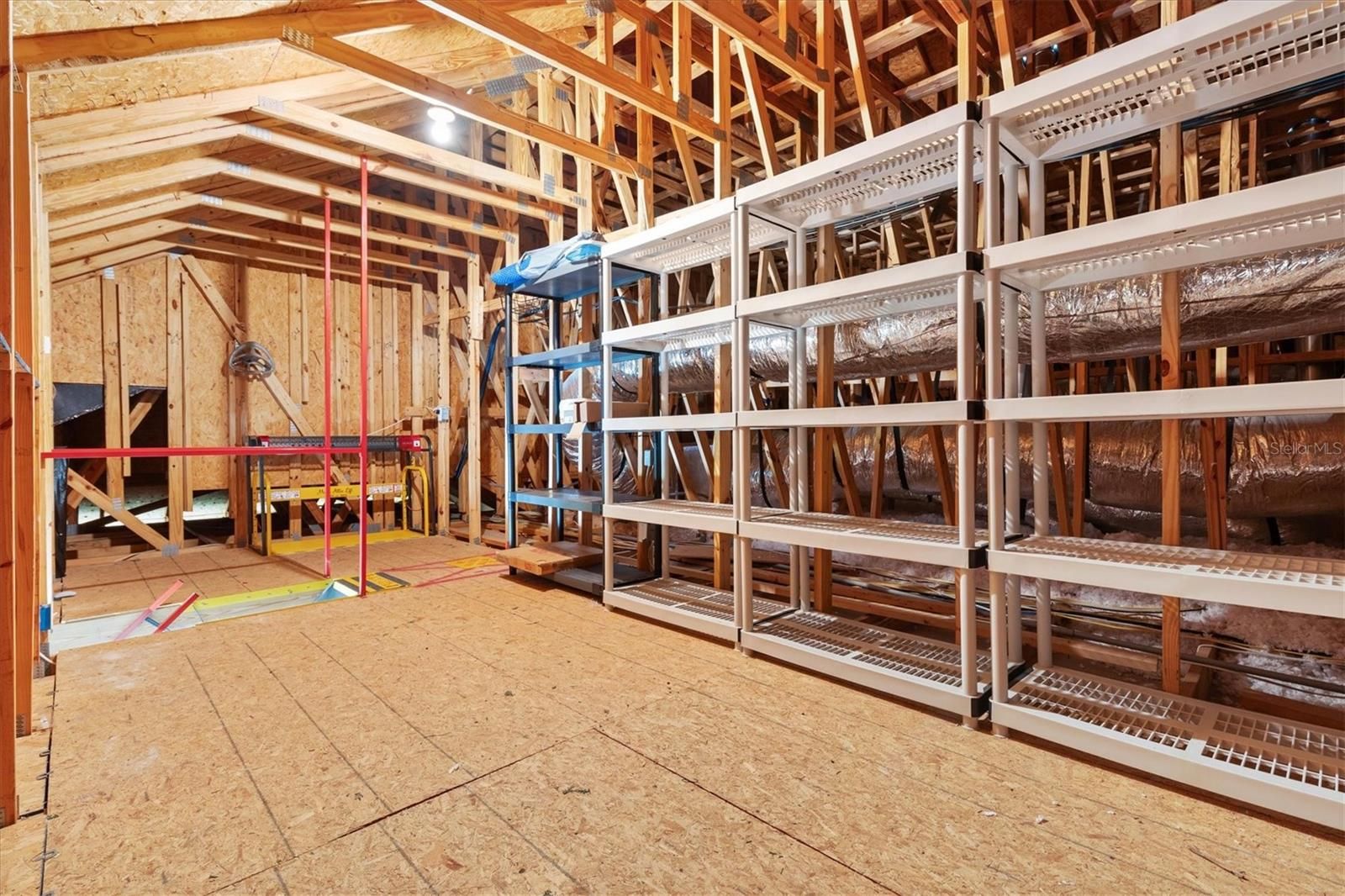 STUNNING 4 BEDROOM, 3 BATH, ST. JOHNS PREMIER Home in the highly sought after OSCEOLA HILLS AT SOARING EAGLE PRESERVE on a LARGE CORNER LOT with an AMAZING SCREENED FRONT PORCH, BIRDCAGE & INGROUND SPA, 6 SOLAR TUBES, STUNNING ENCLOSED LANAI under heat/air w/mini split, 10ft ceilings, perfect for entertaining. 2 CAR GARAGE + TANDEM GOLF CART GARAGE w/CHATTAHOOCHEE RIVER ROCK garage floors and WAIT UNTIL YOU SEE THE MAJIC STAIRS/ATTIC LIFT AND ALL THE STORAGE IN THE ATTIC! The STACKED STONE band on the home, upgraded landscaping w/stacked stone curbing and decorative dormers all add beauty to this spectacular home. Beautiful LEADED GLASS FRONT DOOR with sidelites lead you into the DIAGONAL TILED foyer with ARCHES adorned with CROWN MOLDING into a formal living room with 11 ft TRAY CEILINGS w/DOUBLE CROWN MOLDING + INDIRECT LIGHTING. Off the kitchen is a STUDY/FORMAL DINING area that has beautiful BUILT-INS w/lighted cabinet and each individual shelf has its own outlet. (Owner displayed Department 56 Villages on each shelf) The spacious kitchen has beautiful cabinets, QUARTZ countertops, MARBLE tile backsplash, under cabinet lighting, STAINLESS appliances w/DOUBLE WALL OVENS, smooth top electric COOKTOP, 2 pantries with pull-out shelving and an ISLAND with extra storage cabinets/drawers + pullouts & pendant lighting. The living room opens with STACKBACK sliding glass doors out to the ENCLOSED LANAI under HEAT/AIR with beautiful WOOD LOOK PLANK TILE flooring. Off the lanai is a COURTYARD and a BEAUTIFUL BIRDCAGE with an INGROUND SPA that was added in 2018. The primary bedroom has LAMINATE flooring; PLANTATION SHUTTERS, TRAY ceiling with DOUBLE CROWN trim, FRENCH DOORS w/blind inserts that open out to the lanai, EN-SUITE BATH w/granite counters, split vanities, TILE ROMAN shower, private toilet room w/pocket door + a window, huge WALK-IN CLOSET w/CUSTOM BUILT-INS (perfect shoe lovers closet) including VALET RODS and a pull out MIRROR that swivels. On the other side of the home there are 3 LARGE guest rooms separated by a pocket door for privacy and 2 bathrooms. All rooms have laminate flooring and large closets (ALL CLOSETS HAVE LIGHTS) Bedroom 2 has an EN-SUITE BATH w/GRANITE counters, toilet, linen closet and a TILED shower + easy access to the birdcage & inground spa. Bedroom 3 has CUSTOM BUILT TWO TWIN MURPHY BEDS, cabinets, desk area, drawers and lighting + the closet also has CUSTOM BUILT-INS. Bedroom 4 has upgraded ceiling fan and a large closet. The 3rd bathroom has granite counters w/a tub/shower combo. The laundry room is in the hallway leading out to the garage; has a sink, extra cabinetry, FRONT LOAD washer and dryer, and a large double door STORAGE closet. And if you appreciate GARAGE SPACE, you’re going to love this one; approximately 903 sq ft with CHATTAHOOCHEE RIVER ROCK flooring + STORAGE CABINETS/drawers and the amazing MAJIC STAIRS + MAJIC ATTIC LIFT. Wait until you see all the EXTRA STORAGE in the ATTIC! If you are wanting more than the spa, there is ROOM FOR A POOL on the side of the home PLUS there is also room in the existing birdcage to remove the spa and add a pool. (sketches in photos & attachments) This is a beautiful PREMIER home in a convenient location in an enclave of PREMIER homes close to BURNSED & ROHAN Recreation Centers as well as multiple golf courses, dining and shopping centers and more all nearby! Don't forget to watch the video and COME SEE THIS LOVELY HOME TODAY!