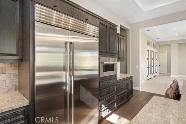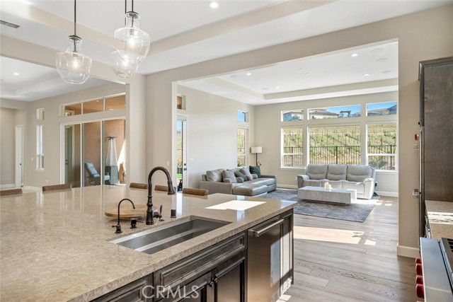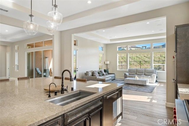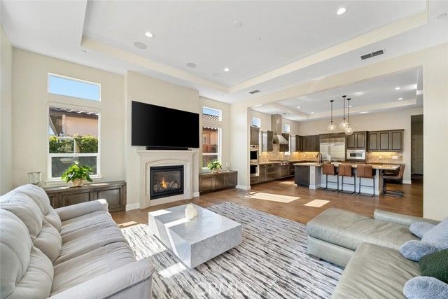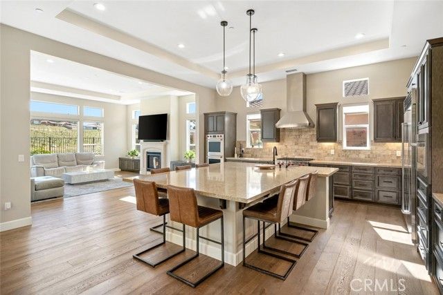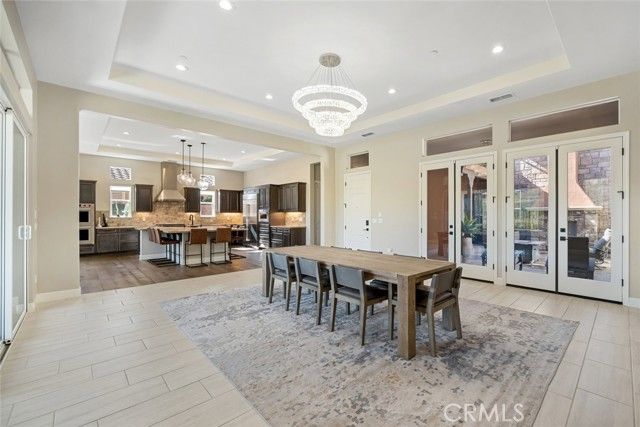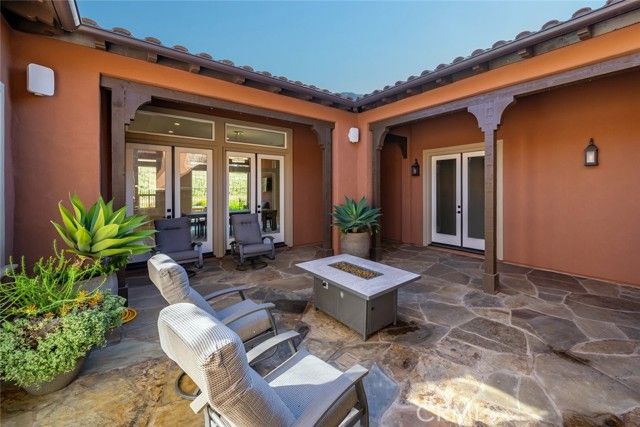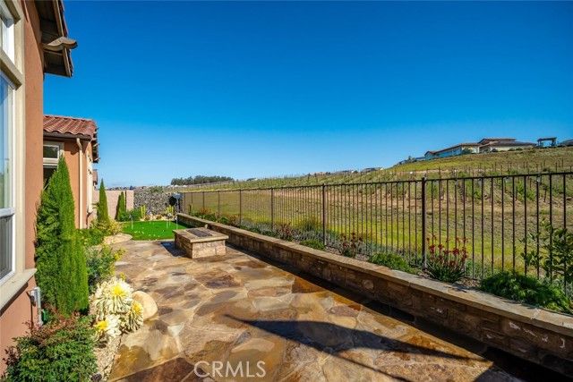 Welcome to this majestic, nearly new, Dolcetto Estate home with a spectacular 180-degree vineyard view, surrounded by stunning flagstone hardscape and lush landscaping. Built in 2022, this magnificent 3 bedroom + Den, 3.5 bath home offers 3,563 sq. ft. of impeccably designed living/entertaining space where no expense was spared. Enter through the enclosed courtyard with beautiful flagstone floors, a stone fireplace and French doors on three sides - it’s sure to be your private “go-to” place to relax. Inside, you’re met with sweeping views through the many windows/transom windows and the rolling wall of glass which unite the inside with the great outdoors - the backyard features a built-in fire pit, barbecue/kitchen and your own private putting green - this is Trilogy living at it’s best! And, that’s just the tip of the iceberg - starting with the impeccably designed culinary kitchen, you’ll love the rich raised-panel cabinetry with multiple pot drawers, top-of-line Wolf stainless steel appliances, including double wall ovens and a 6-burner gas cooktop with industrial stainless hood, Sub-Zero built-in refrigerator, gorgeous quartz countertops and large T-shaped island with modern pendant lighting and seating for 8, plus a walk-in pantry - it’s a chef’s dream! Surrounding the kitchen is a wraparound great room with stone fireplace, built-in lower cabinets and a spacious dining space with a striking custom chandelier - it’s bright, airy, and the views are outstanding. The private owner’s suite has a super spacious bedroom with custom chandelier, sleek power window shades, sitting area and direct patio access. The master bath is luxury personified - stunning tile shower with wraparound glass enclosure, Roman tub, separate dual sinks, vanity, linen storage, plus a massive, customized walk-in closet with convenient pass-thru to the laundry. Beyond are two guest bedrooms, both with walk-in closet and full en-suite bathroom with shower and exceptional finishes. Additionally, there’s an office, powder room, upgraded ceramic tile flooring, A/C, SOLAR, and a 3-car tandem garage with showroom epoxy floors, and upper storage rack. You may never want to leave this gorgeous home, but when you do you’ll have access to all the resort style amenities Trilogy has to offer.