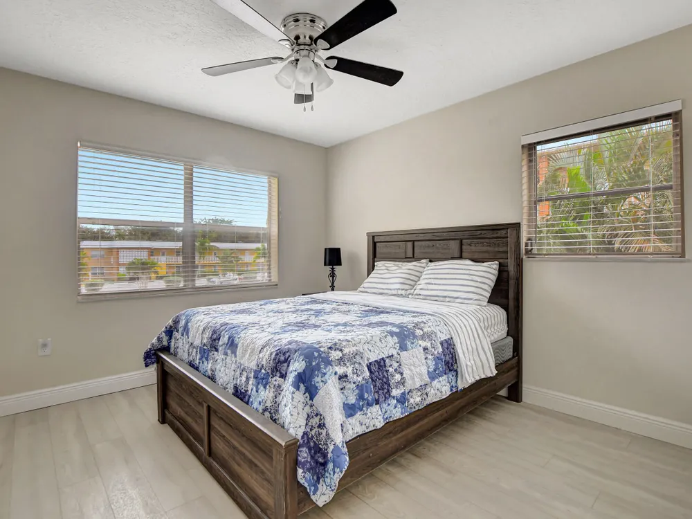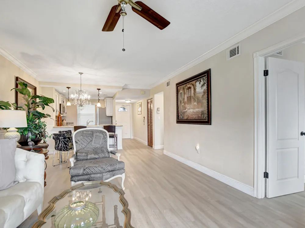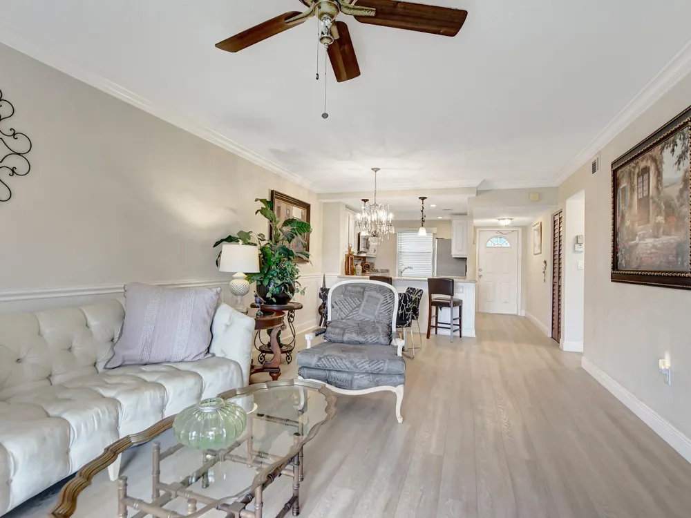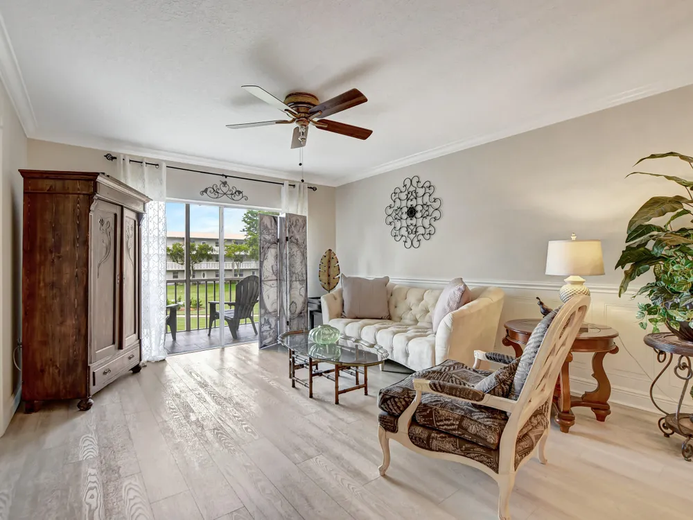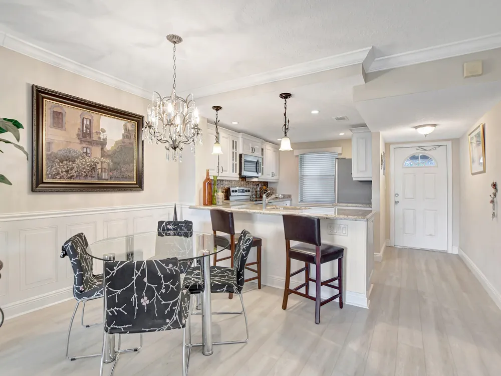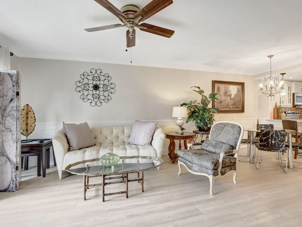 Magnificently updated and maintained 2 bedroom, 2 bath corner unit overlooking the lake and garden beyond. State of the art saltwater pool. Pristine condition, gourmet kitchen with granite counters and stainless steel appliances. Kitchen open to the spacious great room with dining and living room areas. Screened patio where you can relax and enjoy the lake and garden beyond. Primary bedroom features a lavish bathroom with side pantries, shower and walk in closet. Wall of closets in beautifully appointed guest room. New AC March 2025, new floors Fall 2024, no carpet. Steps away from the community pool. Close to major roadways, shopping and 20 minutes to the beaches. Community is an active 55+ community. This exceptional unit is waiting for you! Florida living at its best!