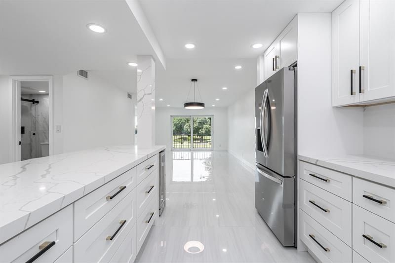 ABSOLUTELY THE MOST BEAUTIFUL, NEWLY & TOTALLY RENOVATED 2BR/2BA third floor apartment in Hollybrook. ALL NEW AMENITIES INCLUDE: Wide Open Kitchen featuring large quartz island, SS Appliances, wine Cooler, Quartz Countertops, Raised Ceiling, Bright LED Lighting & more. Washer/Dryer inside. Large ceramic tile throughout. Impact Windows, slider and door. Recreation Lease PAID IN FULL. PGA 11th fairway and water views. Amenities include Restaurant, Billiard Room, Bbq/Picnic Area, Clubhouse, Courtesy Bus, Exercise Room, Heated Pool, Library, Putting Green, Sauna, Shuffleboard, Tennis, Pickle Ball, Vehicle Wash Area, Electric Car Charging Station. Close to shopping, dining & highways. 15 min. to the beach. ABSOLUTELY THE VERY BEST!