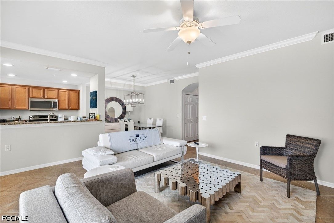 This beautiful second-floor "Bellini" condo in the subdivision of Giaveno offers a rare chance to own a piece of paradise in the prestigious TPC bundled golf community of Treviso Bay for a great value under $500k. Designed for both relaxation and entertaining, the interior is tastefully appointed with crown molding, tile on the diagonal in the main living areas, and plush carpet in the bedrooms. The gourmet kitchen serves as the heart of the home, featuring stainless steel appliances, granite countertops, a cozy eat-in nook with lake views, and a long breakfast bar perfect for hosting guests. Whether you are enjoying the western sunset views from the living room or relaxing on your screened lanai, you will be surrounded by the serene sights and sounds of the lake and preserve. The coveted TPC Golf Membership is deeded to this unit, granting you year-round access to the championship 18-hole course along with an array of world-class amenities. Residents enjoy a resort lifestyle that includes a 55,000 square foot grand clubhouse, a state-of-the-art fitness center with professional trainers, a full-service spa, and a large resort-style pool complete with an outdoor bar and grill. For those who stay active, the community also features eight lighted tennis courts, pickleball & bocce ball. This property is being sold turnkey with all furnishings included, making it a seamless transition into one of Naples' most exciting bundled golf communities.