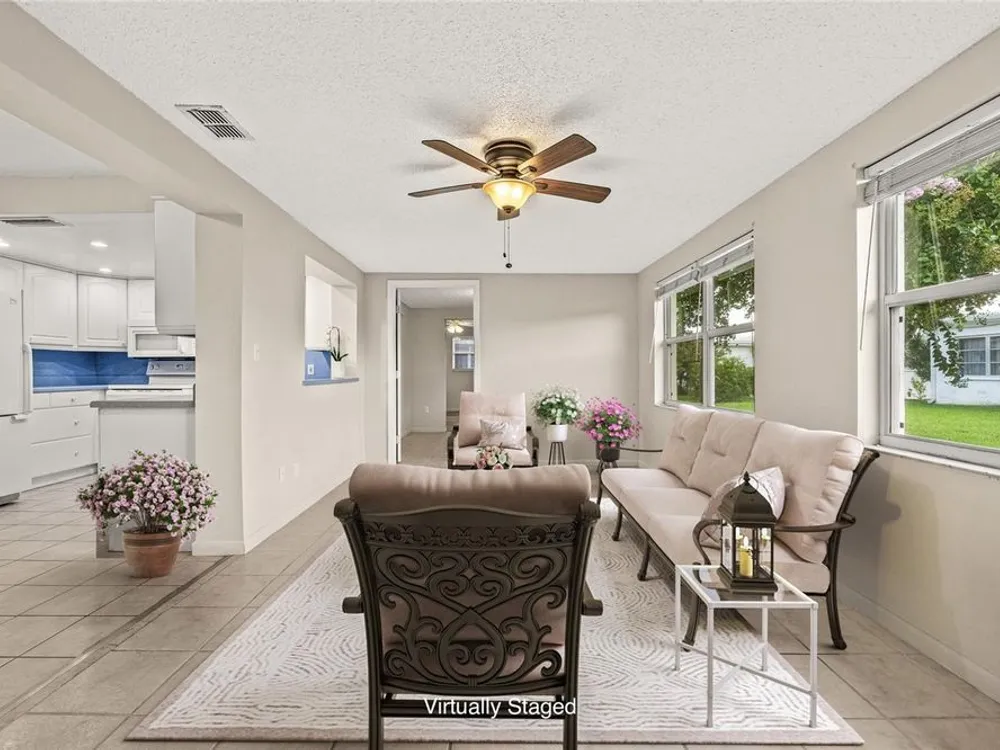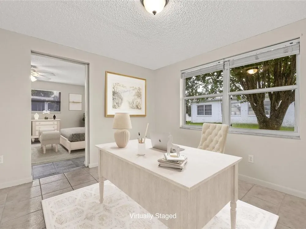 Welcome to the highly sought-after Mainlands of Tamarac (Unit 3) – a 55+ community where comfort, convenience, and an active lifestyle come together. This desirable Eden Model offers 2 bedrooms PLUS a den, 2 full bathrooms, and a light-filled interior designed for both everyday living and entertaining. The thoughtful layout features a dining room off the kitchen, a Florida room, and an enclosed front lanai – providing plenty of space for relaxing. (Prefer a more open layout? The wall between the dining area and office can easily be removed.) The kitchen offers abundant built-in storage along with a newer stove and dishwasher. The home also includes a 1-car attached garage with laundry hookups, a remote-operated garage screen, and a widened driveway for extra parking. The entrance door, front screen, and primary bathroom door are all wider than standard for added accessibility. Recent updates offer peace of mind, including a 2024 roof replacement (covered by the association) and a water heater just three years old. Enjoy low-maintenance living with a monthly fee under $500, covering roof and exterior maintenance, exterior painting, cable, internet, sewer, water, trash, and basic lawn care – including sprinkler maintenance and lawn spraying. As a Mainland’s resident, you’ll have access to fantastic amenities: pool, clubhouse, shuffleboard, and a variety of community activities – all just steps from the Mainlands Golf Course and minutes to shopping, dining, airports, and more. Here, you’ll enjoy the comfort of single-family living with all the ease of condo ownership.