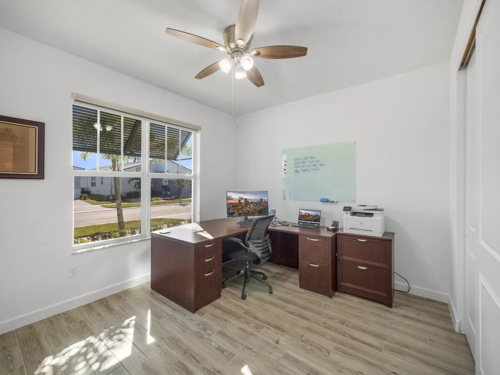 Discover modern living at its finest with this stunning TRUE 3-bedroom, 2.5-bathroom single family home located in the highly desirable Telaro at Tradition community on one of the LARGEST lots with plenty of room to build your pool or running space for your pets. It's conveniently located close to the community back gate, too! This home features $50,000 worth of premium upgrades done by owners POST closing in addition to the builder upgrades that elevate its style, functionality, and comfort. The outdoor courtyard is enclosed by a durable metal fence, offering privacy and charm. An FPL Home Delivery Surge Protector ensures enhanced safety. The garage has been upgraded with sleek flooring and custom closets, providing ample storage and organization.