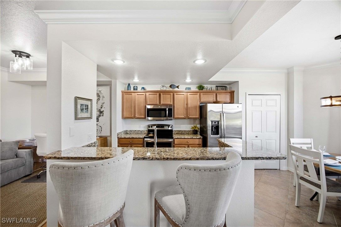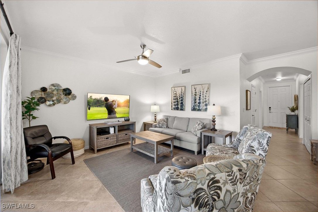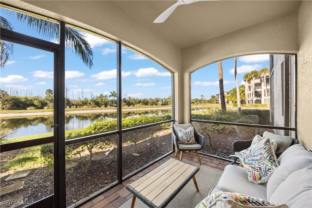 Discover effortless resort-style living in this Bellini-model, 2-bedroom, 2-bath condominium located in the desirable Giaveno neighborhood of Treviso Bay in Naples, Florida. Offered turnkey furnished with tasteful decor and accessories, this first-floor residence is ideal as a full-time home, seasonal retreat, or investment property. The open-concept floor plan features tile flooring throughout the main living areas and carpeted bedrooms for added comfort. The kitchen flows seamlessly into the dining and living spaces, creating a welcoming environment for relaxing or entertaining. Step out onto the lanai and enjoy northwest exposure with tranquil views of the lake and preserve, offering beautiful sunsets and a peaceful, private setting. A standout feature of this property is the deeded TPC Treviso Bay GOLF MEMBERSHIP, granting owners full access to the championship TPC golf course—a rare and highly sought-after benefit that significantly enhances both lifestyle and value. Additional conveniences include a radon mitigation system, deeded storage closet outside the front door and assigned parking in a detached carport, along with the ease of first-floor living—no stairs and quick access to community amenities. Treviso Bay is a premier, gated community known for its world-class amenities, including golf, resort-style pools, fitness center, spa, tennis, pickleball, dining, and an active social calendar—all just minutes from downtown Naples beaches, shopping, and dining. Seller changed out all plastic water supply valves with metal connections as required by the condo association and replaced the hot water heater in 2025. This is a fantastic opportunity to own a golf-deeded, turnkey condo in one of Naples’ most popular resort communities.
