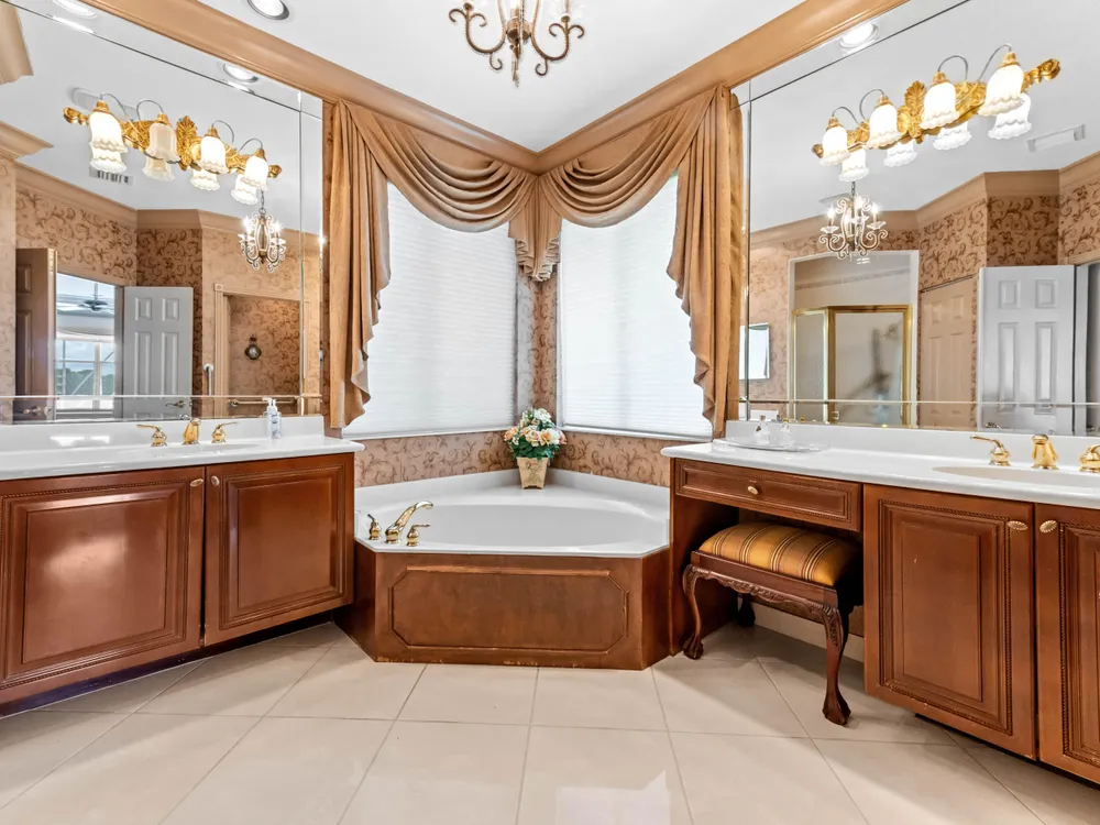 - Bar, Built-in Shelving, Closet Cabinetry, Cathedral Ceiling(s), Custom Mirrors, Entry Level Living Area, Entrance Foyer, Kitchen Island, Pantry, Garden Tub/Roman Tub, Split Bedrooms, High Ceilings, Walk-In Closet(s), Home Office, Family Room, Florida Room, Great Room, Storage, Family/Dining Room, Eat-in Kitchen, Separate/Formal Dining Room, Snack Bar, Blinds, Plantation Shutters, Dual Sinks, Primary Downstairs, Separate Shower, Bathtub, Storm Shutters