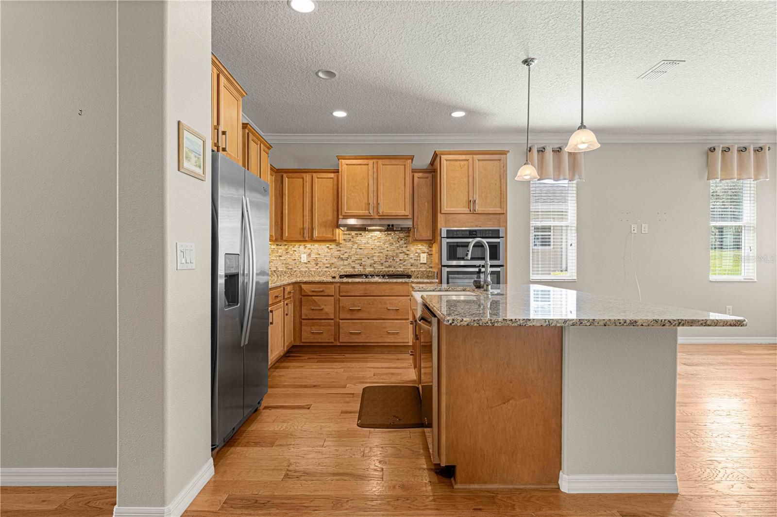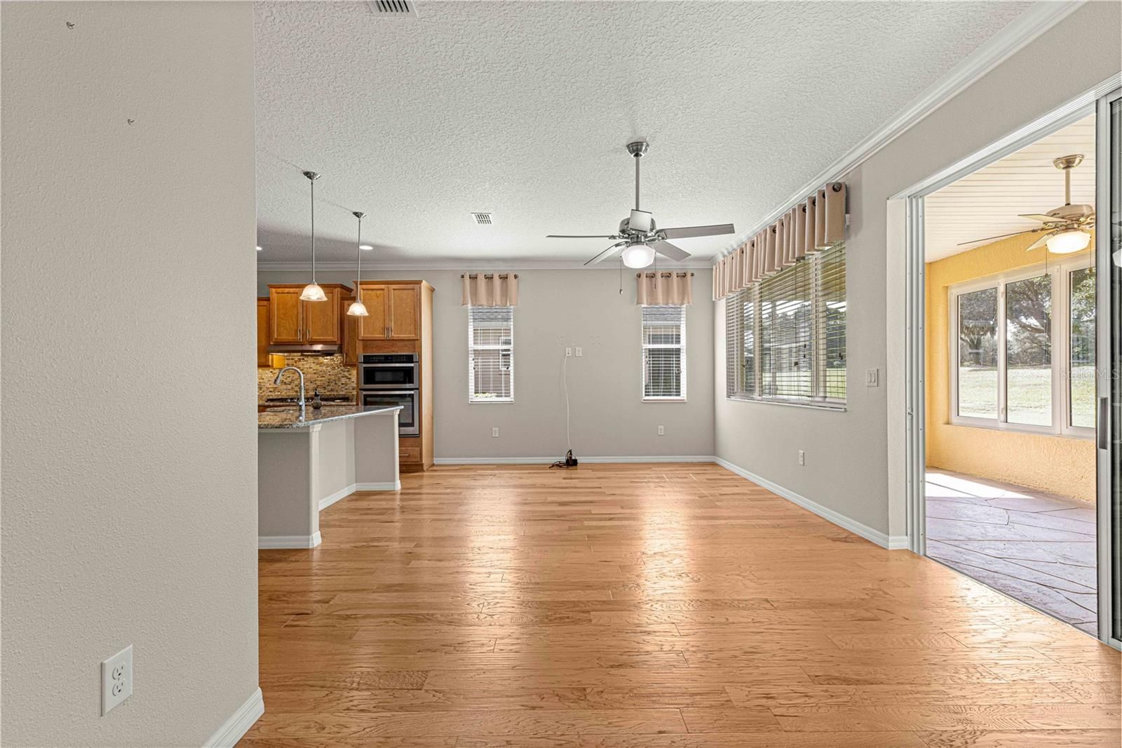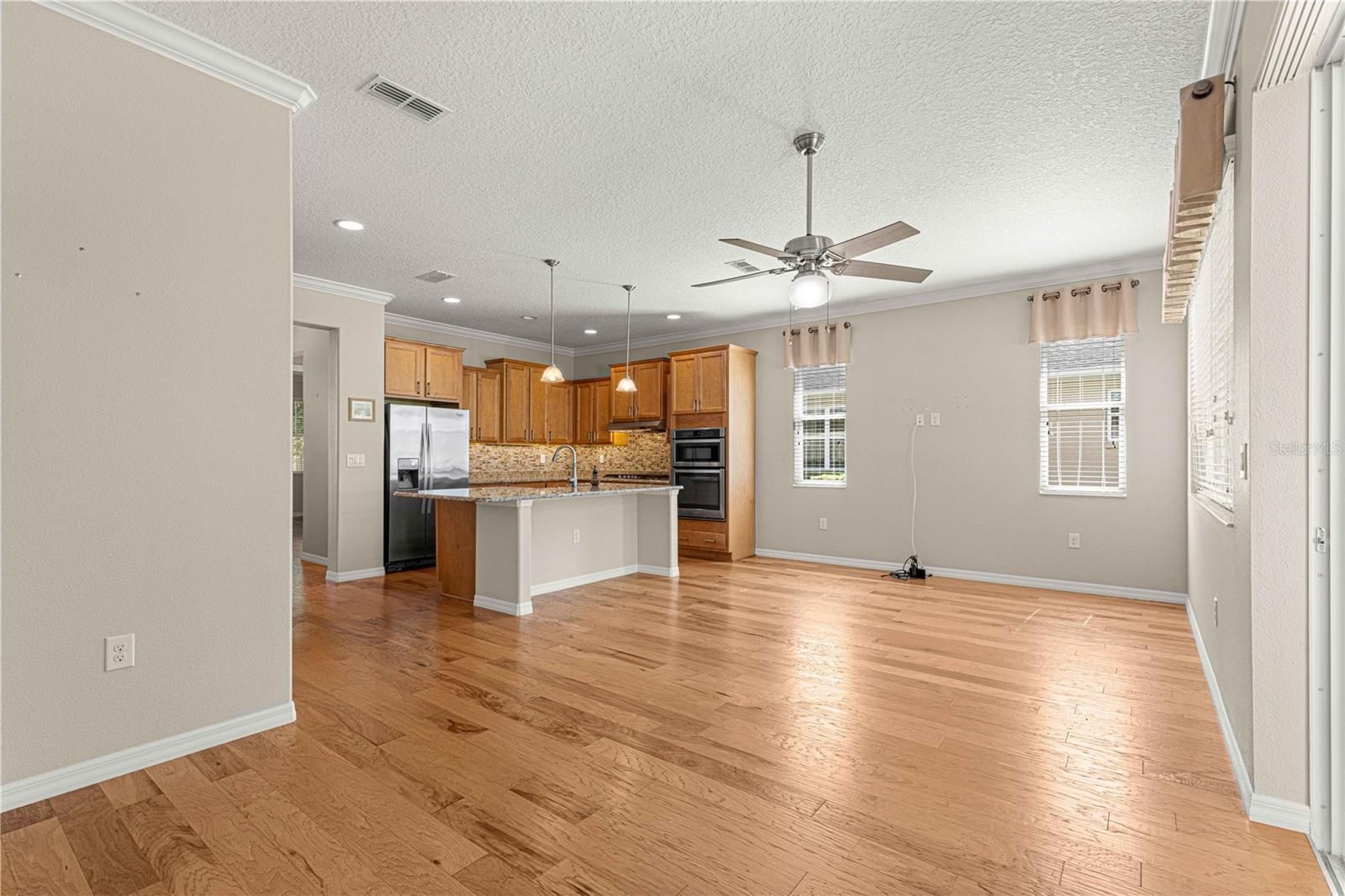 NEW PRICE > FLORIDA GOLF COURSE LIVING AT IT FINEST ON THE 15TH HOLE OF "THE LINKS" PRIVATE GOLF COURSE! UPGRADED Marina Model Single Family Home located in the Windsor West Neighborhood of On Top of the World, a Gated Golf Community 55+ in Ocala FL. EXTERIOR OF HOME PAINTED IN NOV. 2024!! From the moment you arrive and see the upgraded stacked stone front, stamped concrete driveway and walk, you feel the pride of ownership! Enter via the beautiful, beveled glass entry door stepping into a large foyer. To the left is the guest bedroom/suite with lots of natural light. Notice the upgraded 8 ft interior doors and curved drywall corners – UPGRADES! The large guest/hall bath has a custom tiled tub surround and comfort height toilet. Notice the Engineered Hardwood Floors throughout! Step into the Open Concept Gourmet Kitchen & Great Room and LOOK OUT AT THE VIEW! The gourmet kitchen includes a deep farmhouse sink, pan drawers, upgraded cabinetry, under cabinet lighting, spacious pantry, wall microwave & oven, GAS drop in range, pull-outs in under cabinets, island with seating, and granite counters. The adjacent Great Room has plenty of living space and table space. Step out into the finished Florida Room with upgraded everything – windows, flooring, etc., AND MORE VIEWS! The primary bedroom is in the back right of the home for privacy, a true Split-Bedroom plan! The primary bedroom has tons of natural light AND MORE GOLF COURSE VIEWS! The primary en suite bath is massive including a double sink vanity, step/roll in shower with custom tile, separate water closet with custom cabinetry, 18" ceramic tile on the diagonal, and access to the large walk-in closet. The owners chose the upgrade option to have entrance to the walk-in closet from the large laundry room. The laundry room is off the kitchen with more storage and laundry sink. The 2-car garage with epoxy floor has custom cabinetry and another laundry sink. Enjoy the stamped concrete patio in back for those perfect golf course views! Whole house water filter. This home has natural gas for cooking, heating, water heating, and dryer. The monthly HOA fee includes DCM Basic Internet, roof repair, exterior painting every seven years, exterior maintenance and insurance, landscaping, trash & recycling, 24/7 monitored gates and all the amenities that OTOW has to offer; three pools (2 outside & 1 inside & another under construction), two state of the art fitness centers, pickleball, billiards, archery range, corn hole, bocce ball, tennis, shuffleboard, horse shoes, remote control flying field and race cars, 175+ clubs, woodworking shop (extra fee), library, and much, much more! A golf cart community with access to three shopping centers. SELLERS INDICATE THAT CLOSING IN FLORIDA ROOM ADDED 212 MORE SQ FT FOR TOTAL OF 1667 SQ. FT.