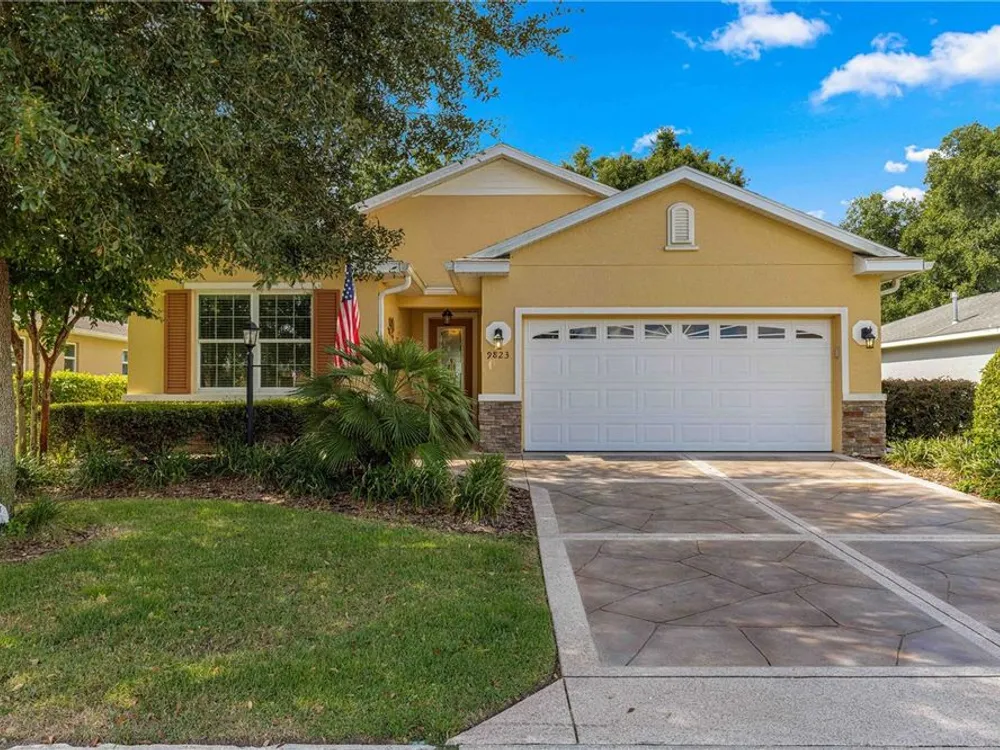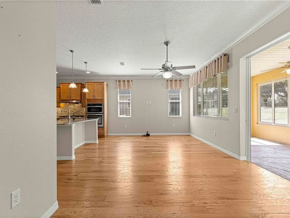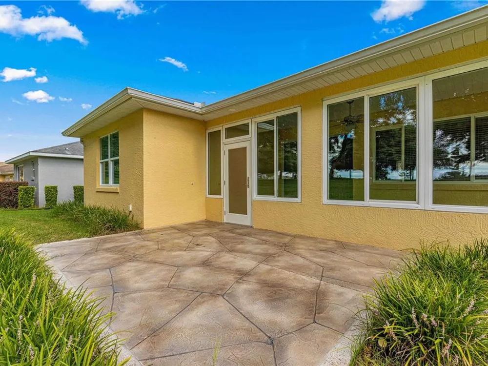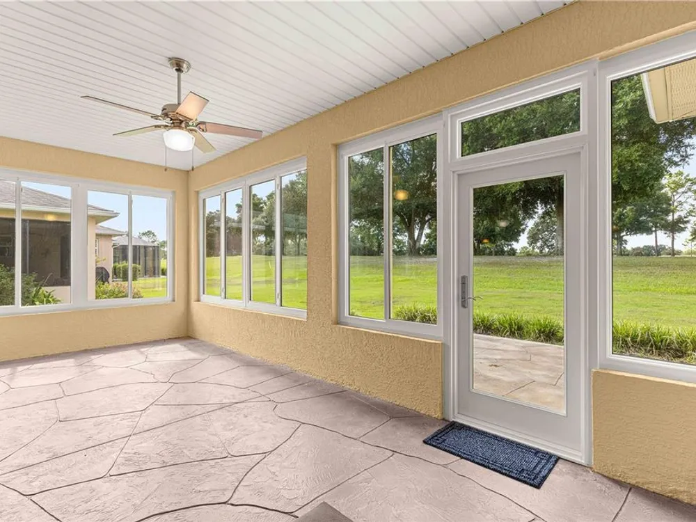 PRICE REDUCTION & SELLERS WILL CREDIT BUYERS 6 MONTHS HOA FEES WITH ACCEPTABLE OFFER! FLORIDA GOLF COURSE LIVING AT IT FINEST ON THE 15TH HOLE OF "THE LINKS" PRIVATE GOLF COURSE! UPGRADED Marina Model Single Family Home located in the Windsor West Neighborhood of On Top of the World, a Gated Golf Community 55+ in Ocala FL. EXTERIOR OF HOME PAINTED IN NOV. 2024!! From the moment you arrive and see the upgraded stacked stone front, stamped concrete driveway and walk, you feel the pride of ownership! Enter via the beautiful, beveled glass entry door stepping into a large foyer. To the left is the guest bedroom/suite with lots of natural light. Notice the upgraded 8 ft interior doors and curved drywall corners – UPGRADES! The large guest/hall bath has a custom tiled tub surround and comfort height toilet. Notice the Engineered Hardwood Floors throughout! Step into the Open Concept Gourmet Kitchen & Great Room and LOOK OUT AT THE VIEW! The gourmet kitchen includes a deep farmhouse sink, pan drawers, upgraded cabinetry, under cabinet lighting, spacious pantry, wall microwave & oven, GAS drop in range, pull-outs in under cabinets, island with seating, and granite counters. The adjacent Great Room has plenty of living space and table space. Step out into the finished Florida Room with upgraded everything – windows, flooring, etc., AND MORE VIEWS! The primary bedroom is in the back right of the home for privacy, a true Split-Bedroom plan! The primary bedroom has tons of natural light AND MORE GOLF COURSE VIEWS! The primary en suite bath is massive including a double sink vanity, step/roll in shower with custom tile, separate water closet with custom cabinetry, 18" ceramic tile on the diagonal, and access to the large walk-in closet. The owners chose the upgrade option to have entrance to the walk-in closet from the large laundry room. The laundry room is off the kitchen with more storage and laundry sink. The 2-car garage with epoxy floor has custom cabinetry and another laundry sink. Enjoy the stamped concrete patio in back for those perfect golf course views! Whole house water filter. This home has natural gas for cooking, heating, water heating, and dryer. The monthly HOA fee includes DCM Basic Internet, roof repair, exterior painting every seven years, exterior maintenance and insurance, landscaping, trash & recycling, 24/7 monitored gates and all the amenities that OTOW has to offer; three pools (2 outside & 1 inside & another under construction), two state of the art fitness centers, pickleball, billiards, archery range, corn hole, bocce ball, tennis, shuffleboard, horse shoes, remote control flying field and race cars, 175+ clubs, woodworking shop (extra fee), library, and much, much more! A golf cart community with access to three shopping centers. SELLERS INDICATE THAT CLOSING IN FLORIDA ROOM ADDED 212 MORE SQ FT FOR TOTAL OF 1667 SQ. FT.