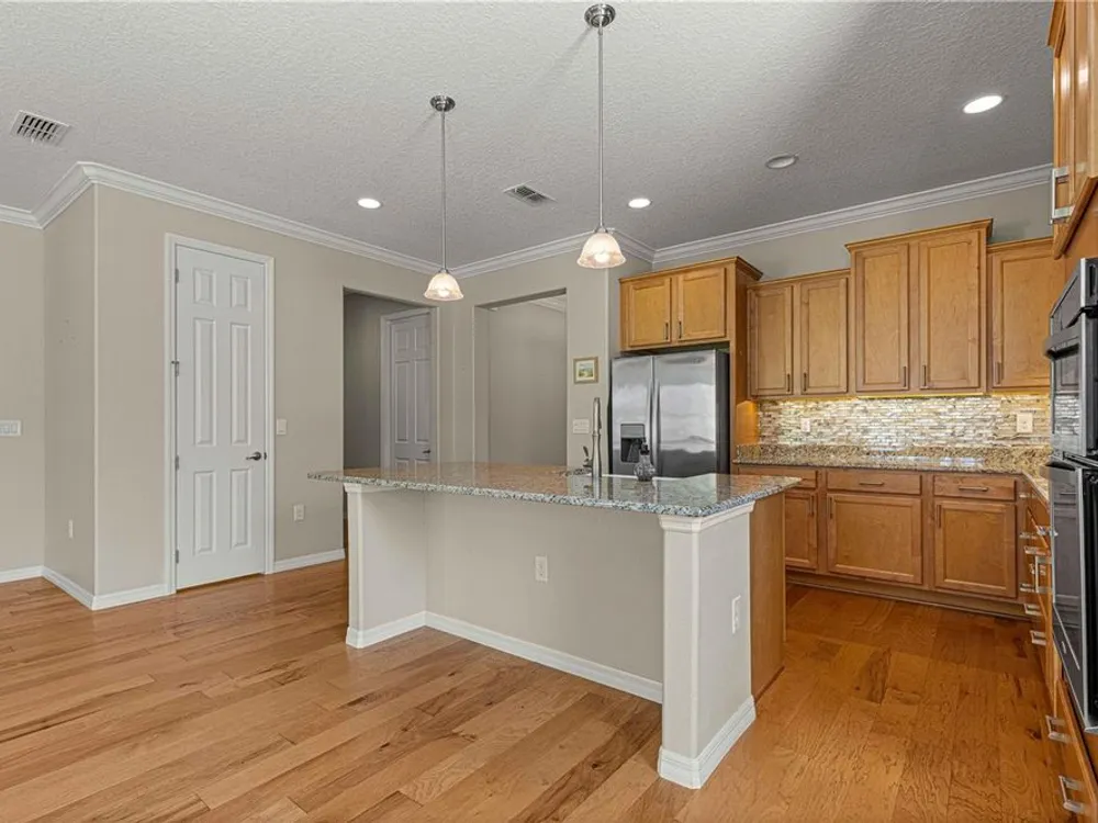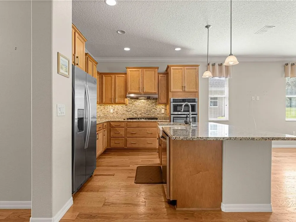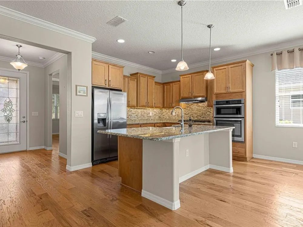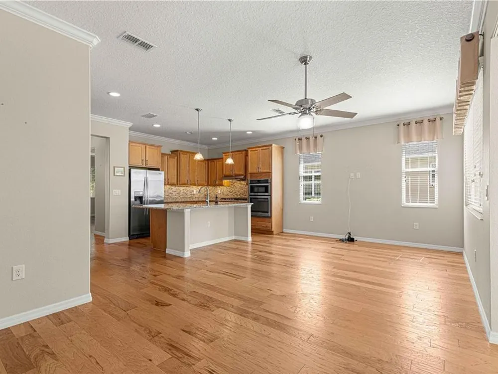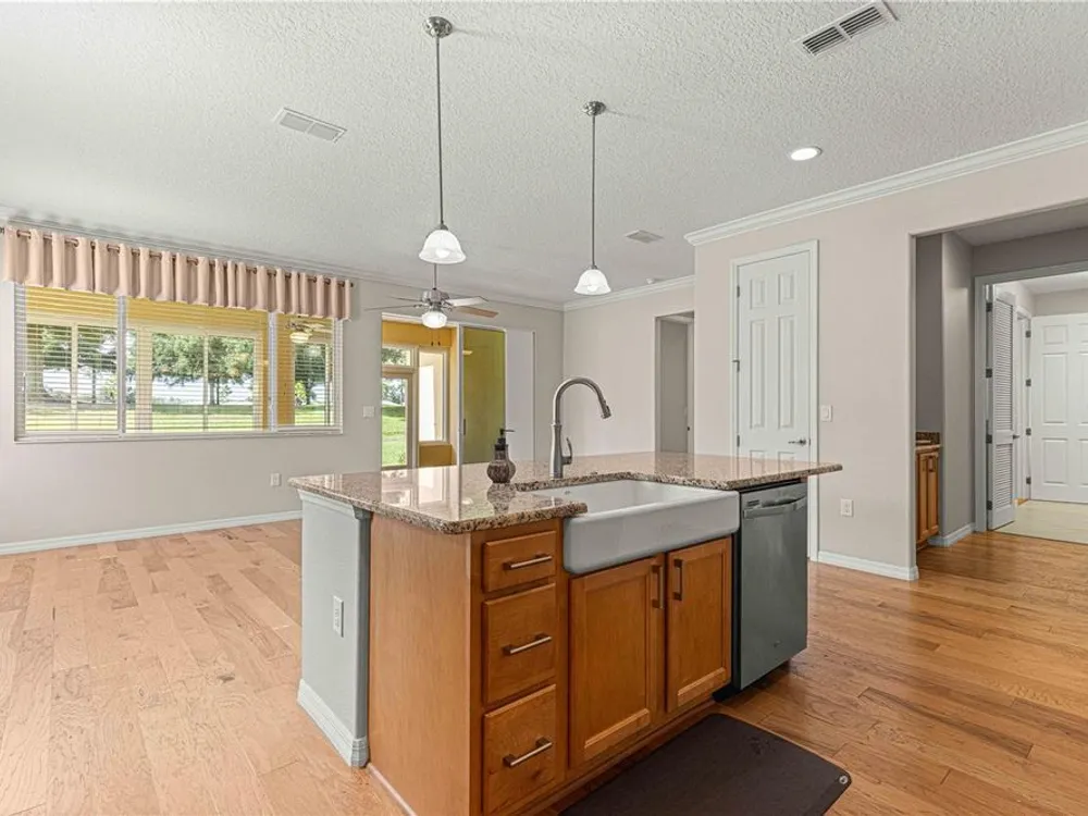 PRICE REDUCTION & SELLERS WILL CREDIT BUYERS 6 MONTHS HOA FEES WITH ACCEPTABLE OFFER! FLORIDA GOLF COURSE LIVING AT IT FINEST ON THE 15TH HOLE OF "THE LINKS" PRIVATE GOLF COURSE! UPGRADED Marina Model Single Family Home located in the Windsor West Neighborhood of On Top of the World, a Gated Golf Community 55+ in Ocala FL. EXTERIOR OF HOME PAINTED IN NOV. 2024!! From the moment you arrive and see the upgraded stacked stone front, stamped concrete driveway and walk, you feel the pride of ownership! Enter via the beautiful, beveled glass entry door stepping into a large foyer. To the left is the guest bedroom/suite with lots of natural light. Notice the upgraded 8 ft interior doors and curved drywall corners – UPGRADES! The large guest/hall bath has a custom tiled tub surround and comfort height toilet. Notice the Engineered Hardwood Floors throughout! Step into the Open Concept Gourmet Kitchen & Great Room and LOOK OUT AT THE VIEW! The gourmet kitchen includes a deep farmhouse sink, pan drawers, upgraded cabinetry, under cabinet lighting, spacious pantry, wall microwave & oven, GAS drop in range, pull-outs in under cabinets, island with seating, and granite counters. The adjacent Great Room has plenty of living space and table space. Step out into the finished Florida Room with upgraded everything – windows, flooring, etc., AND MORE VIEWS! The primary bedroom is in the back right of the home for privacy, a true Split-Bedroom plan! The primary bedroom has tons of natural light AND MORE GOLF COURSE VIEWS! The primary en suite bath is massive including a double sink vanity, step/roll in shower with custom tile, separate water closet with custom cabinetry, 18" ceramic tile on the diagonal, and access to the large walk-in closet. The owners chose the upgrade option to have entrance to the walk-in closet from the large laundry room. The laundry room is off the kitchen with more storage and laundry sink. The 2-car garage with epoxy floor has custom cabinetry and another laundry sink. Enjoy the stamped concrete patio in back for those perfect golf course views! Whole house water filter. This home has natural gas for cooking, heating, water heating, and dryer. The monthly HOA fee includes DCM Basic Internet, roof repair, exterior painting every seven years, exterior maintenance and insurance, landscaping, trash & recycling, 24/7 monitored gates and all the amenities that OTOW has to offer; three pools (2 outside & 1 inside & another under construction), two state of the art fitness centers, pickleball, billiards, archery range, corn hole, bocce ball, tennis, shuffleboard, horse shoes, remote control flying field and race cars, 175+ clubs, woodworking shop (extra fee), library, and much, much more! A golf cart community with access to three shopping centers. SELLERS INDICATE THAT CLOSING IN FLORIDA ROOM ADDED 212 MORE SQ FT FOR TOTAL OF 1667 SQ. FT.