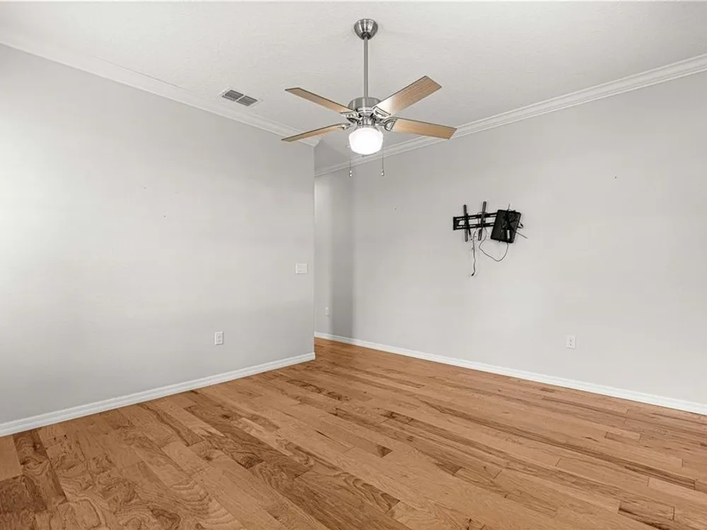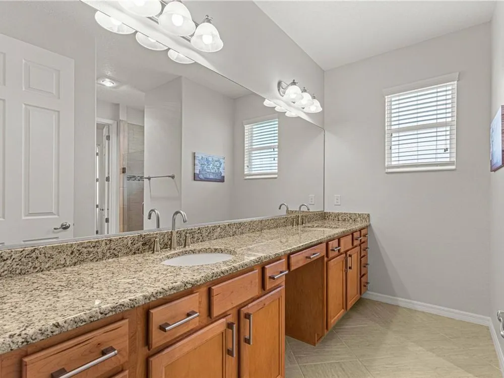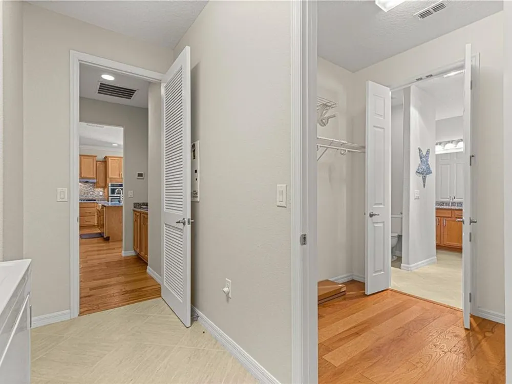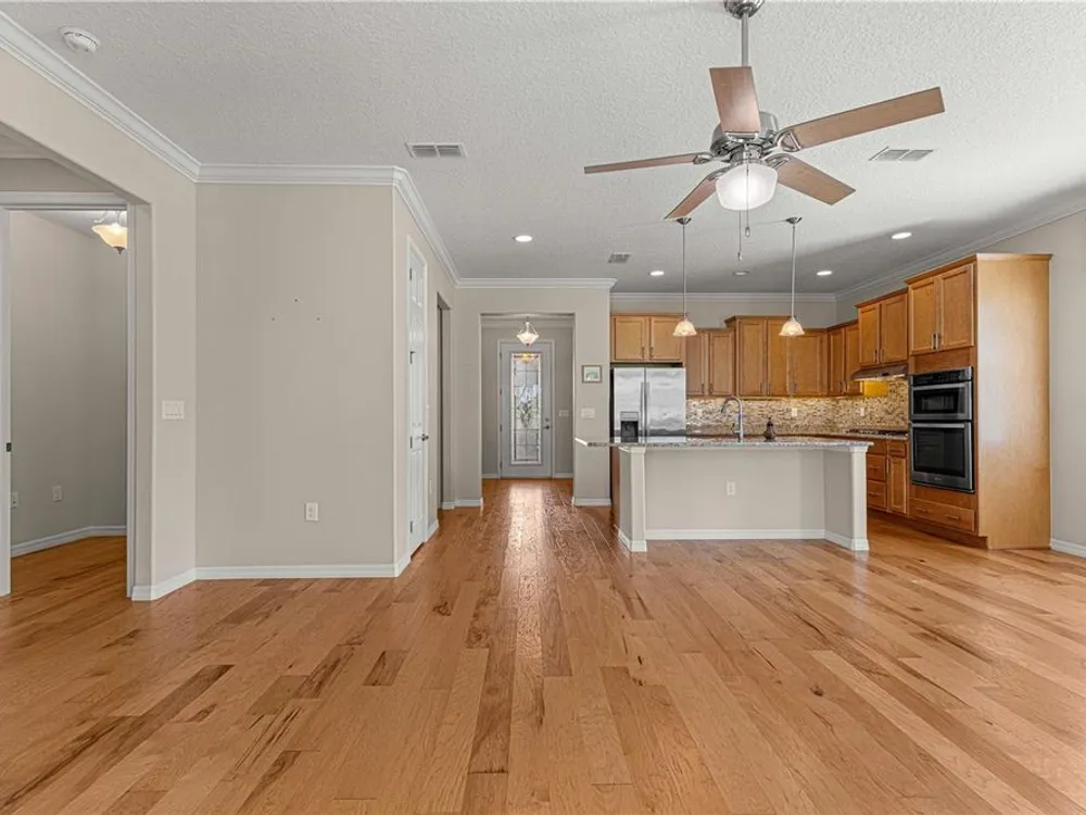 - Attic Ventilator, Built-in Features, Ceiling Fan(s), Crown Molding, Eat-in Kitchen, High Ceilings, Kitchen/Family Room Combo, Open Floorplan, Main Level Primary, Smart Home, Solid-Wood Cabinets, Split Bedrooms, Stone Counters, Walk-In Closet(s), Window Treatments