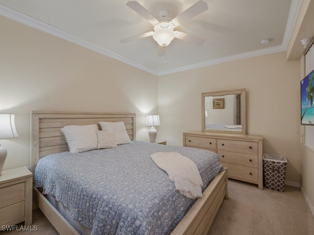 FULL TPC GOLF MEMBERSHIP awaits your Giaveno golf condo nestled in the desirable Treviso Bay neighborhood in Naples just minutes from downtown and the beautiful peaceful beaches of Marco island! Enjoy this beautifully turnkey appointed two bedroom, two bath Bellini floor plan condo with a peaceful water view. The bright foyer welcomes you with crown molding, diagonal tile flooring with upgraded carpet in the bedrooms. The spacious primary bedroom offers two closets, ensuite bath with walk in shower. Your guests can relax in their private bedroom with an adjacent bath. The gourmet turnkey kitchen is equipped with stainless steel appliances, kitchen nook with a desk and pantry. Feel protected from the elements as this condo has hurricane impact glass and doors. Relax on the peaceful lanai privately over looking all the abundant nature of the Rookery Bay preserve and water views!! There is an extra added storage unit for your golf clubs, bikes and beach chairs! The Giaveno neighborhood pool and grill area is located just minutes from this condo. This condo comes with a TRANSFERABLE TPC GOLF MEMBERSHIP to enjoy! This entitles you to play the many TPC designated golf courses around the United States! Treviso Bay's Five Star amenities are second to none boasting the Villa Rilassare amenity center La Bressa resort style pool and bar, professionally staffed fitness center, tennis courts, bocce, pickle ball, basketball and full spa services. The spectacular Treviso Bay TPC Golf clubhouse has two dining rooms, library, TPC pro shop, luxurious locker rooms and a breathtaking terrace over looking hole 9 and 18 to enjoy cocktails or fine dining. Just 5 miles away from Naples beautiful sandy beaches and fabulous 5th Ave shopping and restaurants.