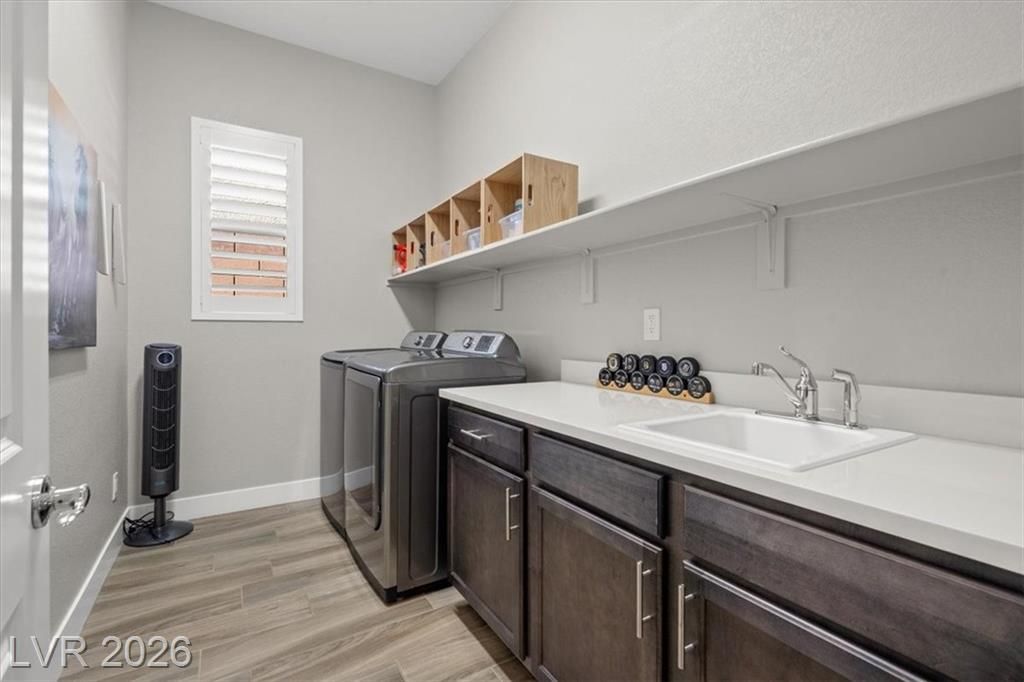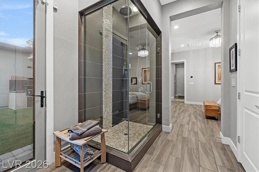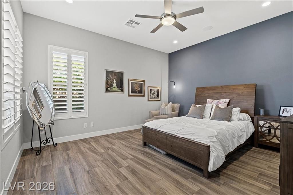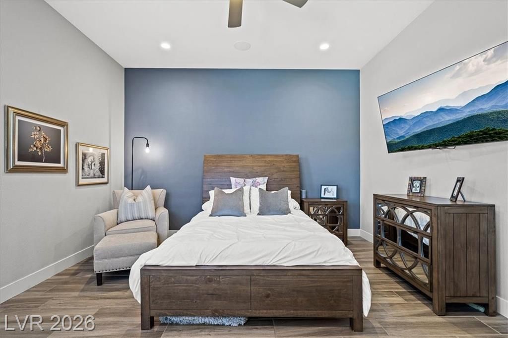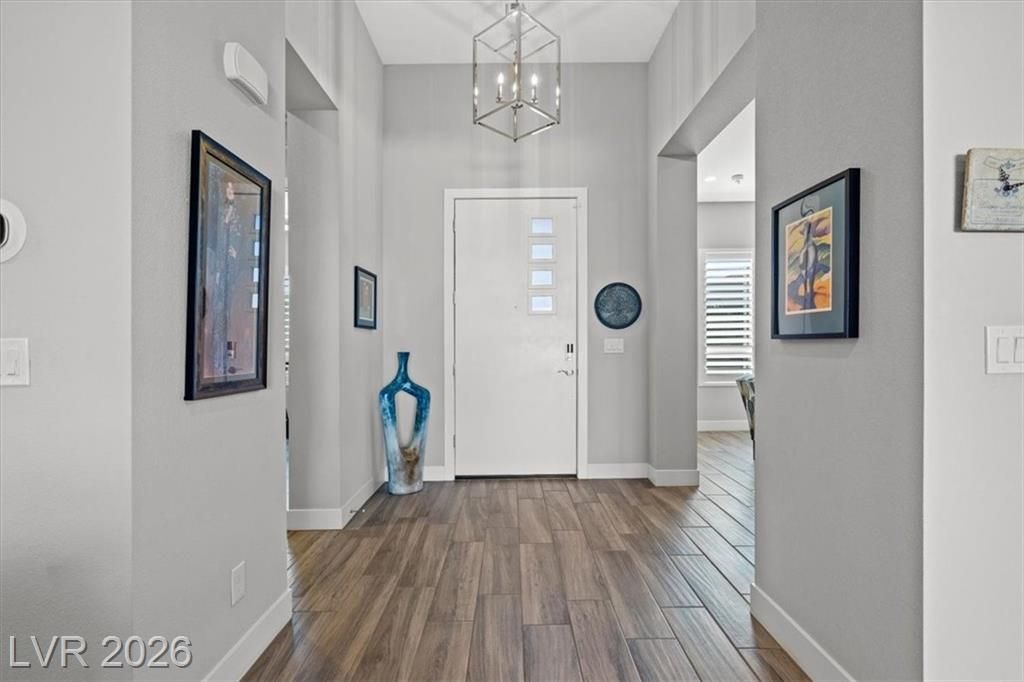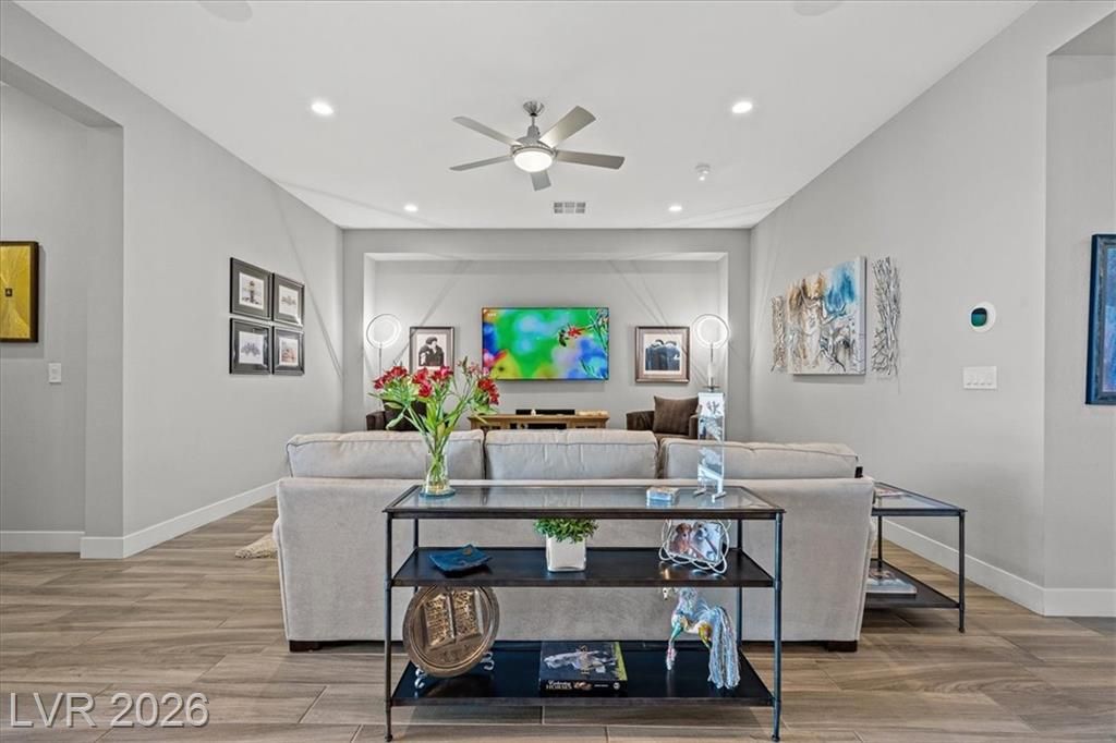 Summerlin Stunner in Prestigious Guard-Gated Regency at Summerlin! Experience active-senior living at its finest in this upgraded, Newer 1 Story home perfectly positioned on Summerlin’s coveted West side. Residents enjoy exclusive, resort-style amenities designed for an elevated lifestyle. This captivating home offers model like perfection, versatile layout & showcases a highly sought-after floor plan with 2 primary suites. A picturesque mountain backdrop greets you as you enter enhanced by stylish modern finishes & thoughtful upgrades t/o 2,267sqft of living space ~ 3 bedrooms, 3 full baths, front den/office/dining room. At the heart of the home, an Elite Island Kitchen w/ High-End Appliances takes center stage while overlooking a spacious great room, perfect for relaxation. Natural light pours in through a 12’ multi-slide glass door creating a seamless transition to ideal indoor/outdoor living as you step outside to enjoy a tastefully designed outdoor retreat and west-valley ambiance
