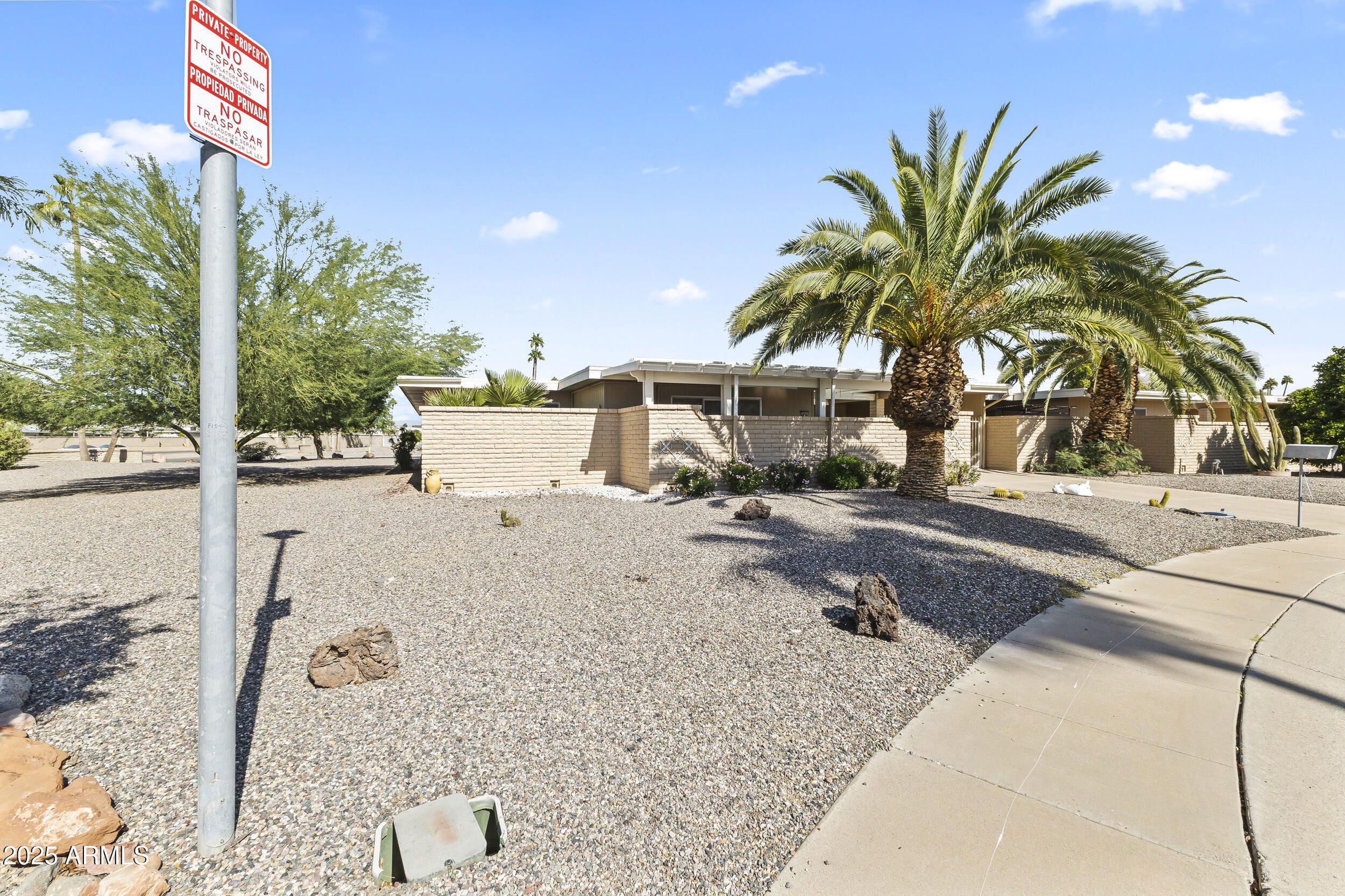 This CHARMING end-unit home offers a blend of comfort & convenience. Featuring 2 spacious bedrooms & two baths, this residence boasts a BRIGHT, UPDATED kitchen w/ modern finishes. Enjoy tile floors t/o for easy maintenance and a sleek look. The sought-after North/South exposure keeps the home light & airy while helping maintain energy efficiency. Relax or entertain on your PRIVATE patio, ideal for morning coffee or evening gatherings. There's a LARGE utility room with plenty of storage. Located in the vibrant 55+ Active Adult Community of Sun City, you'll have access to an array of Amenities, Activities, and a welcoming neighborhood atmosphere.