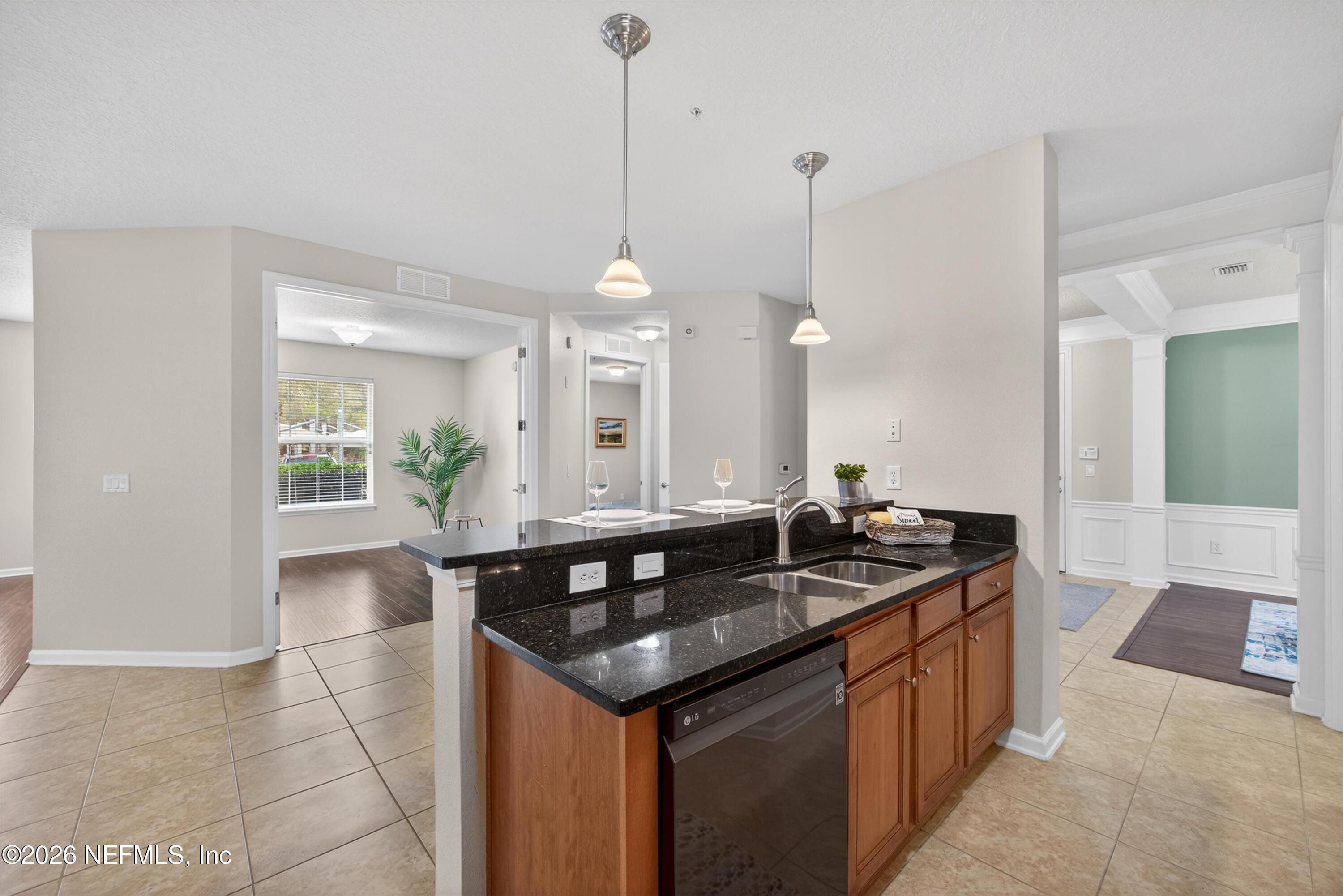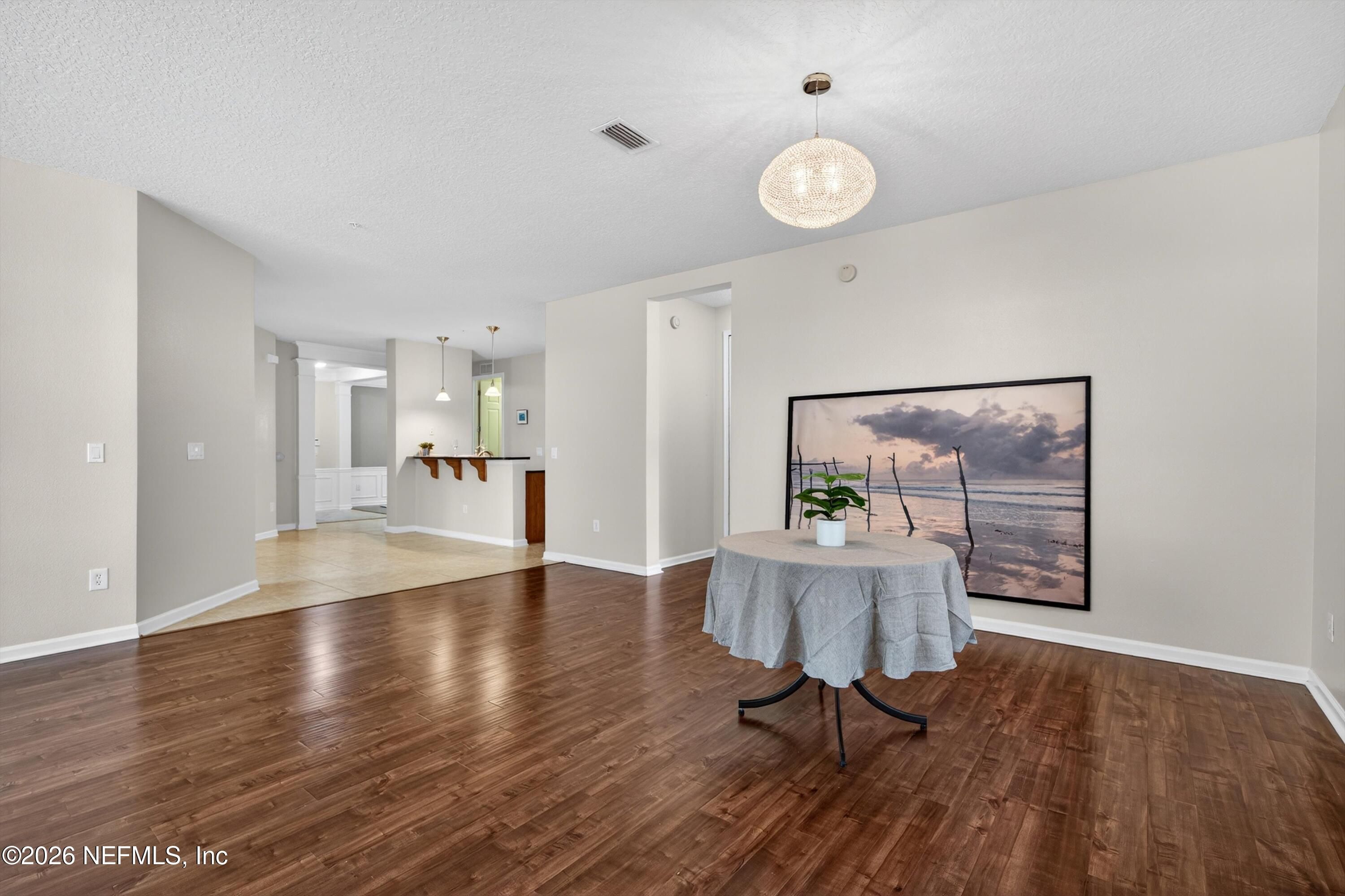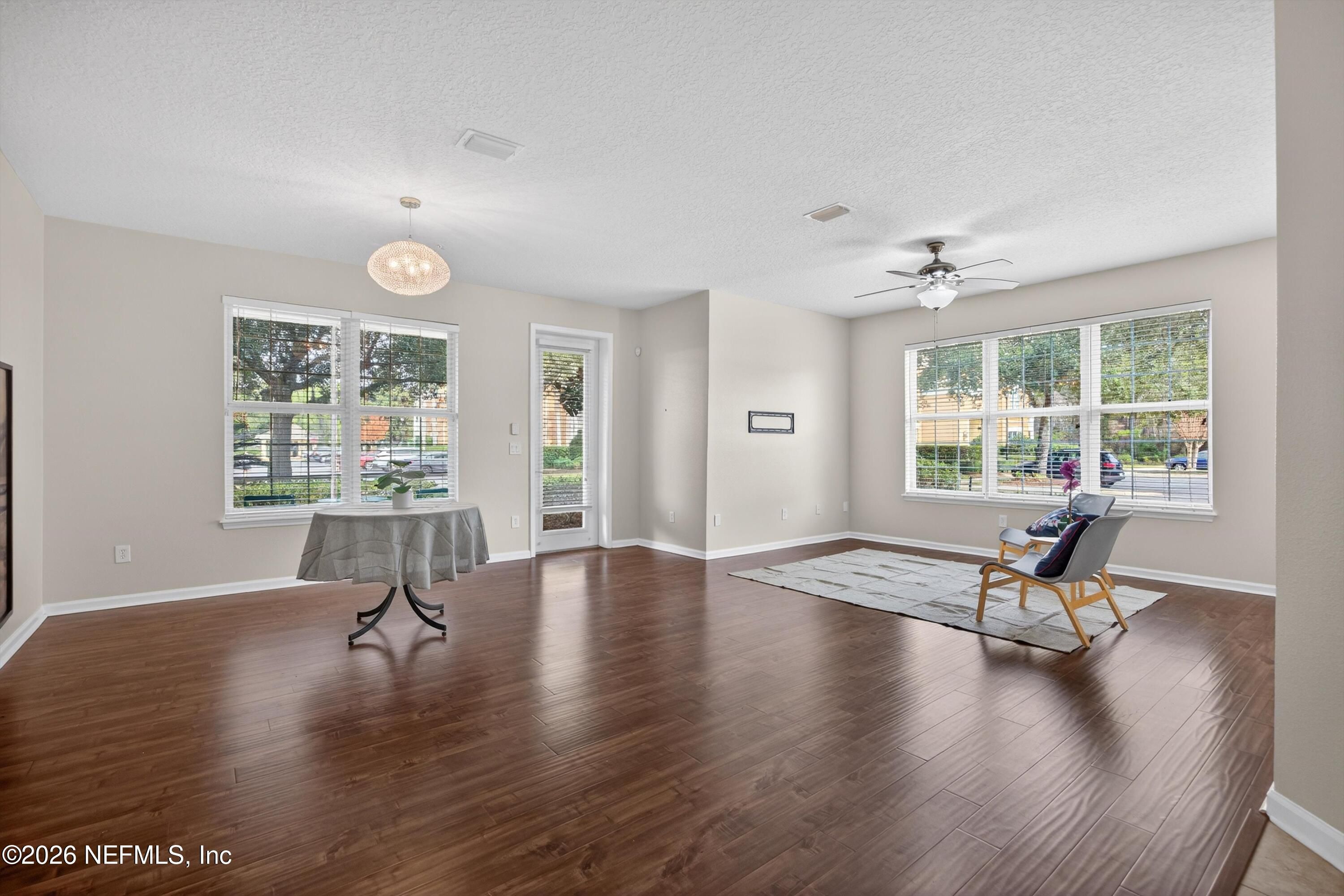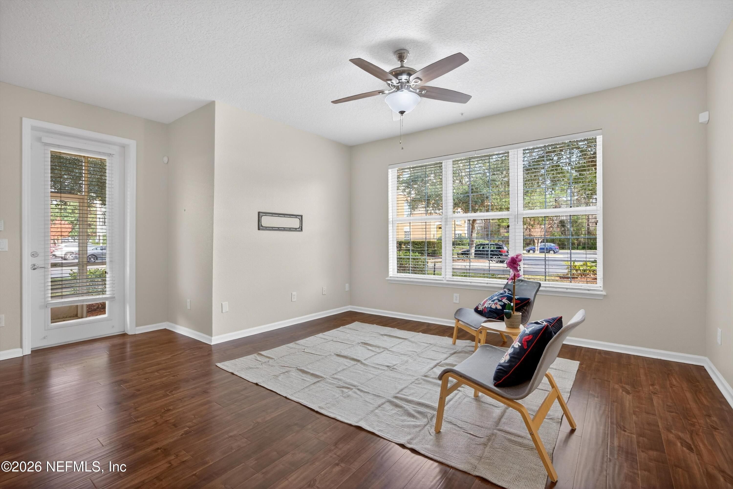 Welcome home to this spacious GROUND FLOOR condominium in Jacksonville's most luxurious Active Adult community - Sweetwater by Del Web! No need to feel cramped in over 2,000 sq ft of thoughtfully designed living space. Featuring 2 bedrooms, a large flex room (office-den-guest room) & 2 baths. Being on the ground floor offers many advantages, including tile & laminate flooring throughout - no carpet. You can also step right out of the screened lanai for a nice walk - no elevators required. The kitchen offers granite counters, warm wood cabinetry w/ under & overhead lighting, a large closet pantry & stainless appliances. The Primary Suite offers double sink vanity, updated mirrors & lighting, Water Closet, Walk-in shower & separate bathtub. The large windows fill the home with natural light. The Sweetwater community offers resort style amenities - indoor & outdoor pool, gym, pickleball & endless activities. Great location! Minutes to Mayo Clinic, Beaches, world-class shopping & dining!