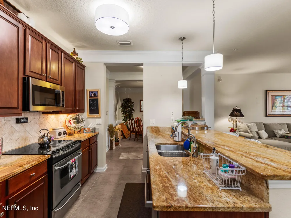Beautiful 3 bedroom 2 bath over 2000 sq ft condo at Upscale Sweetwater by Del Webb Active Adult Community. Located on the 3rd Floor with lovely private entrance and elevators. 9 ft ceilings, 8ft interior doors, 42 in top of line cabinets, designer lighting, neutral colors, Wonderful Bar seating, breakfast dining, and formal dining room. Fabulous Open floor plan with great for entertaining living room and Screened Balcony for morning coffee. Spacious Owner's Suite with Dual Vanity, Garden Tub, large shower, big walk in closet. Impressive Sweetwater Community with lush trees, walking trails, Incredible Club house with indoor and outdoor pools, Spa, Tennis, Pickleball, Great Fitness Studio, Billiards Room, Arts & Crafts Room, Business Center, and tons of Planned Activities and More! Best Centrally Located to everything in Jax! Very secure gated community & Sandpiper condo has extra security, A perfect place to call Home Sweet Home!