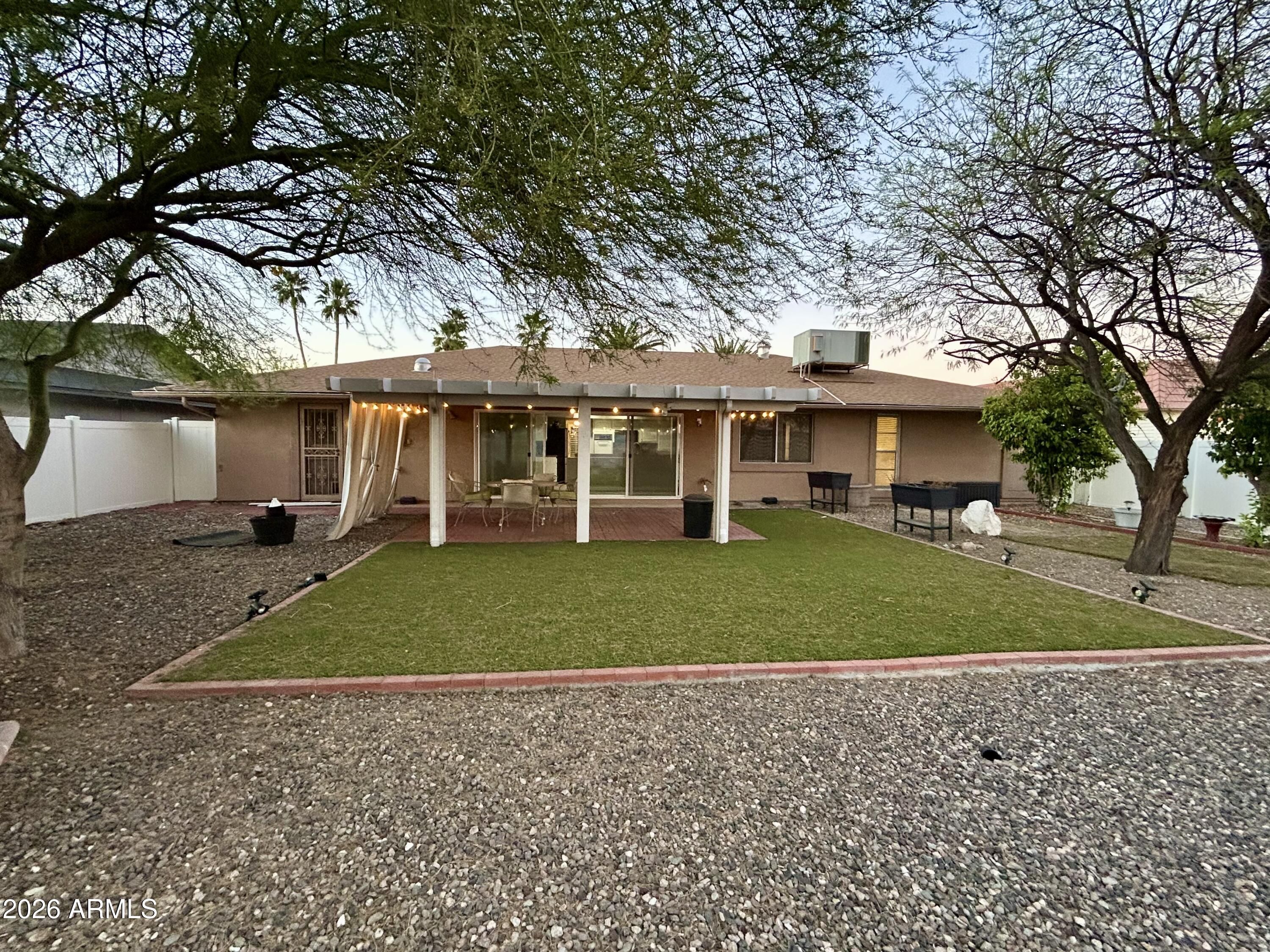 Tastefully updated and ready for your personal touch! Updated kitchen and family room open through a recently added extra-wide sliding door into the massive private backyard, with a generously sized covered patio and newer white PVC fencing. No neighbors behind. Sun City offers an active adult lifestyle known for its resort-style amenities, including multiple golf courses, recreation centers, fitness facilities, pools, clubs, and year-round social activities. Residents enjoy low-maintenance living, beautiful desert surroundings, and convenient access to shopping, dining, medical services, and entertainment. With its welcoming community atmosphere and strong sense of connection, Sun City remains one of Arizona's most desirable 55+ destinations. Seller is willing to remove above ground pool