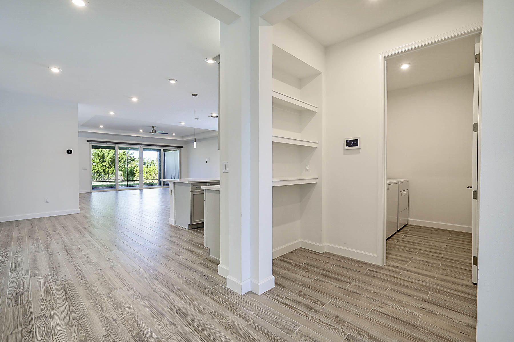 - Entrance Foyer, Pantry, Walk-In Closet(s), Impact Glass, Living/Dining Room, Eat-in Kitchen, Dual Sinks, Main Level Primary