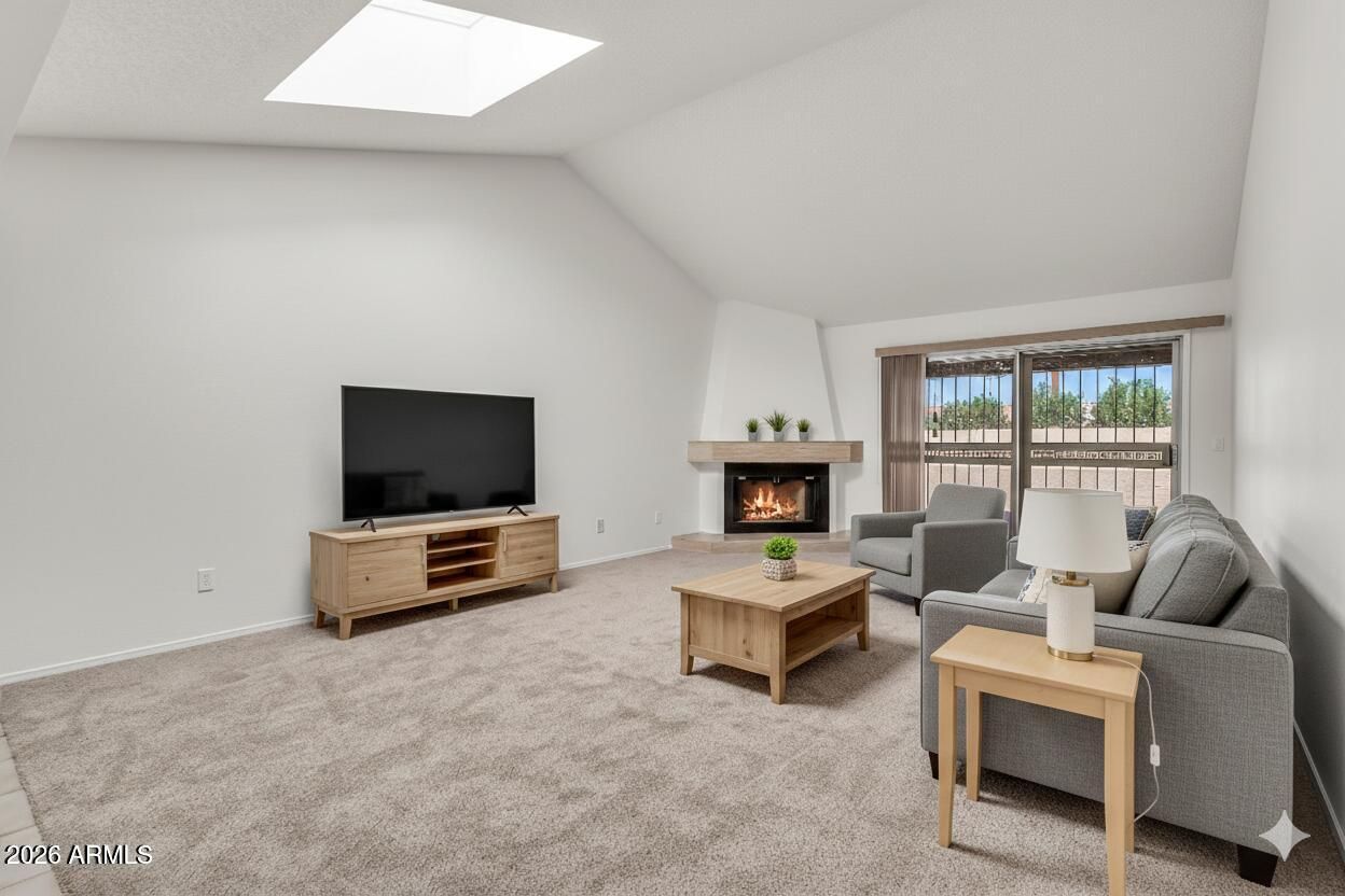 Welcome to your spacious 2bed/2bath townhome in highly sought-after Sun Lakes! Enjoy nearly 1400 sqft of bright, open living space enhanced by vaulted ceilings. This move-in ready home features brand new paint and carpet. The space is light and bright with skylights overhead. Fantastic curb appeal starts with a charming courtyard entry with a backyard that is just as beautiful for relaxation under the large covered patio. Sun Lakes offers the ultimate active 55+ lifestyle: championship golf, multiple swimming pools, clubhouses, and a vibrant social calendar. Don't miss this opportunity for maintenance-free, resort-style living!